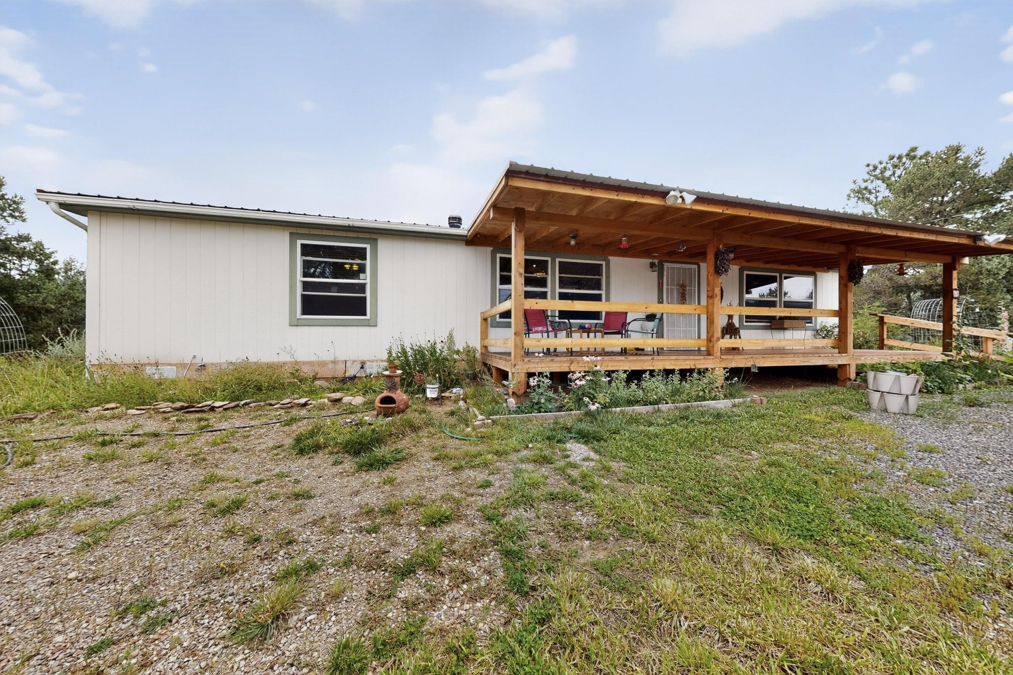 TWO for the PRICE of ONE, 11 and 15 Corte Vargas includes 3 Bedroom, 2 Bath 2007 doublewide on a permanent foundation on 1.026 +/- acres and adjoining vacant lot 5.371 +/- acres with 1/4 ownership in a shared well, several building sites and much potential for additional structures. Located in the Glorieta area off NM Hwy 50, 22 minutes to Santa Fe this listing has much to offer buyers. The home is accessed from a covered porch, has living room with wood burning stove, cook's kitchen, split bedroom floor plan, forced air heating as well as air conditioning, ample closets, washer and dryer. The area around the home is nicely landscaped with perennial flowers, walkways, covered chicken coop, 2 car carport and designated sitting and viewing areas. The adjoining separately deeded lot comes with the potential for water from the shared well (4 hook-ups only). It has several potential building sites, a multitude of healthy Pinon, Ponderosa Pine, oak and Juniper trees, dramatic out croppings, varied terrain, views to the north and almost at the end of the acreage a seasonal creek. The north boundary adjoins lands claimed by the Jemez Pueblo and is a vast open space. Located in Santa Fe County the property is served by Eldorado Community School and Santa Fe High School. For the best of country living please consider 11 & 15 Corte Vargas.