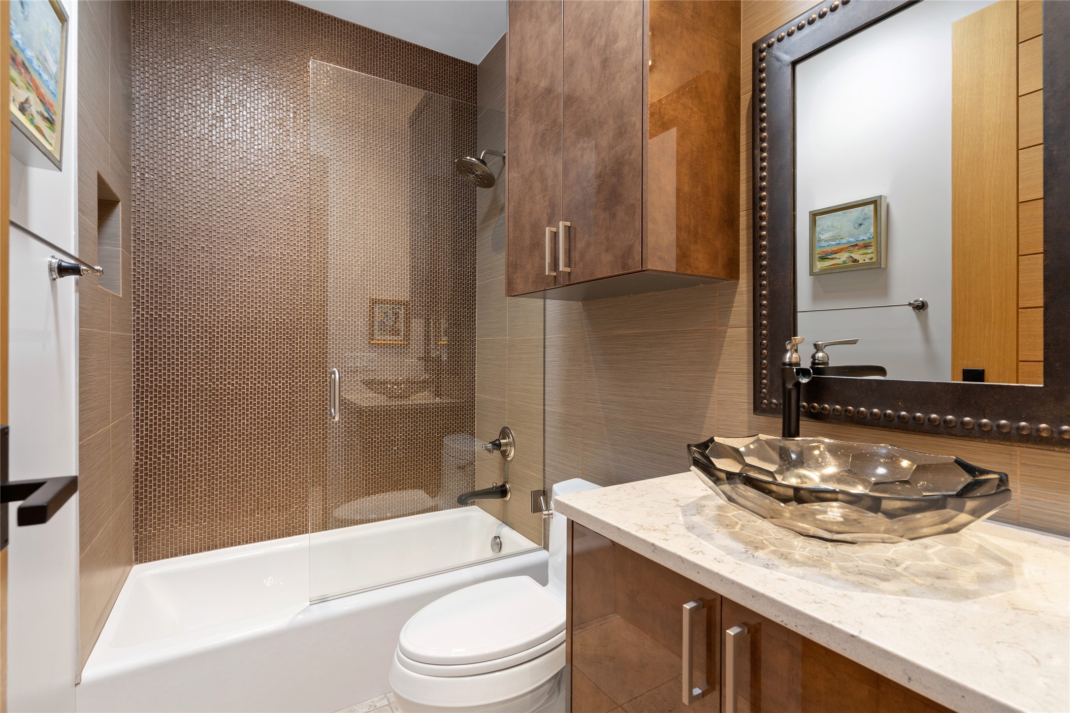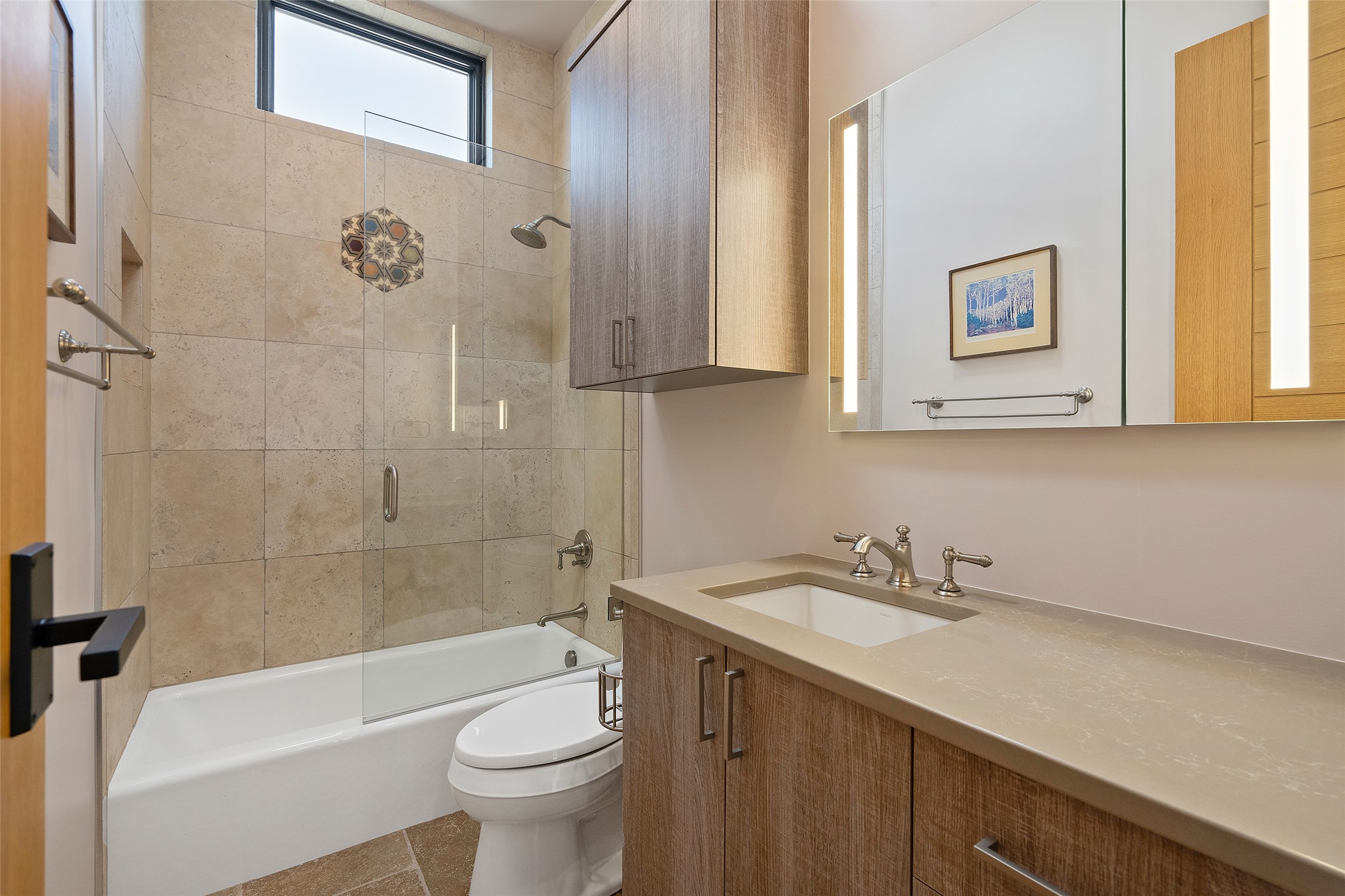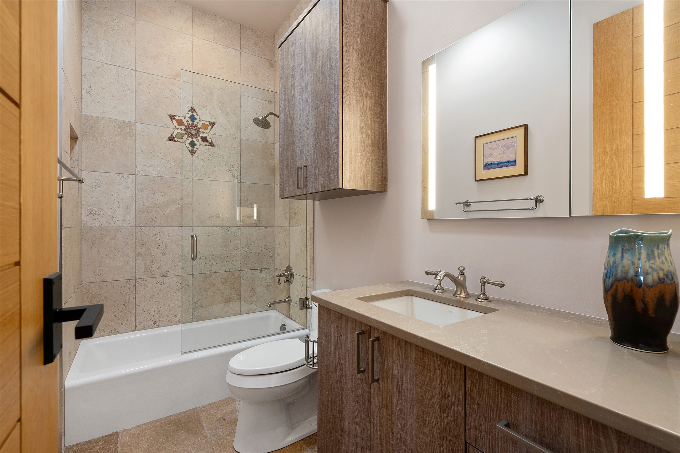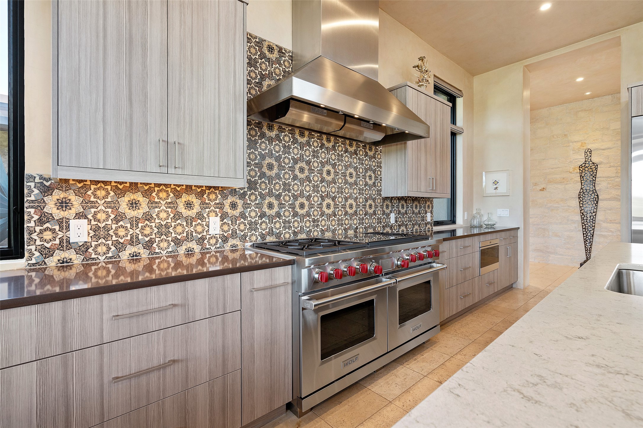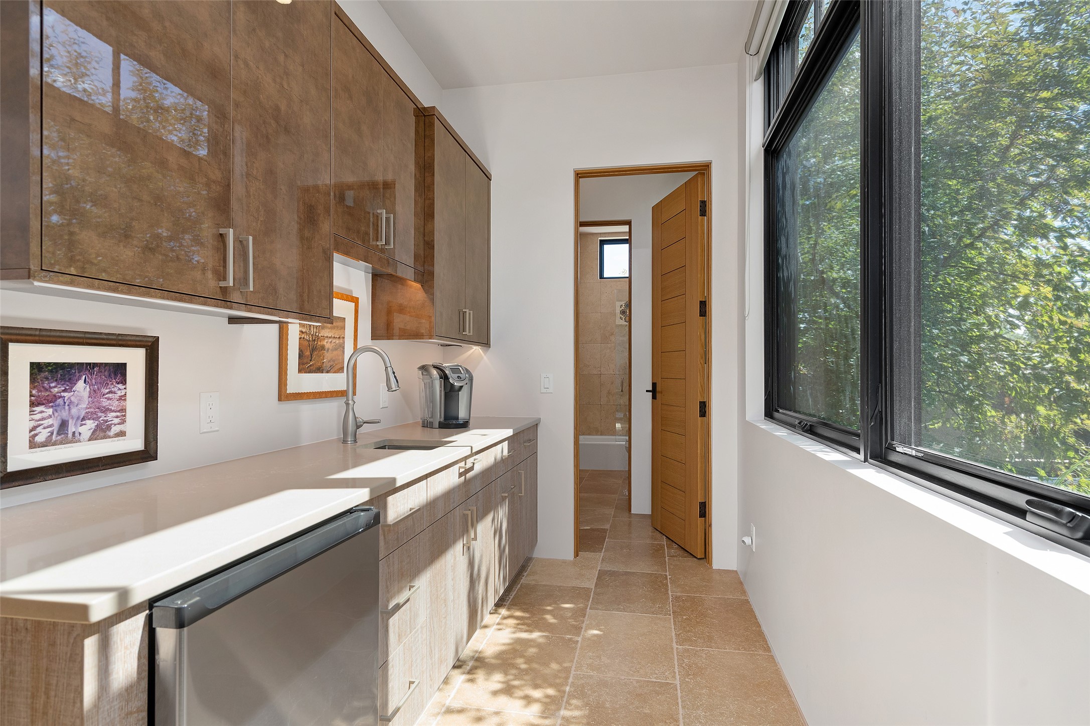 CONTEMPORARY MASTERPIECE IN LAS CAMPANAS WITH UNPARALLELED VIEWS TO BOTH MOUNTAIN RANGES. Bordering Bureau of Land Management Land, this exceptional property offers sweeping Eastern and Western Mountain vistas with uncompromised privacy. The 3,947 sqft main home has plenty of natural light, towering wood and steel ceilings and clerestory windows - designed by noted architect Lorn Tryk and executed by Prull Custom Builders - featuring 1 bedroom, 2 offices, a media room, and gallery-like spaces enhanced by travertine floors, warm stacked-stone masonry walls, custom ironwork, and motorized shades. The Owner's suite looks to the landscape and is a haven of tranquility. A detached guest house provides 2 bedrooms, 2 bathrooms, and a kitchenette - perfect for extended stays of hosting in style. Smart-home systems, a whole-home natural gas generator, and a 3-car garage with an oversized truck bay ensure convenience and peace of mind. Designed for modern living, the chef's kitchen includes Wolf and Sub-Zero appliances, dual dishwashers & ovens, steam oven, large wine fridge, pantry, and striking Spanish woven-metal light fixtures. Outdoor living is extraordinary with patios accessible from nearly every room, 3 fountains, hot tub with outdoor shower, and a custom Agave mural by artist Pam Platt. Four fireplaces add warmth and ambience indoors and out. Phenomenal cross-lighting, gorgeous driveway approach, and refined details throughout complete this contemporary retreat in one of Santa Fe's most prestigious communities.