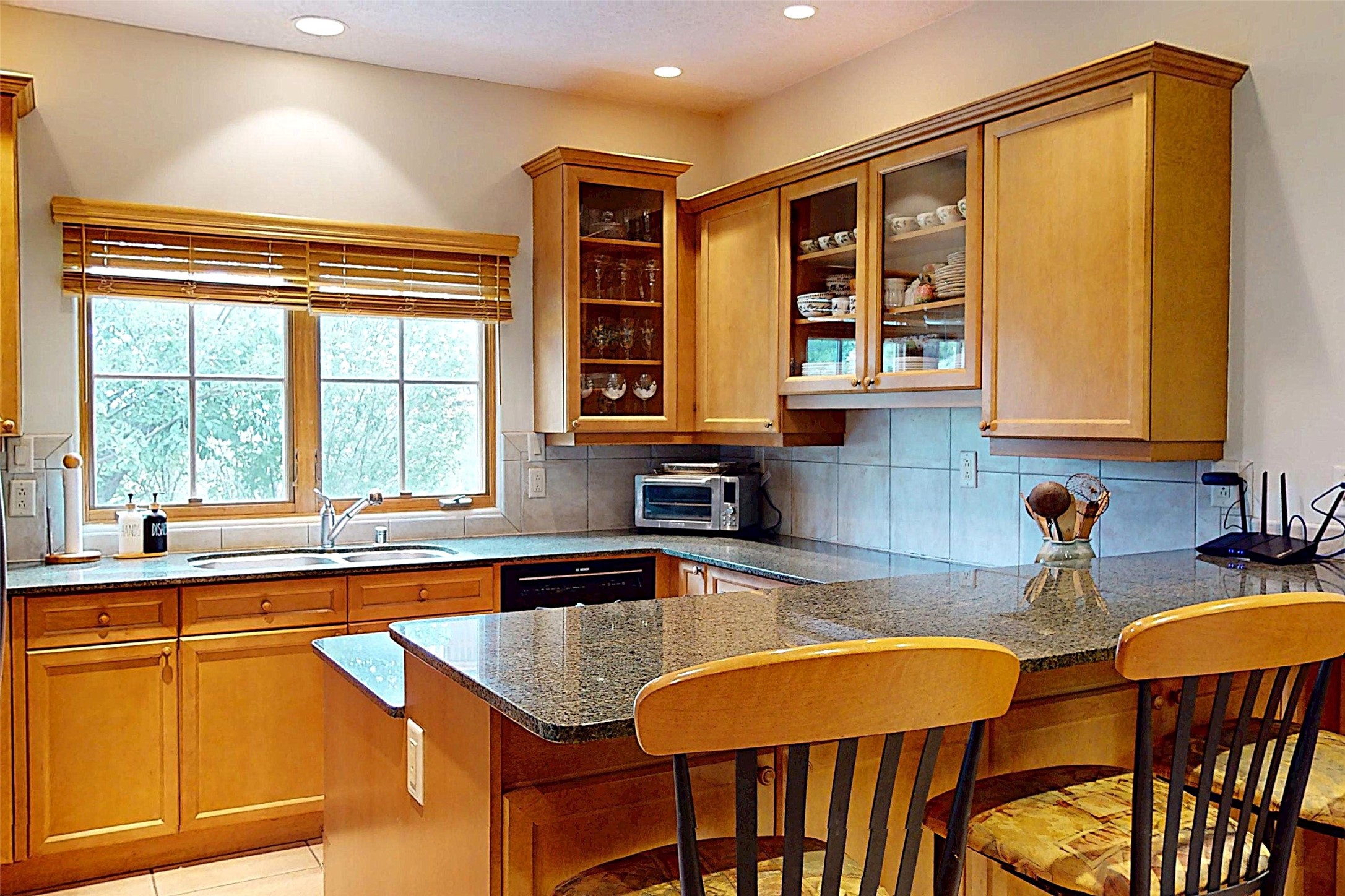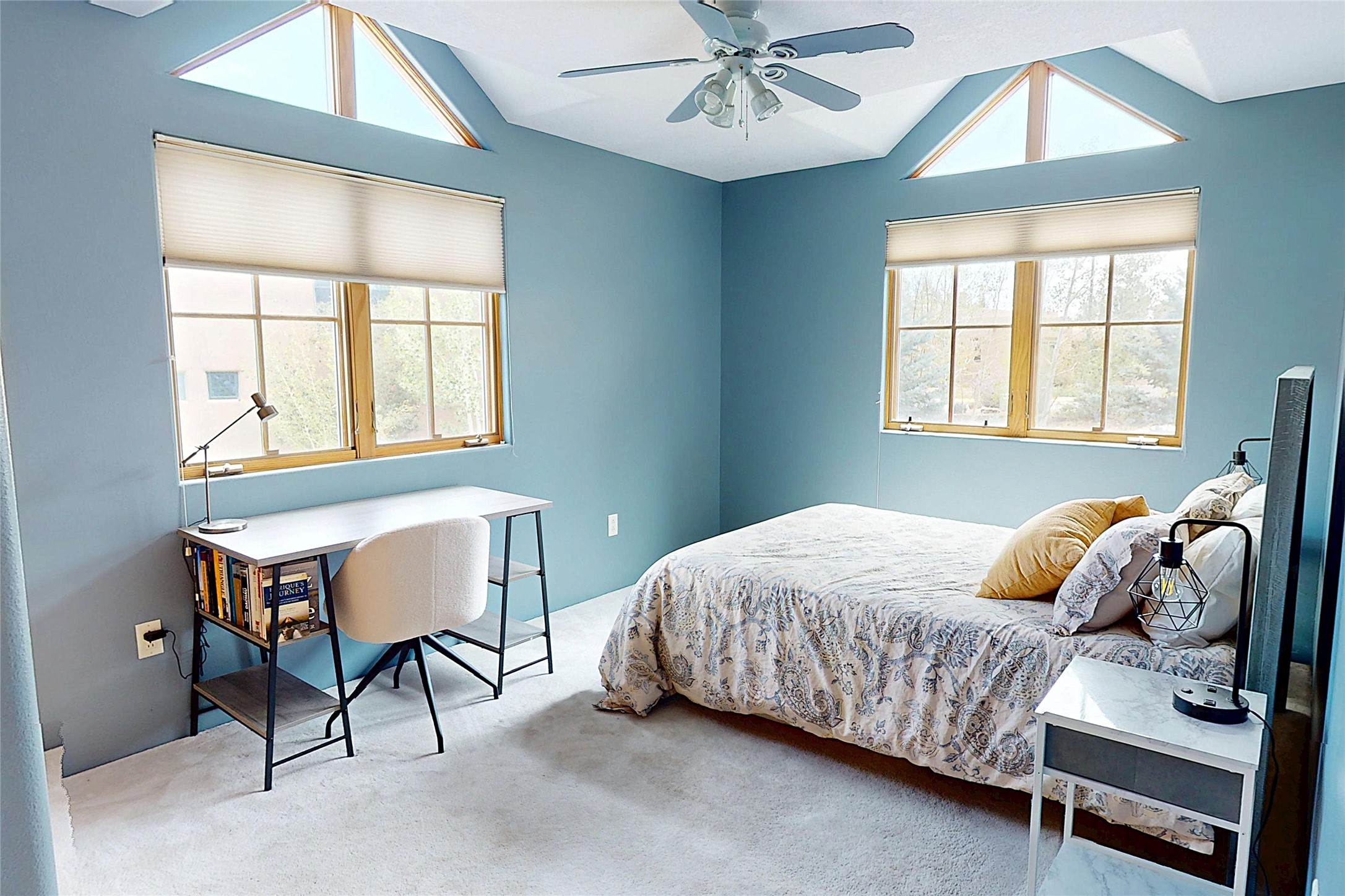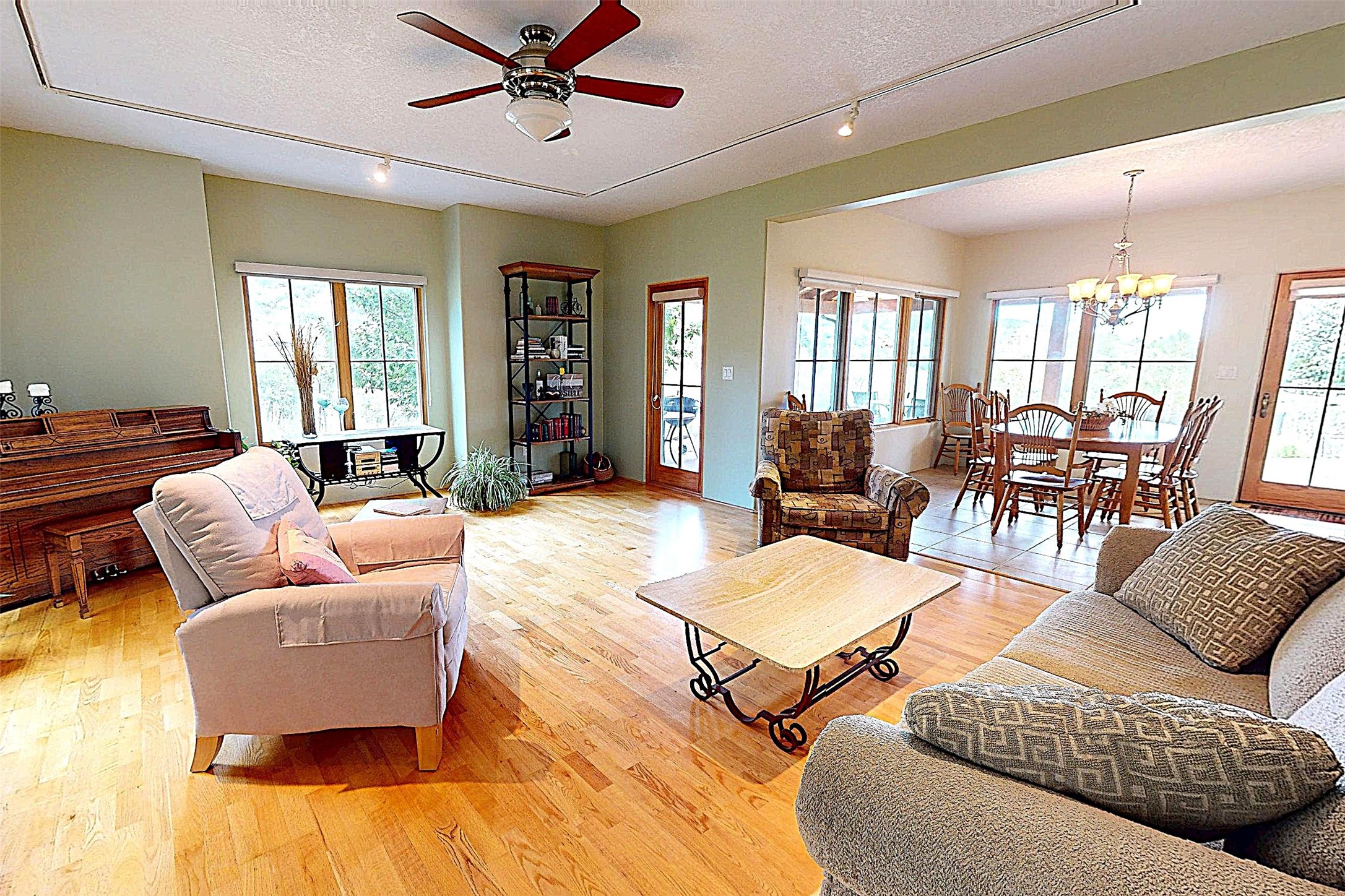 This stunning 4-bedroom, 2.5-bath Quemazon home backs to open space, offering privacy and direct access to the Perimeter Trail. The open floor plan flows seamlessly between the kitchen, dining, and living areas, with easy access to the covered Trex deck--perfect for enjoying mountain and forest views as well as the private backyard. The spacious primary suite includes a private study framed by French doors, dual walk-in closets, and a luxurious en-suite bath with dual sinks and a freestanding tub. Three additional bedrooms and a well-appointed hall bath complete the layout. A walk-out basement with additional living space and a crawl space for storage adds flexibility. Thoughtful details include architectural touches throughout the home, in-floor radiant heat with four zones, WindsorLite windows, six-panel wood doors, ceiling fans in every bedroom and the living room, track lighting, and Kohler fixtures. The kitchen is equipped with a Bosch dishwasher, gas stove/oven, and a newer refrigerator (2022). Major updates include roof replacement in 2009 with a lower-roof update in 2025, and a full stucco renovation in 2019. Outdoors, mature fruit trees--cherry, apple, pear, plum, apricot, nectarine, and peach--along with raspberries, drought-tolerant blue grama grass, and a private front yard with precision-cut stone walls, create a serene retreat. French drains along the west side provide peace of mind. This Quemazon gem blends comfort, thoughtful upgrades, and a premier setting with trails at your doorstep.
