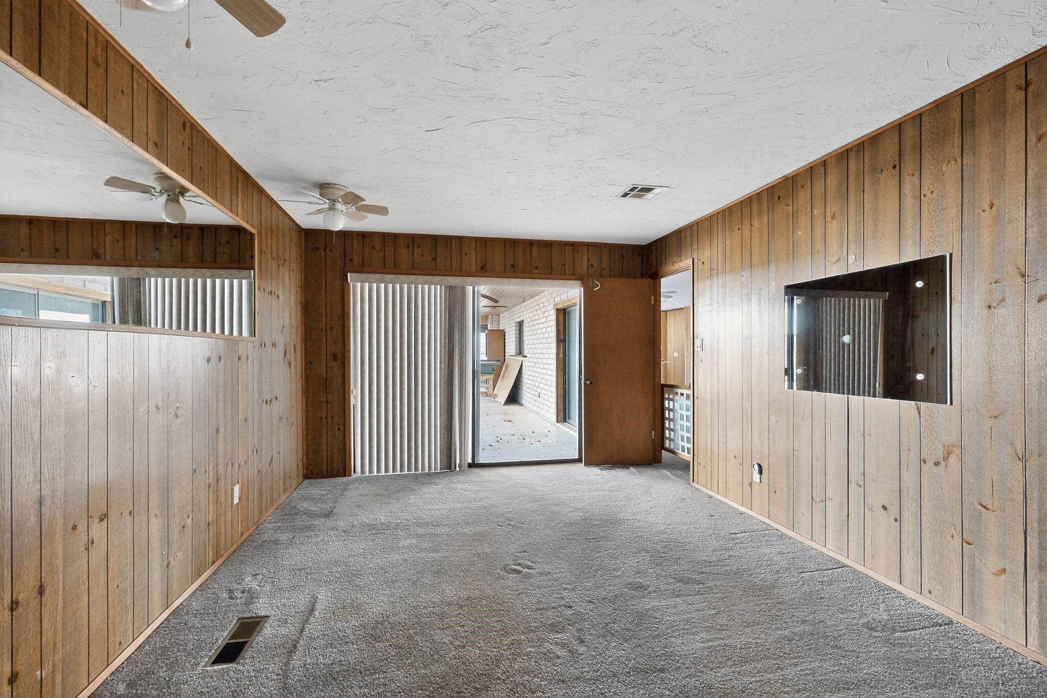 Spacious Los Lunas home with unique features! The open living and dining room is anchored by a double-sided fireplace, creating a warm focal point. The kitchen is generously sized with an island and plenty of room to personalize. Step outside to a covered patio with ceiling fans, perfect for relaxing or entertaining. A separate studio in the backyard adds flexibility for hobbies, work, or guests. This home offers great space and character, ready for your vision and updates. Land comes with a manufactured home next door to the North.