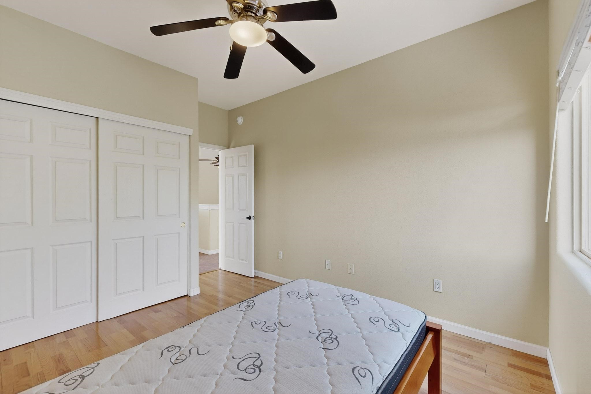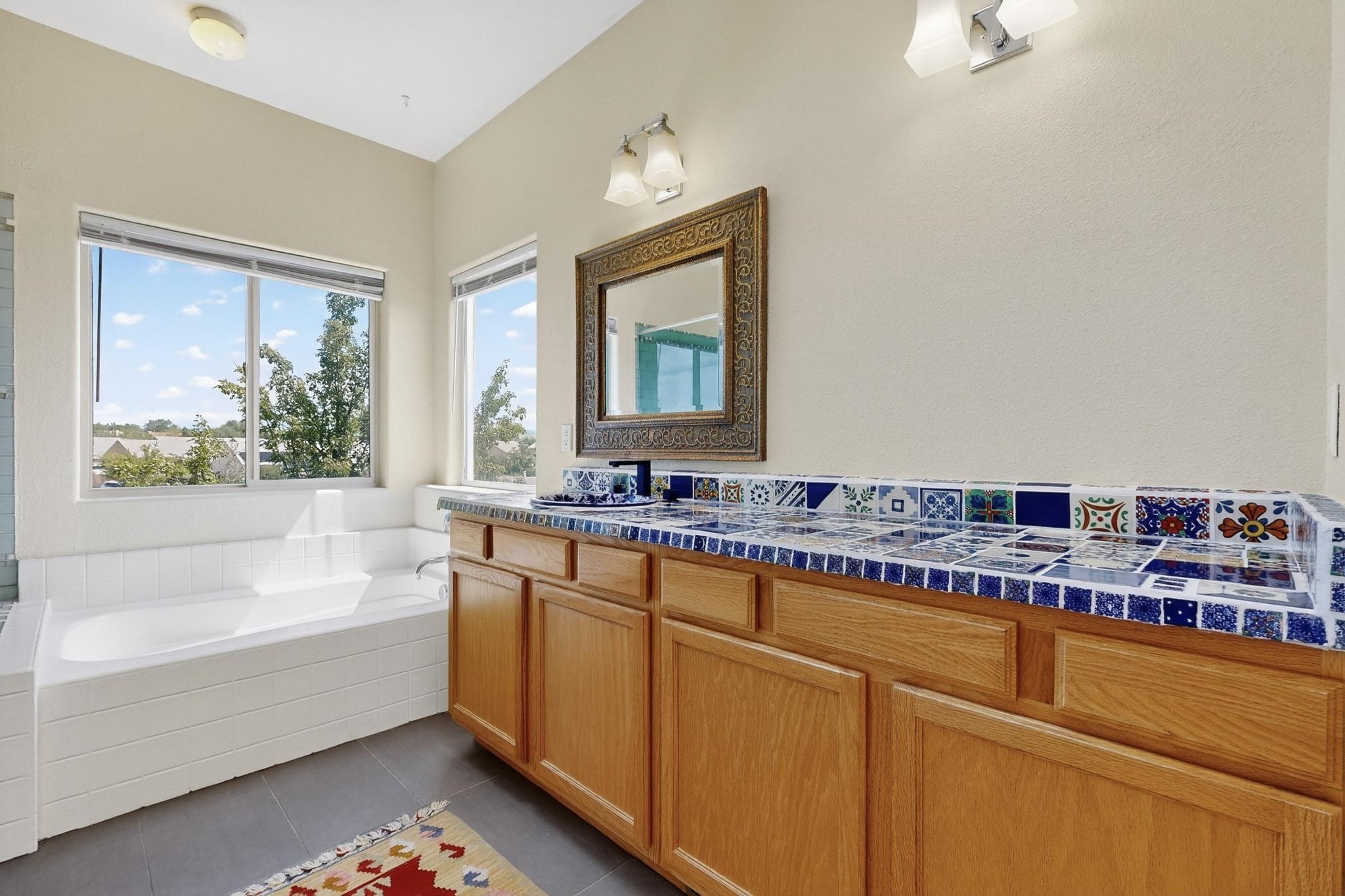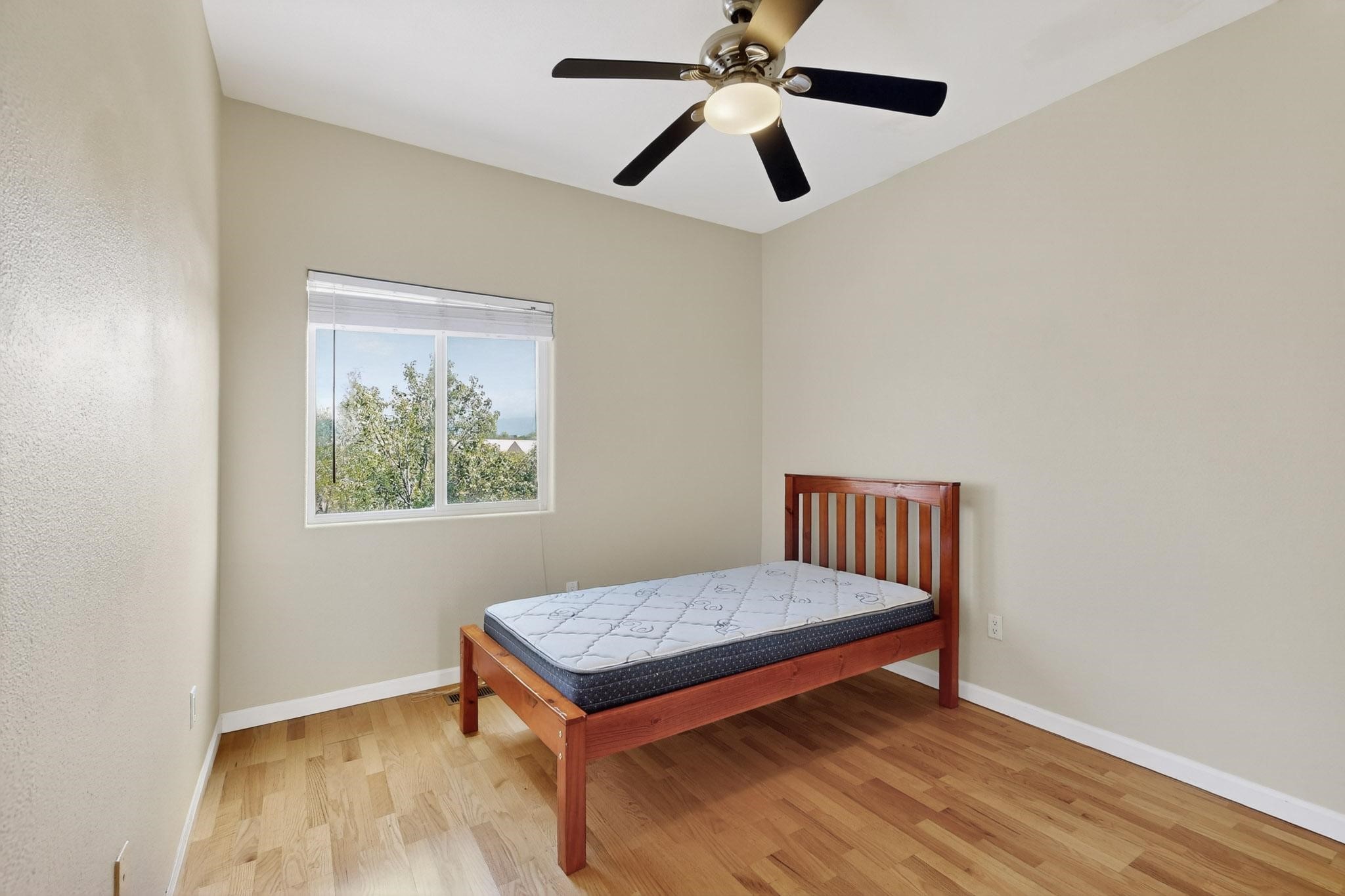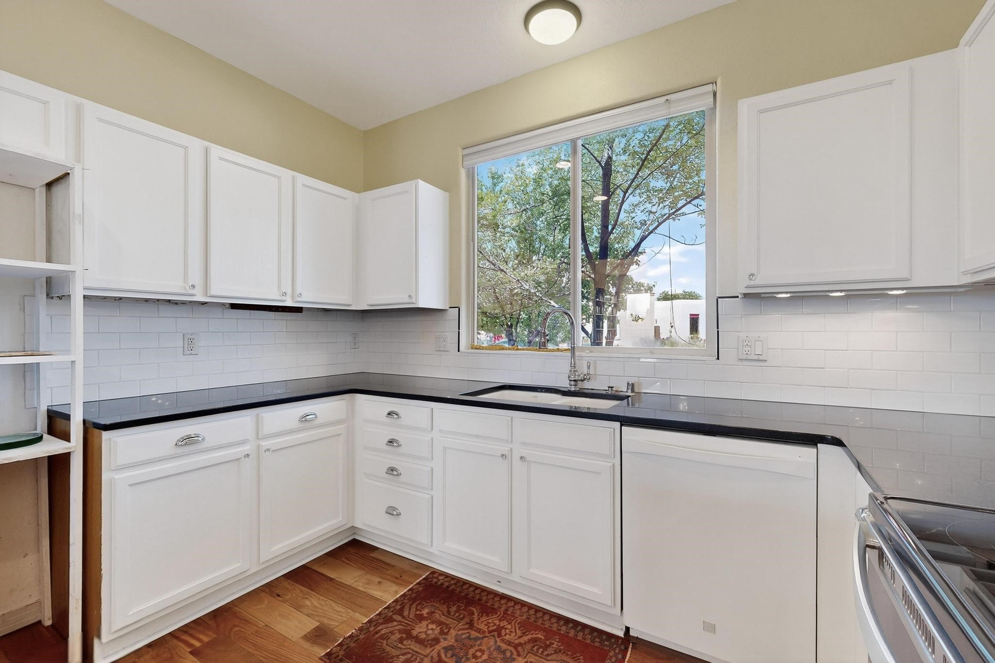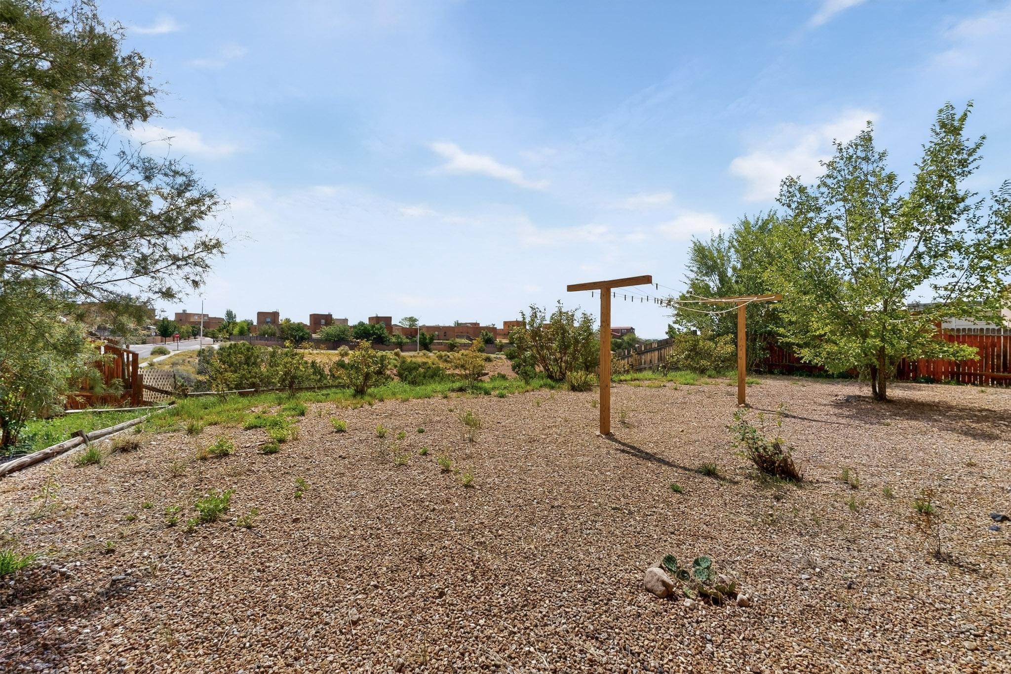 Nestled atop a serene arroyo, this exceptional property offers unparalleled convenience, mere minutes from Highway 599 and Cerrillos Road--perfect for commuters heading to Los Alamos (45 minutes) or Albuquerque (50 minutes). This location is the heart of a vibrant community, with tree-lined sidewalks and trails along Jaguar Drive, nearby schools, a public library, and the picturesque Swan Park. Plus, you can easily access historic Agua Fria Street for a quick 20-minute drive to the Railyard or Plaza in the charming heart of Santa Fe. Inside, the home welcomes you with soaring ceilings and is truly move-in ready, featuring a newer TPO roof and fresh exterior stucco. The original garage has been transformed into a stunning Artist Studio, a versatile space that can easily be reverted back or used as additional flex space for your hobbies or as a family room. The ground floor seamlessly opens onto a spacious outdoor patio, surrounded by mature trees, creating an ideal setting for entertaining or peace and relaxation. The beautifully upgraded kitchen is perfect for culinary enthusiasts and entertaining, while the master suite upstairs offers a spa tub and a private outdoor deck--your sanctuary for morning yoga or evening stargazing. With a drip irrigation system in place to maintain lush, green grounds and keep the house cool, this property truly embodies comfort and convenience. Don't miss your chance to call this beautiful home your own!