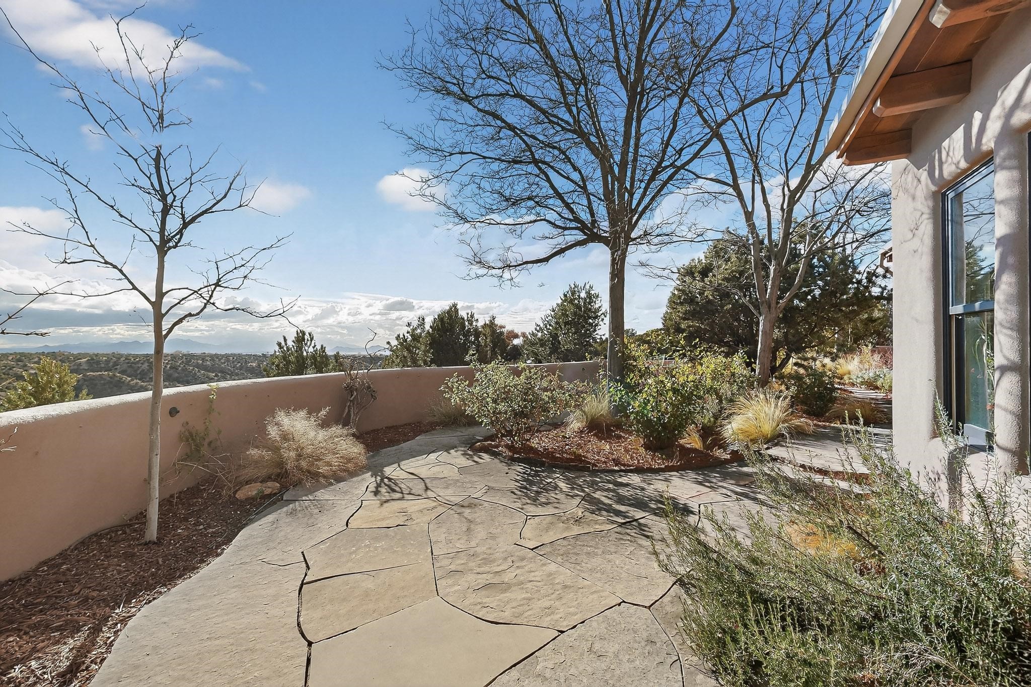The 24 Old Agua Fria adobe compound is a rare property given its unique location on the north rim of the Arroyo Hondo , a tributary of the Santa Fe River, with its inspiring and commanding canyon views to the south and west, its access to nearby public and private trails, its plentiful garden pathways, stone walls, and diverse trees and plants. Of note, the property has a remarkable solar footprint both on ground and rooftop that champions its sustainable profile in locked step with PNM. And finally, the nearby proximity of the indigenous Arroyo Hondo Pueblo (Ca1300 CE) that grew into a 1000 room thriving community, speaks with immediacy to our local Archeological heritage and its stewardship today under the Archeological Conservancy. See WWW.ArroyoHondo.Org in Associated Docs for the compelling Santa Fe storyline that emerged in the 20th Century.The adobe Main House was bult in 1990 and the Casita in 2000. The Main has 3 bedroom, 2 bathrooms and the Casita includes a 1 bedroom with adjacent Living Room, a small kitchen and 1 bathroom. A large adobe garage abuts to the north for car parking (EV connections), storage and creative uses. The property has a private well, the land parcel with its serene, sunny vistas shares 7.94 relatively undeveloped private acres with close access to downtown Sant Fe at 10 minutes drive away. Please come visit this extraordinary residence, experience its embrace of soft canyon winds, long sunrise and sunset views with hilltop promontory privacy that's hard to find today!