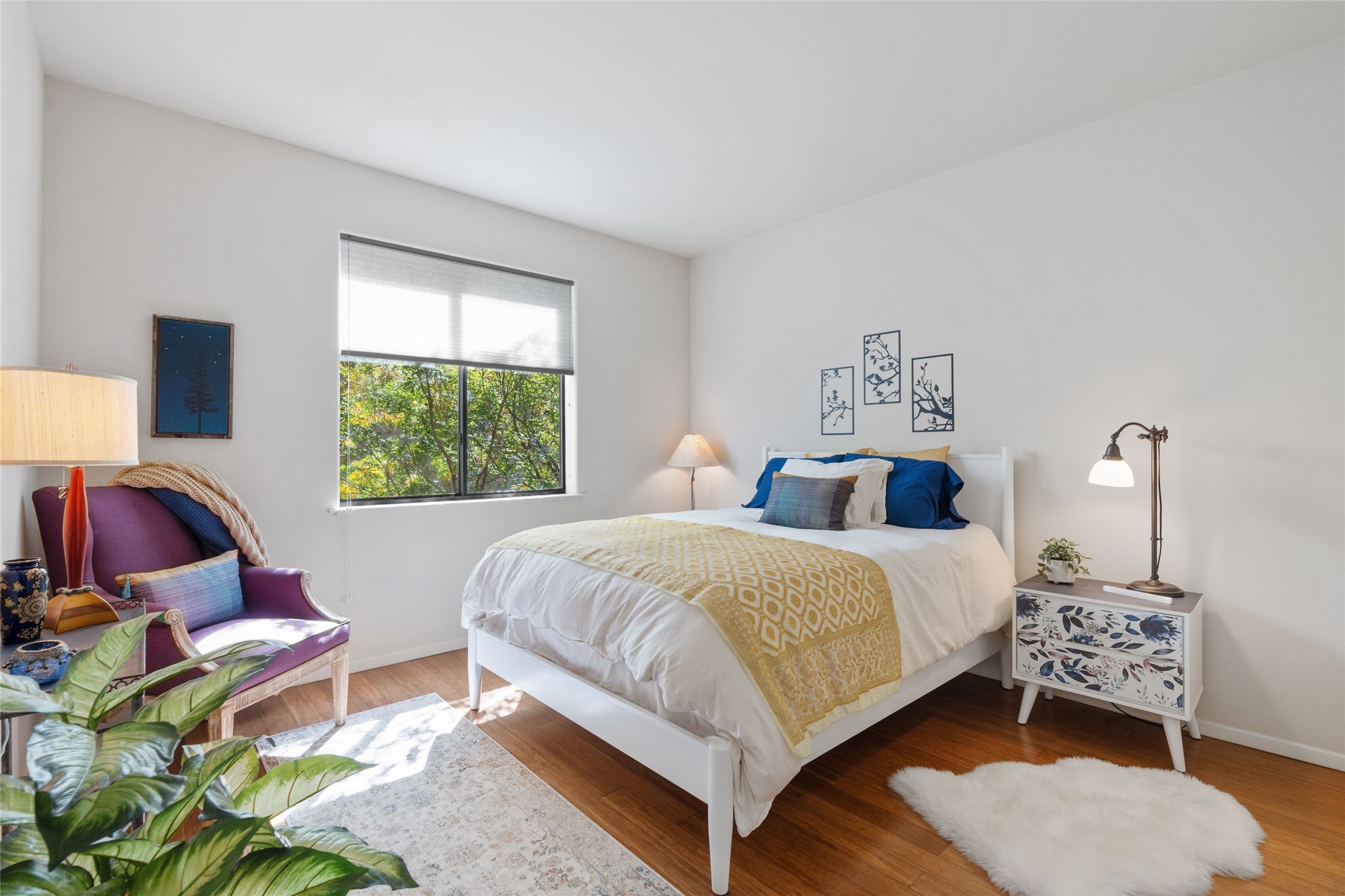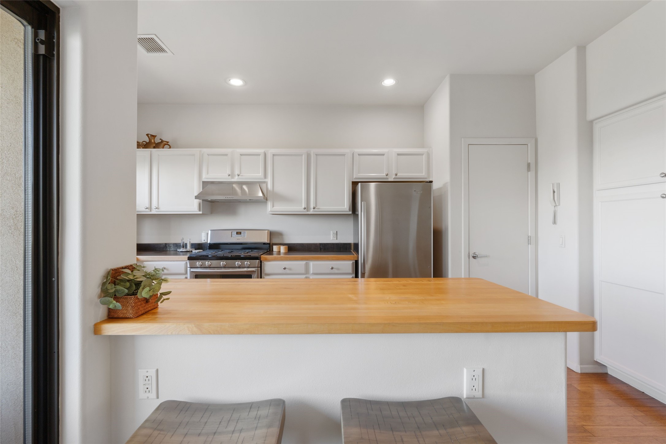 Classic urban oasis surrounded by mature trees, La Remuda Condominium is located on the edge of Midtown where you can walk to relaxed eateries featuring global cuisine and local flair. Not far from theRailyard, quick stops to Trader Joe's and Whole Foods. The central location is convenientfor a fast commute to Los Alamos or I-25. This bright and airy condo features an open floor plan with sliding glass doors at each end of the living/dining rooms with access to the 2 balconies. The kitchen is well designed, with exceptional storage, high quality stainless steel appliances, butcher block on one side of the counter and Italian tile on the other. Other features include: central air conditioning and heating installed in 2023, 9 foot ceilings, beautiful bamboo floors, custom drapes, custom dividedclosets, custom cabinets in living room and office, private storage: 5.5' x 17', Asko washer and dryer, whole house water filtration system installed in 2025, 2 under cover designated parking spots with direct entrance to the secure building, upper floor unit with no interior steps, new roof in 2024 and refreshed stucco in 2025. One of the two only units at La Remuda with 3 bedrooms. Seller will credit one year of special assessment dues with an acceptable offer. This condo is on the second floor and stairs are required to access it.