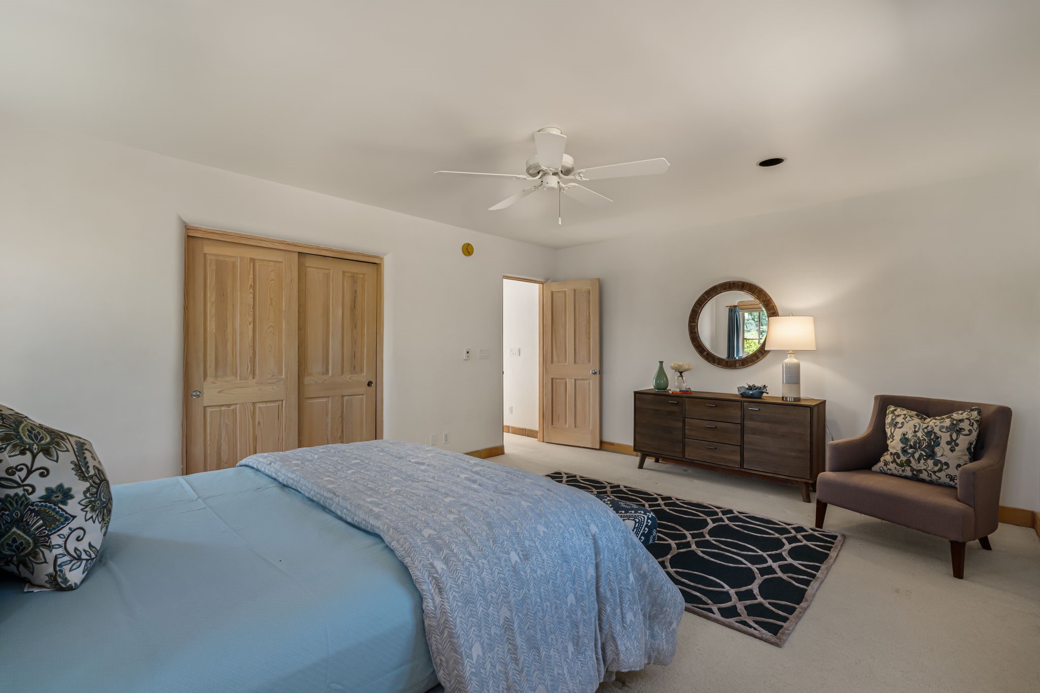 One of the larger and more beautiful freestanding homes available in Quail Run, unit 632 is bathed in natural light from the double-height ceilings facing east toward the Sangre de Cristo Mountains. This particular unit has 3 very generous bedrooms, each with its own bathroom, in addition to a powder room available to guests.The living room accommodates a grand piano or multiple seating areas, and is complemented by an adjacent library with custom-built bookshelves.The kitchen features an updated appliance wall with high-end built-ins, including a Sub-Zero refrigerator with bottom drawer freezer. Custom shelving maximizes storage in the walk-in pantry. The generous master bedroom with its own door out to the east portal, has a soaking tub and two walk-in closets in its en-suite bathroom.The second downstairs bedroom includes a retrofitted accessible bathtub - ideal for guests or aging in place.Upstairs, a spacious loft area overlooks the living room and leads to a private bedroom, full bath, and a balcony perfect for sunset viewing.The main east portal has a bank of established rose bushes producing an abundance of blooms that can be cut for bouquets. With access to the kitchen area, French doors to the living room, and a sliding door into the master bedroom, the main portal is large enough for multiple sitting or eating areas.The west patio is a custom designed Zen garden with enough space to sit or eat under a traditional southwest portal. A beautiful house with all the amenities that Quail Run has to offer: a clubhouse with extensive exercise rooms, equipment, and classes, a swimming pool for laps and a warm therapy pool, two hot tubs, entertainment, restaurant, activities, golf, tennis and pickle ball courts, maintenance crew on call, housekeeping services available, all exterior maintenance taken care of.Come see this particular unit - everyone who does loves it for its space, light, and orientation within the Quail Run community.