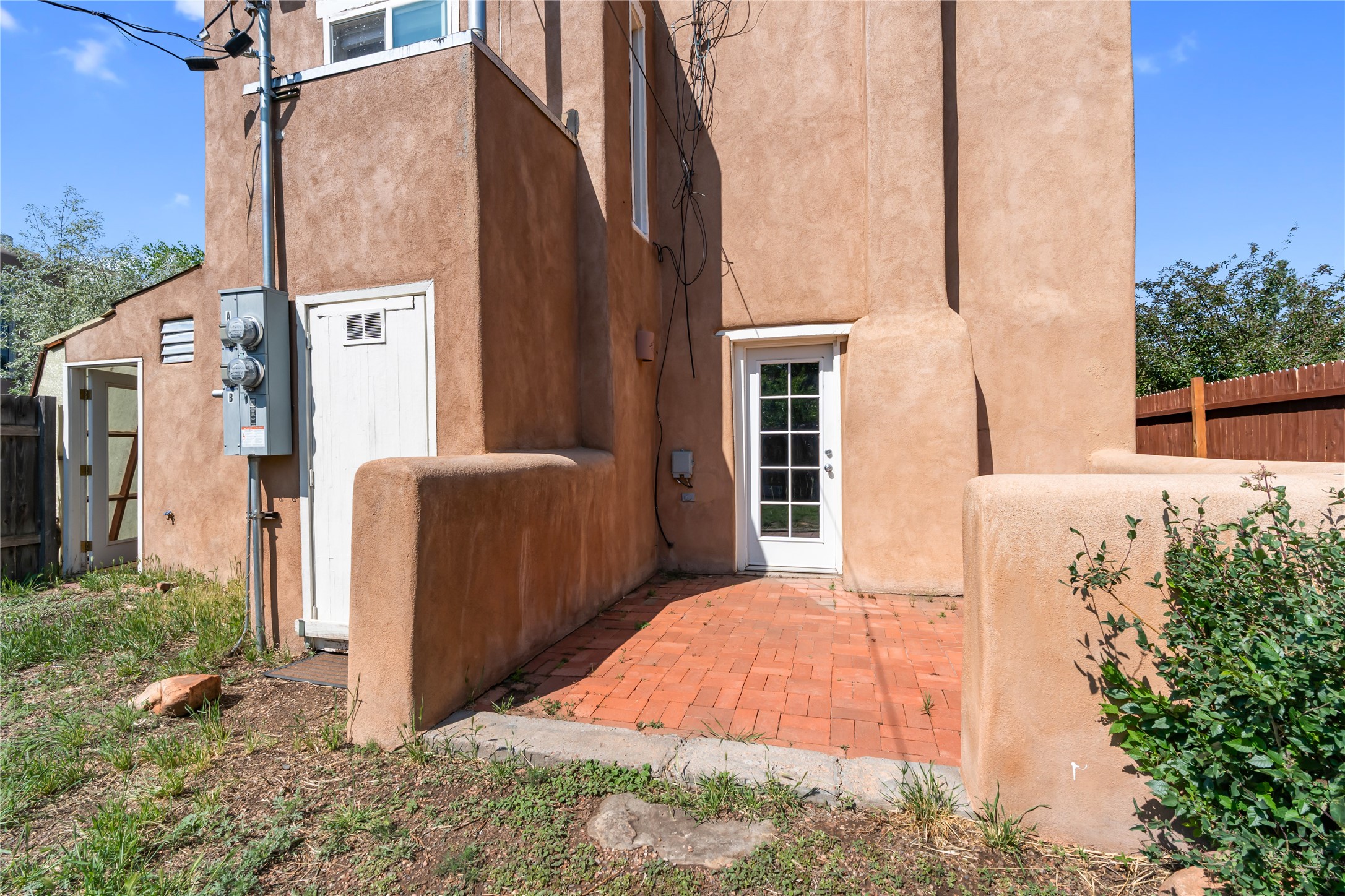 Located only 1.8 miles from the Santa Fe Plaza, this 4-bedroom house and guest house offers both privacy and convenience on a generous lot with future building potential. At the end of a quiet dead-end lane, the home enjoys direct access to beloved community amenities, including Frank Ortiz Dog Park, the Santa Fe River Trail, and Alto Park with its pool and tennis courts. The main residence features authentic adobe construction on the ground floor and custom design details including vigas, handcrafted solid-wood cabinetry, striking sunrises over the Sangre De Cristo Moutnains and sunset views from a private deck.A separate passive-solar adobe casita enhances the property's versatility, ideal for guests, extended family, or a private studio; it includes a gas fireplace, cast-iron soaking tub, tile flooring, clerestory windows, sleeping loft, and its own fenced yard. A gated front courtyard and ample off-street parking complete this rare offering. With its blend of traditional charm, thoughtful details and location, this home is truly a Santa Fe gem.
