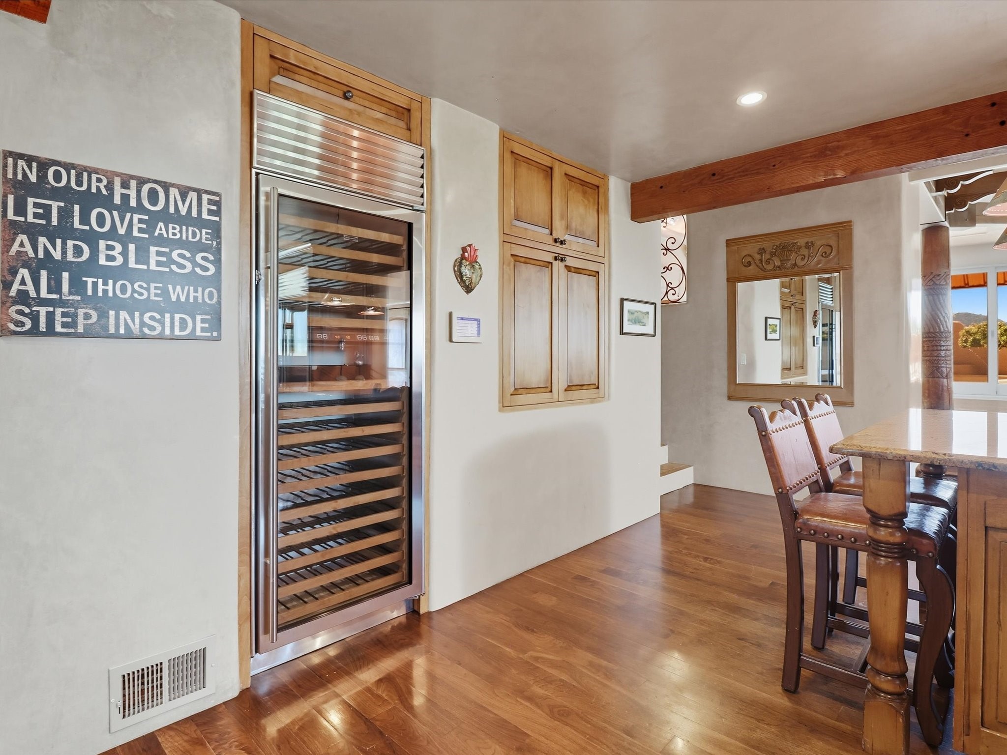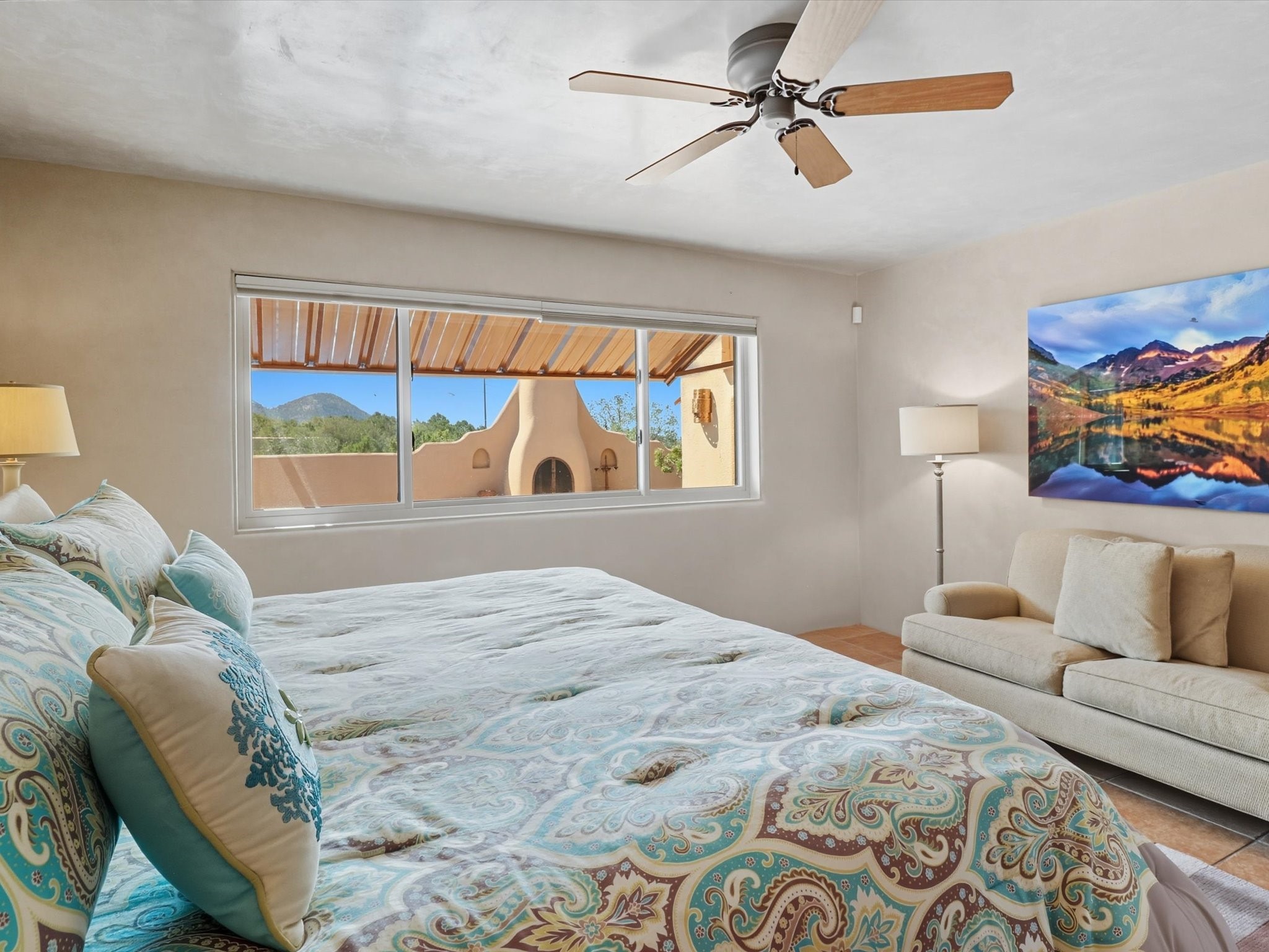 WANTED: A New Owner With a Taste for the Extraordinary! Be prepared to be inspired--inspired to live effortlessly in a mountain escape where Old World charm meets modern-day refinement. This elevated estate isn't just a home, it's a sanctuary, a hideaway, a place where sunsets stretch for miles and every corner whispers character. Step through newly designed gardens with stone walkways and an elegant driveway that sets the stage for what's within. Inside, custom wood accents, artisan ironwork, walnut floors, and hand-troweled plaster walls warm the soul. Two living areas -- plus a sunlit, heated, and cooled solarium with a sauna off to the side -- offer spaces to gather and relax. The primary suite is its own retreat, with custom entry doors, a sitting area anchored by a kiva fireplace, and direct access to a private deck where sunsets put on their nightly show. The owners have thoughtfully elevated this property with recent upgrades: a transformed garden landscape, extensive stonework, Anderson windows and doors, and major enhancements to the arroyo. Outdoors, the amenities read like a resort--solar panels, a pool with two hot tubs and a waterslide, plus all-new heating systems to keep each pool zone comfortable year-round. And there's more: an amazing shed ready for conversion to living space, plus the possibility of adding a casita at the top of the lot--perfect for guests or creative ventures. This isn't just a property. It's a rare opportunity to claim your own mountain retreat, one where history, craftsmanship, and modern comfort converge.REWARD: Unmatched views, inspired living, and the chance to call this mountain haven your own.