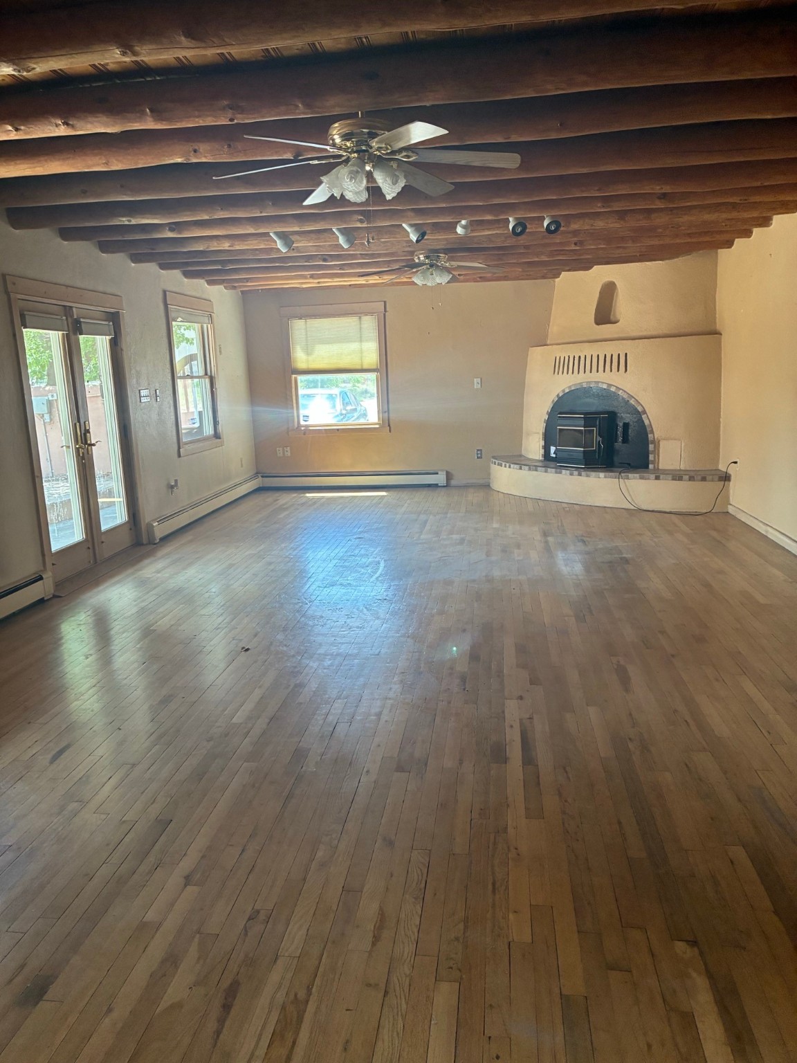 Spacious 6 bedroom, Northern New Mexico-style home with a casita on a little over an acre. The main home, in its original section, dates back to 1913. Home has a formal living and dining area. Home has vigas, wood floors, and a kiva-style fireplace. 2 bedrooms along with 3 bathrooms are downstairs. One of the upstairs bedrooms includes a balcony, perfect for enjoying your morning coffee or simply relaxing.. This home offers plenty of room for you and your family with a separate casita that can be turned into a private quarters or guest home. The guest home is approx. 1,298 square feet, which includes a kitchen, 2 bedrooms, a 3/4 bathroom, and wood flooring with vigas. The property has an oversized 2-car garage that has been upgraded to electric. There is also a 3-car carport for extra car space. The property contains a gated, paved driveway and has a zoning of ROI, which is residential, institutional, and office, and can be used for multiple purposes. There is a stream that runs through the property. The spacious yard is ideal for cookouts and outdoor gatherings.