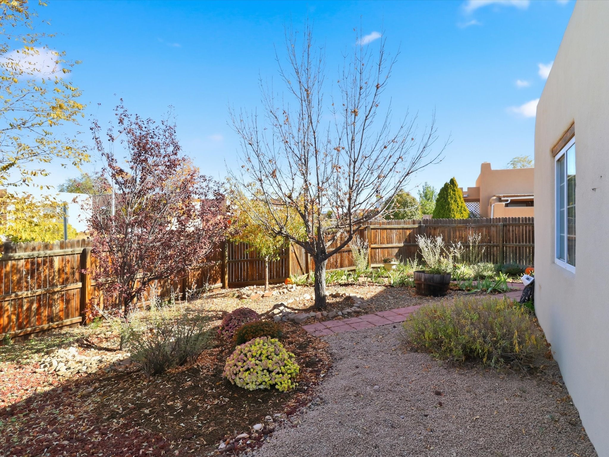 This light and inviting Pueblo-style home in Tierra Contenta offers Santa Fe charm with modern updates and an ideal location. With over 1,100 square feet, two bedrooms, and two baths, the home features new vinyl plank flooring throughout, updated kitchen counters, fresh bathroom vanities, and stylish new lighting and ceiling fans. The roof is under warranty for added peace of mind. Enjoy easy access to I-25, Highway 599, local hospitals, shopping, dining, and schools, all just minutes away. Warm, bright, and move-in ready, this home combines comfort, convenience, and classic Santa Fe style. Imagine the Possibilities and schedule your showing today!
