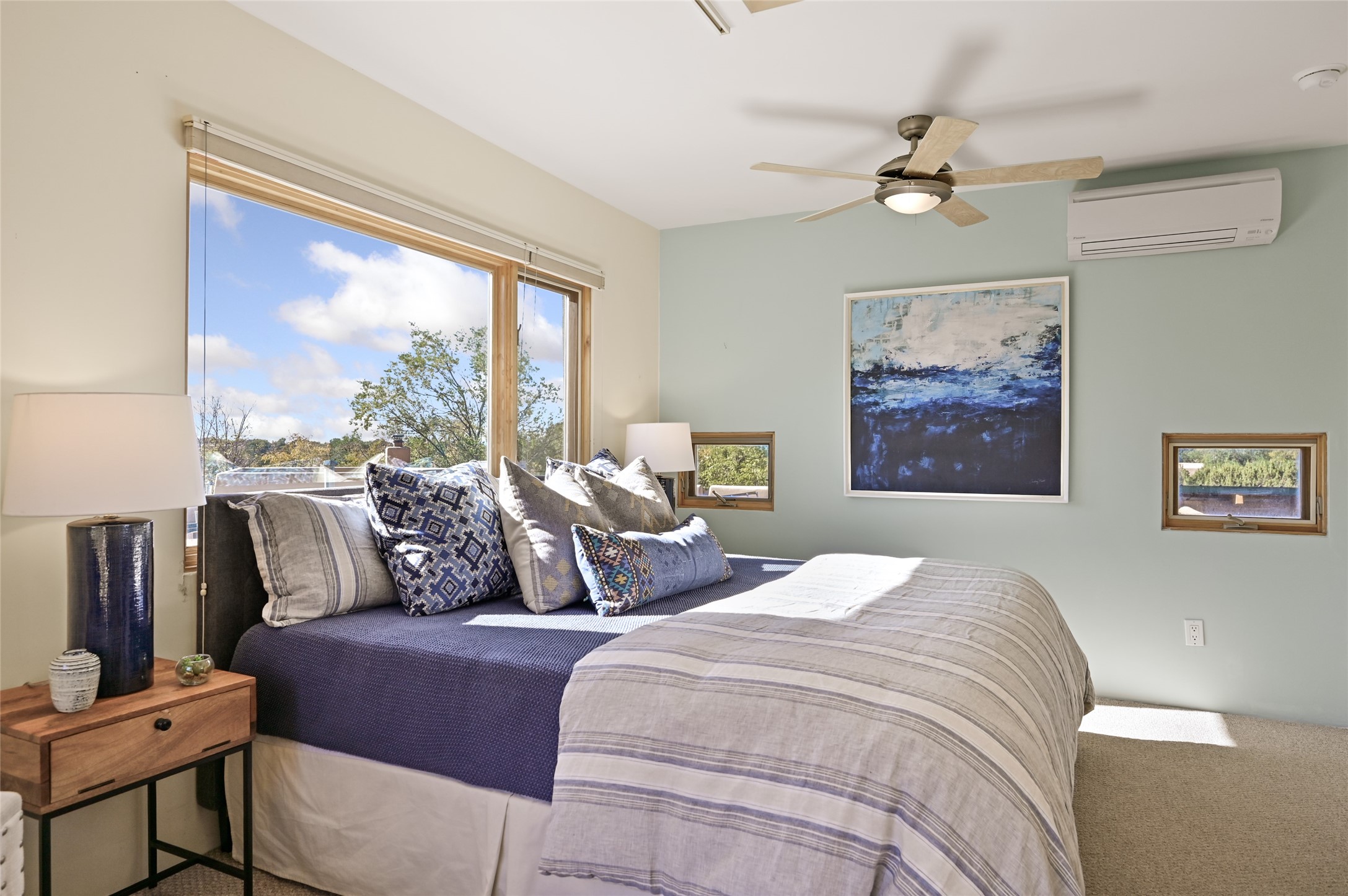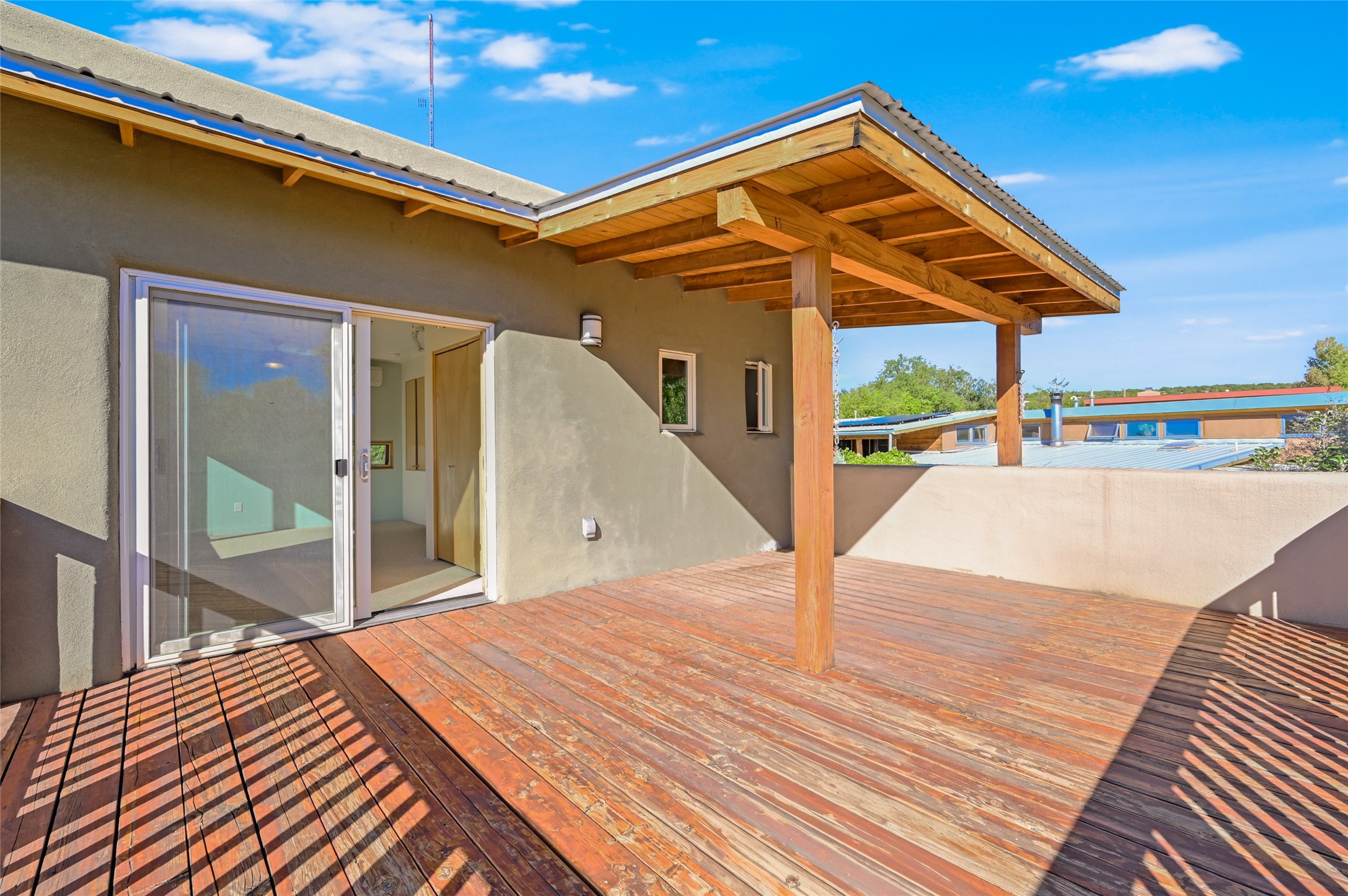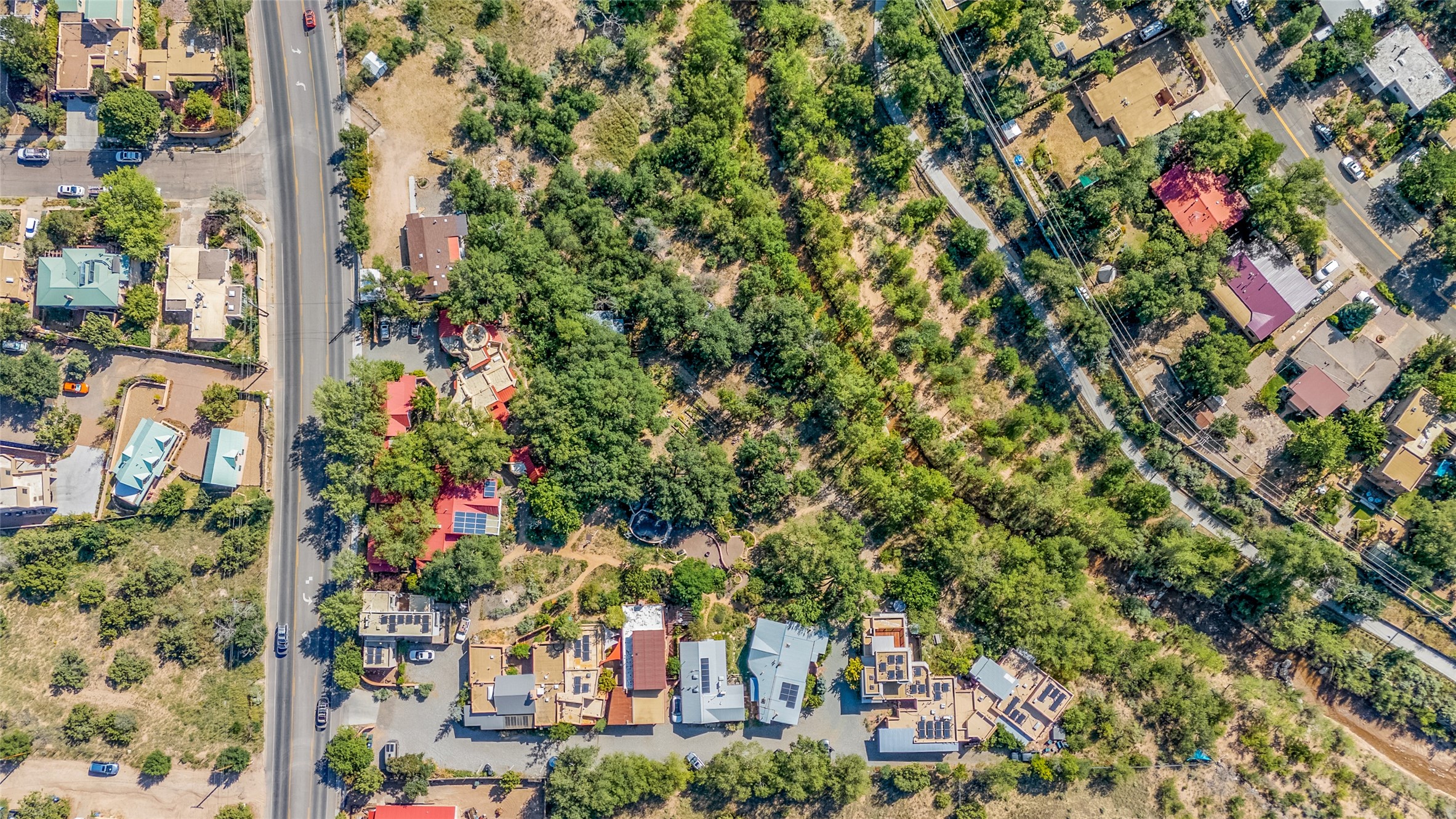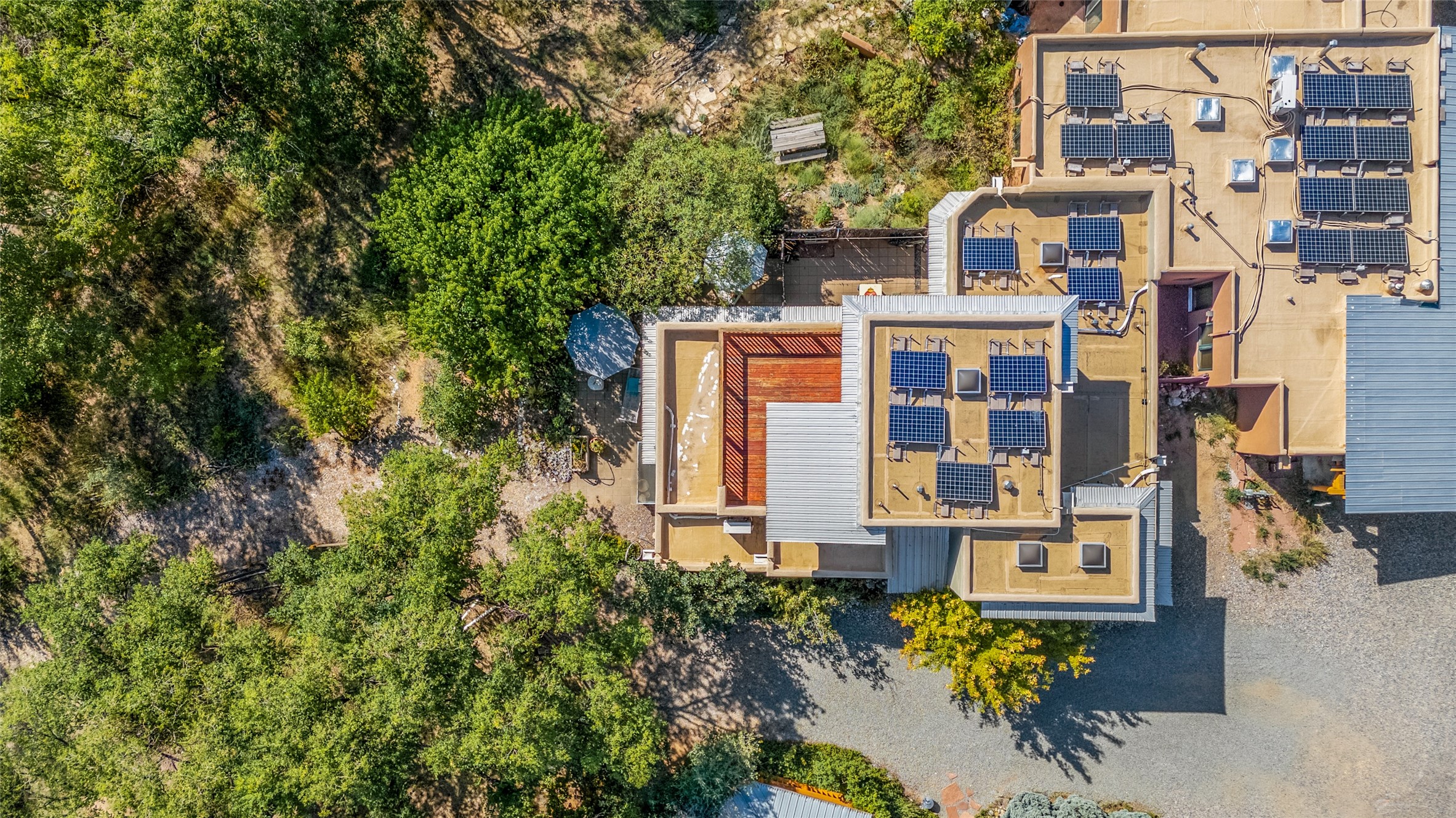 Nestled in the serene Tres Placitas del Rio Co-housing, an intimate enclave of only 11 homes on 2.5 acres. This 3 bedroom, 3 bath residence offers a rare blend of ecological living and artistic inspiration. Set along the Western banks of the Santa Fe River, this unique community is designed for those who cherish nature, creativity and connection.The home itself provides comfortable light filled spaces with a warm, inviting character. Ideal for families, gardeners or artists seeking both privacy and a sense of belonging. Solar panels on the roof provide energy efficiency, while a spacious basement awaits your creativity, perfect for a studio, workshop or additional living space. Beyond the private residence, residents share access to beautifully landscaped common areas featuring terraces, walking paths, an outdoor dining pavilion, an organic garden, fruit trees and a charming barn with goats and chickens.More than a home, this is a sustainable sanctuary where community and nature harmonize. Just minutes from all the cultural and culinary delights of downtown Santa Fe.