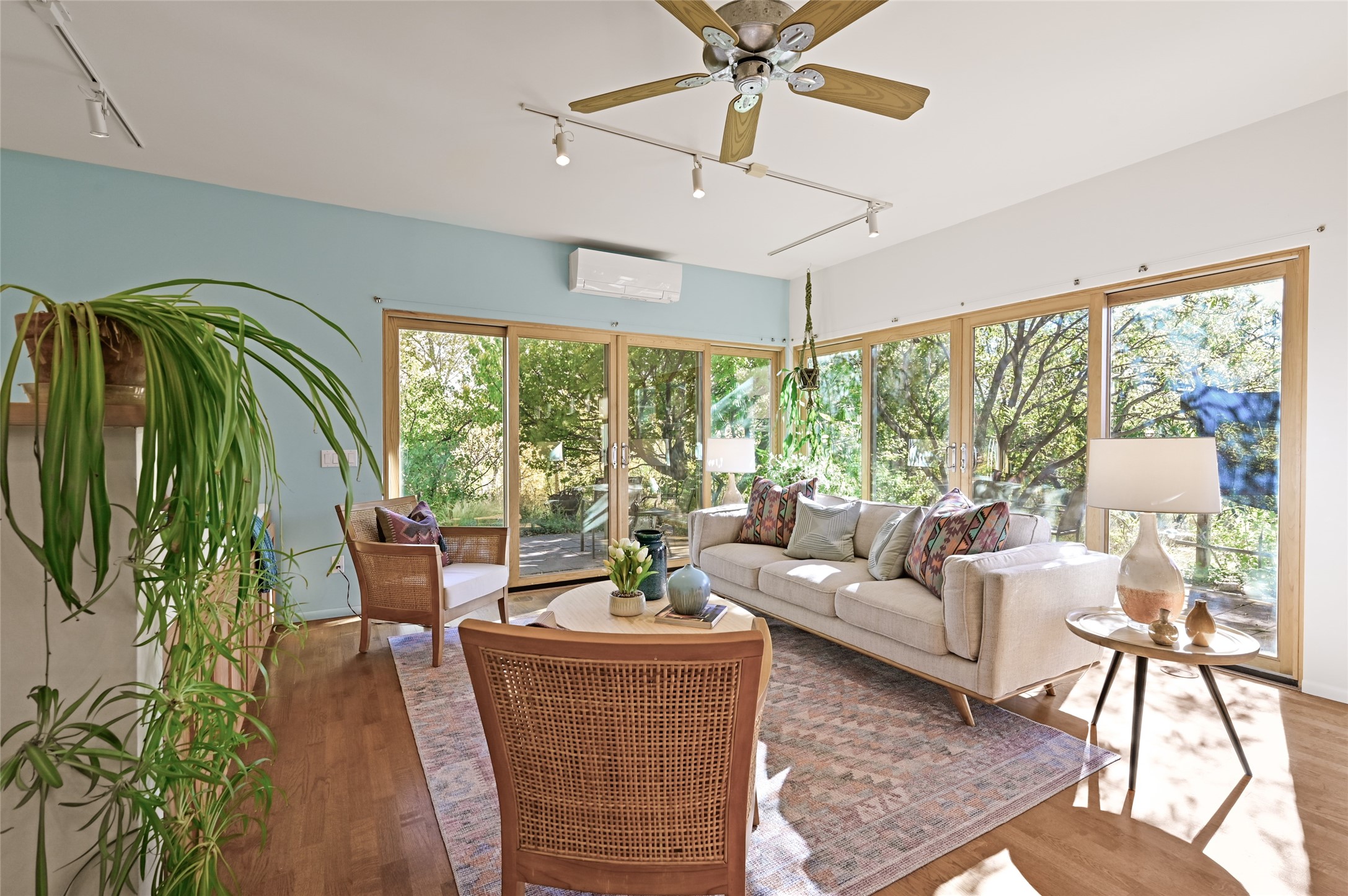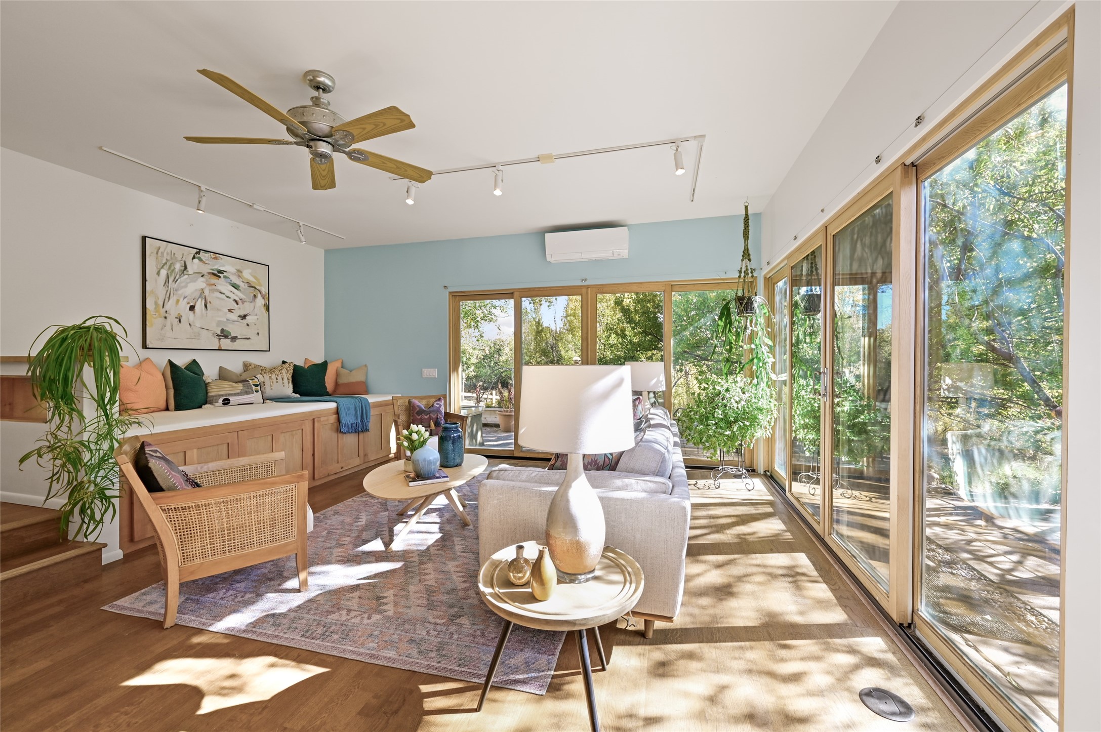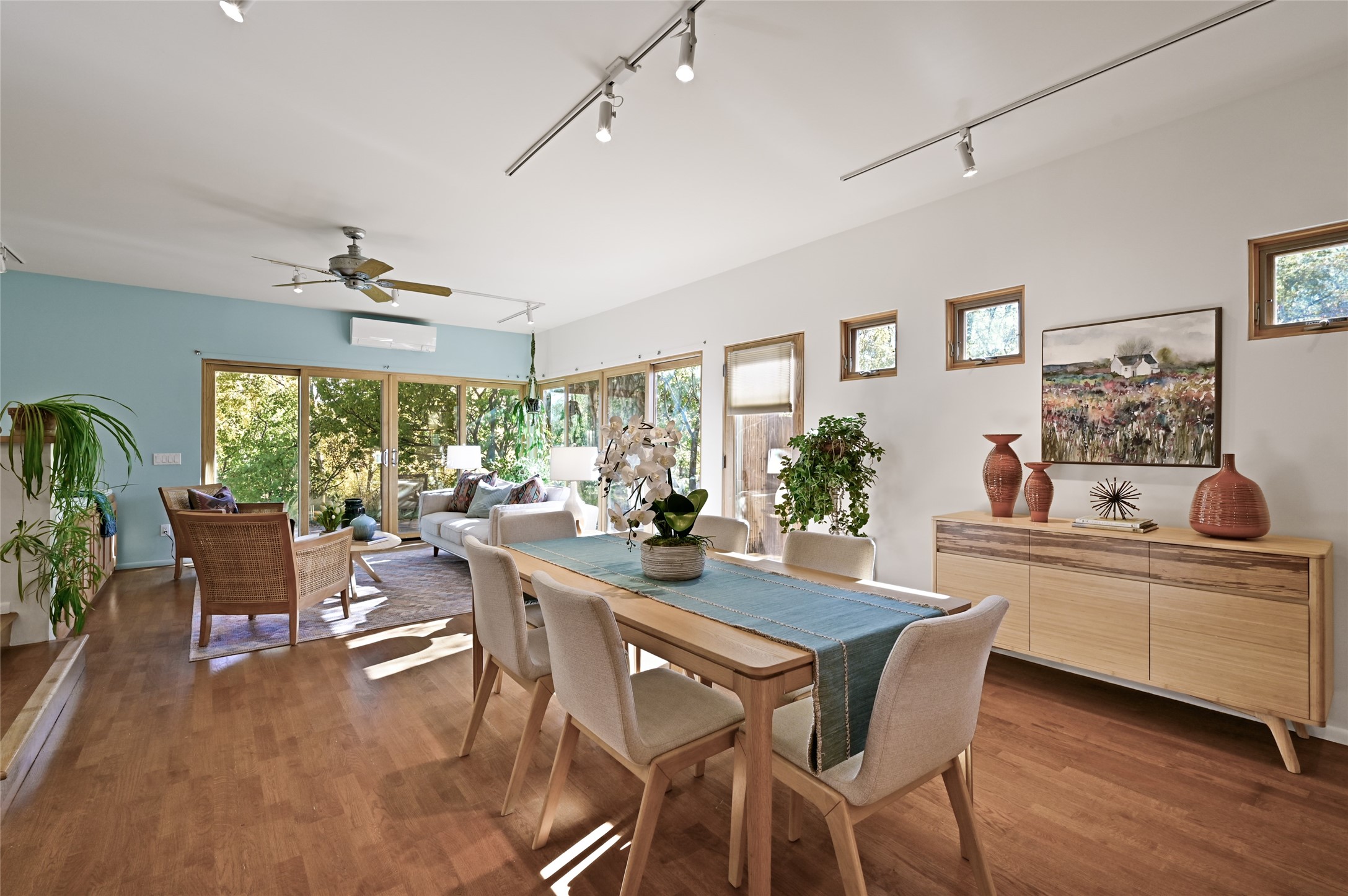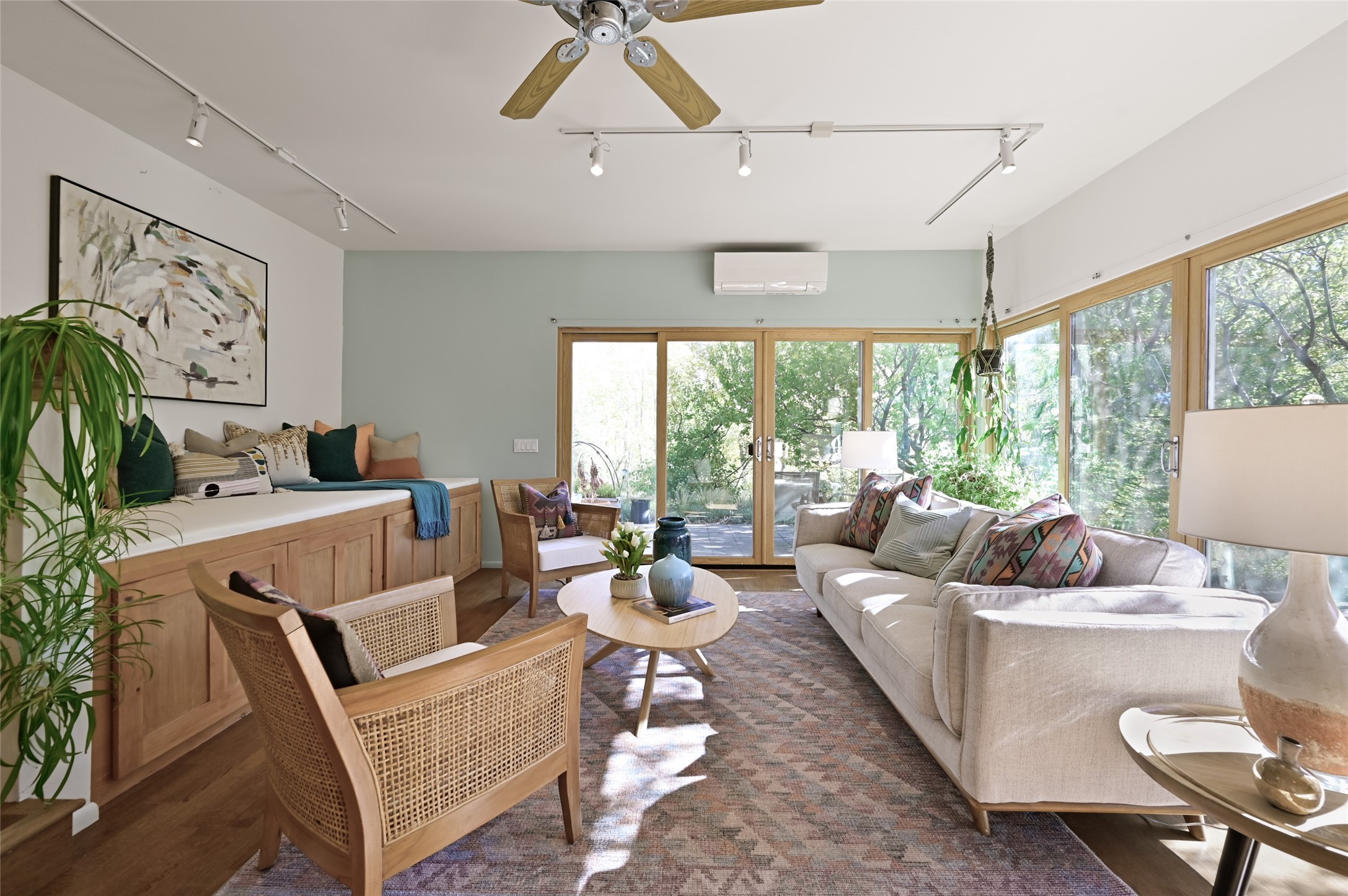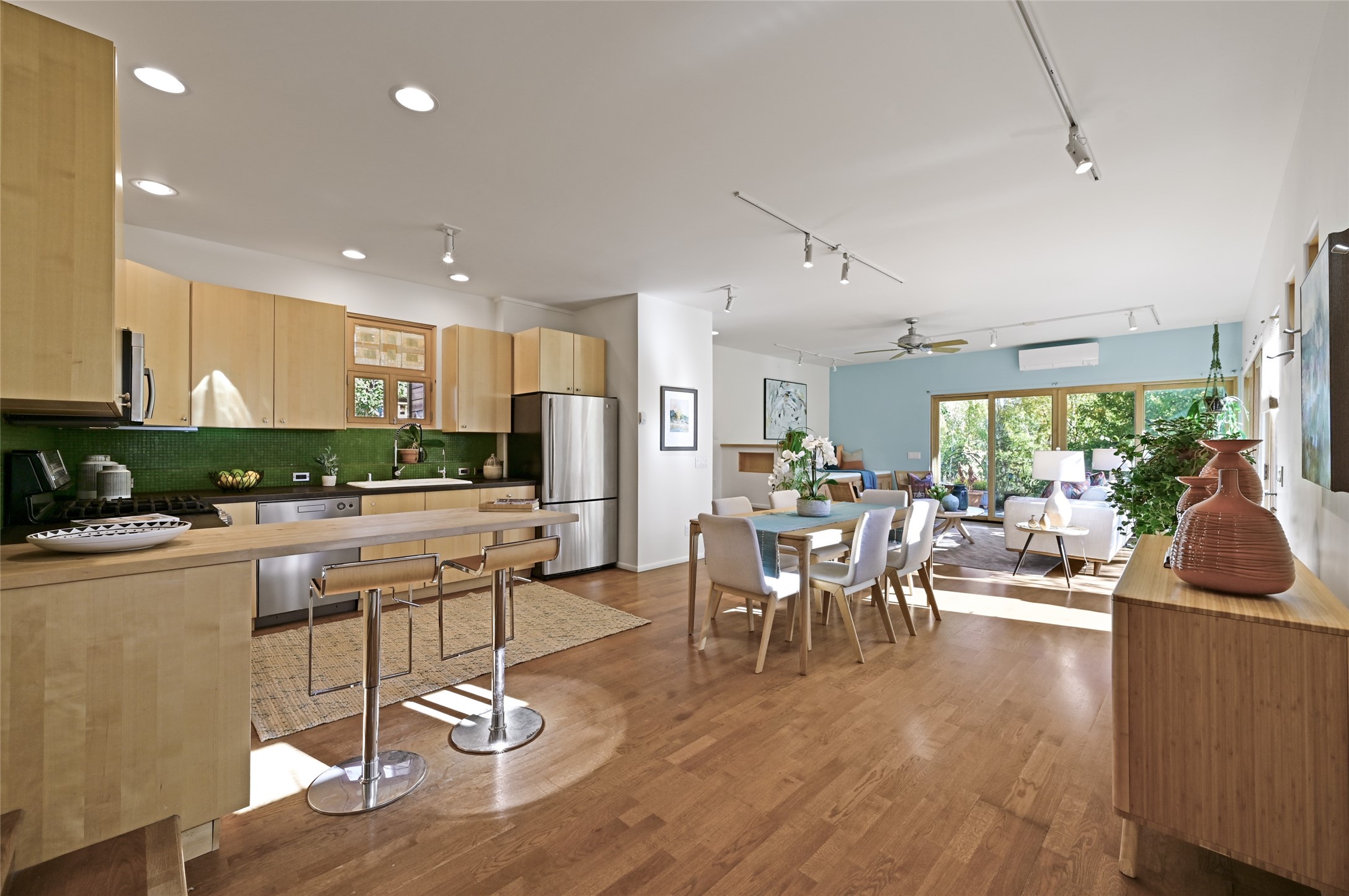 Nestled in the serene Tres Placitas del Rio Co-housing, an intimate enclave of only 11 homes on 2.5 acres. This 3 bedroom, 3 bath residence offers a rare blend of ecological living and artistic inspiration. Set along the Western banks of the Santa Fe River, this unique community is designed for those who cherish nature, creativity and connection.The home itself provides comfortable light filled spaces with a warm, inviting character. Ideal for families, gardeners or artists seeking both privacy and a sense of belonging. Solar panels on the roof provide energy efficiency, while a spacious basement awaits your creativity, perfect for a studio, workshop or additional living space. Beyond the private residence, residents share access to beautifully landscaped common areas featuring terraces, walking paths, an outdoor dining pavilion, an organic garden, fruit trees and a charming barn with goats and chickens.More than a home, this is a sustainable sanctuary where community and nature harmonize. Just minutes from all the cultural and culinary delights of downtown Santa Fe.