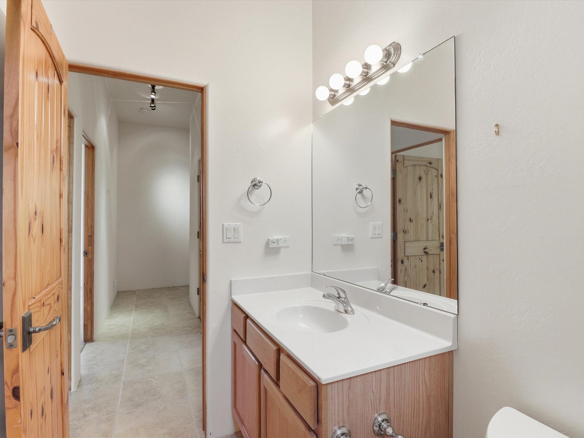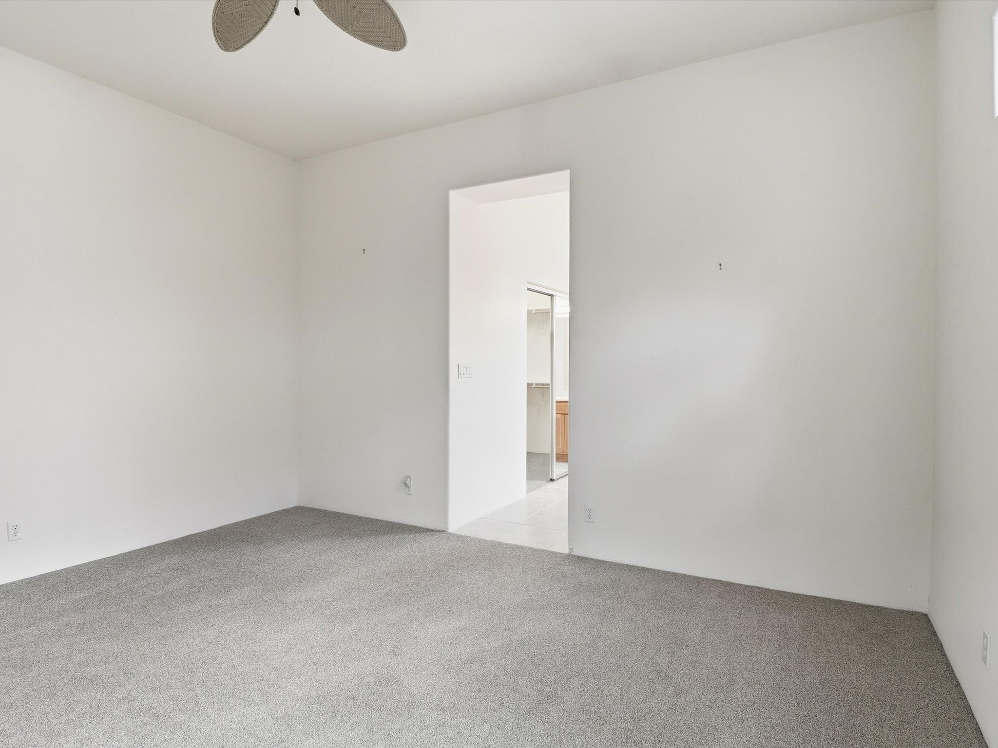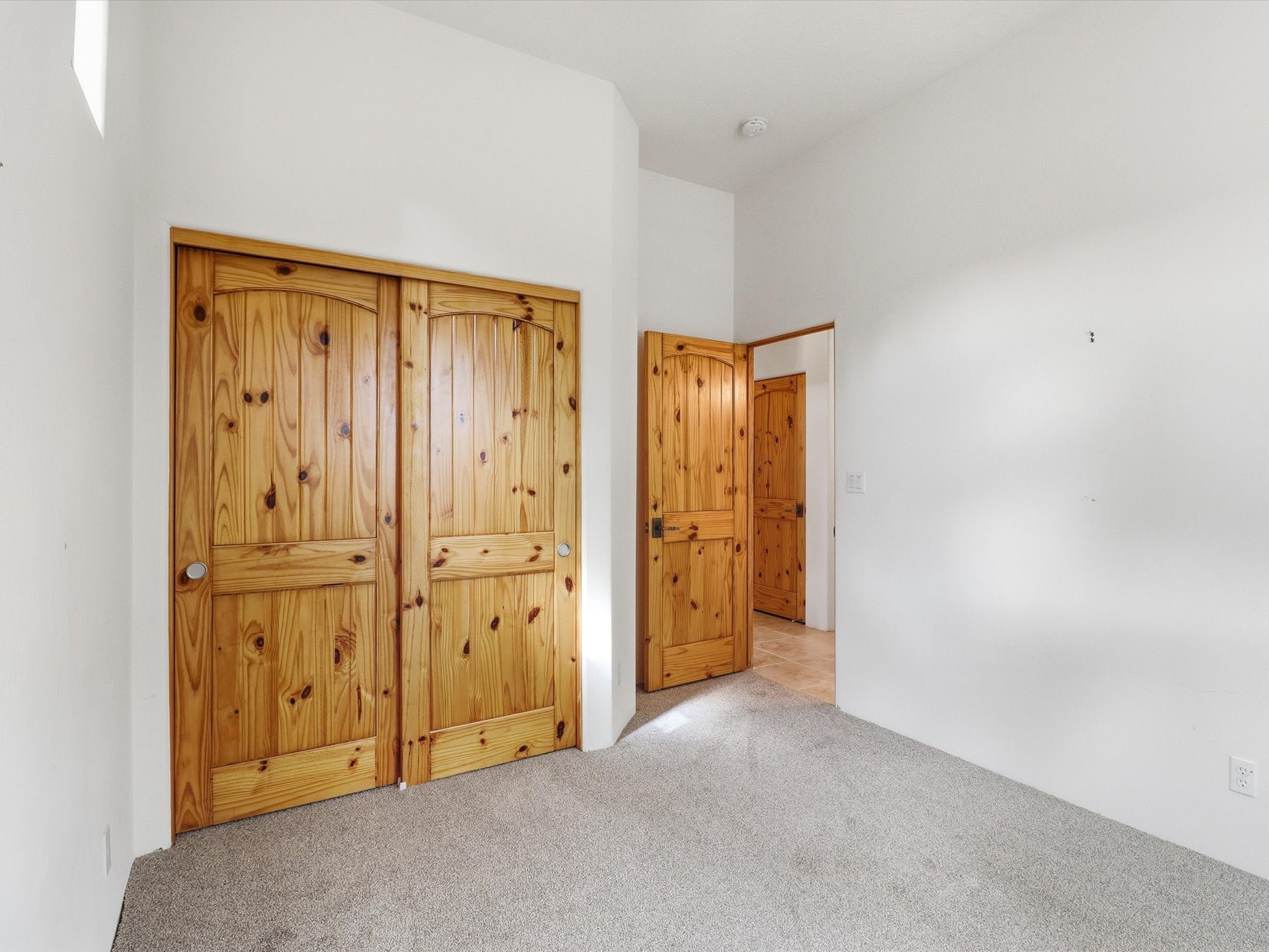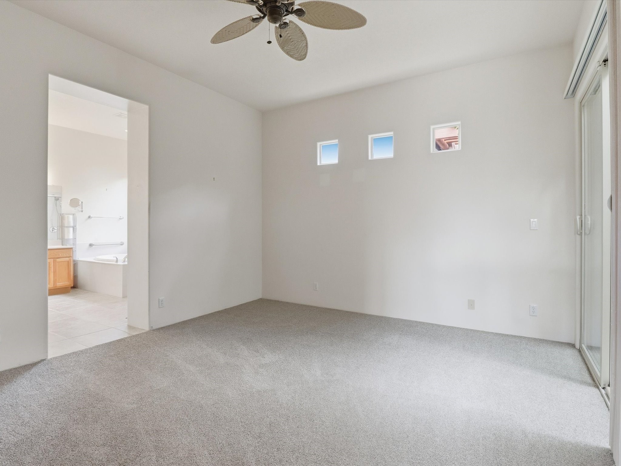 Step inside and be greeted by a stunning living room featuring a classic viga ceiling with latilla accents and custom built-in book shelving, creating a perfect blend of character and functionality. The open-concept living and dining area offers a seamless flow, ideal for entertaining or relaxing in style.The fully equipped kitchen has stainless steel appliances, a breakfast counter, and glass door access leading to the beautiful outdoors--inviting natural light and effortless indoor-outdoor living. The bright dining area opens directly to the stone-paver patio covered by a pro-panel style roof, perfect for morning coffee or evening gatherings surrounded by a mature garden filled with roses.Enjoy the thoughtful layout that connects the backyard effortlessly to both the kitchen and primary bedroom. The primary suite is a serene retreat, featuring direct access to the outdoors, a walk-in closet, and an ensuite bath with dual sinks and an enclosed shower.Situated on the south side next to the spine park walkway, this home enjoys extra sunlight, privacy, and open space--a rare find in Rancho Viejo. The covered patio and front faade framed by mature trees add to the home's peaceful and welcoming ambiance.Whether you're relaxing in the garden, hosting guests under the covered patio, or curling up with a book in the living room, this home offers the perfect balance of style, comfort, and tranquility.