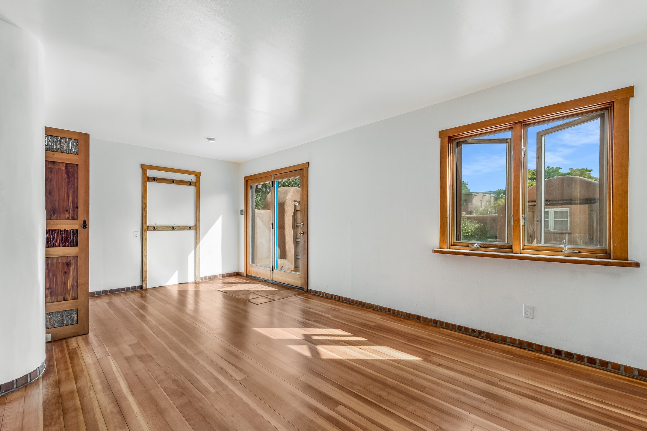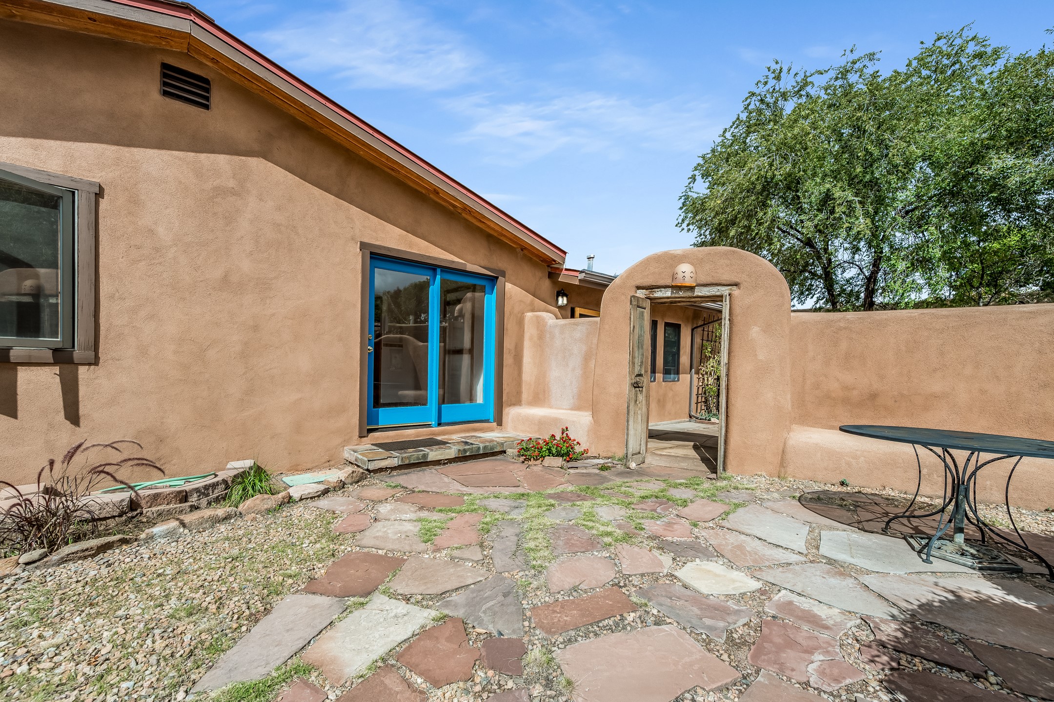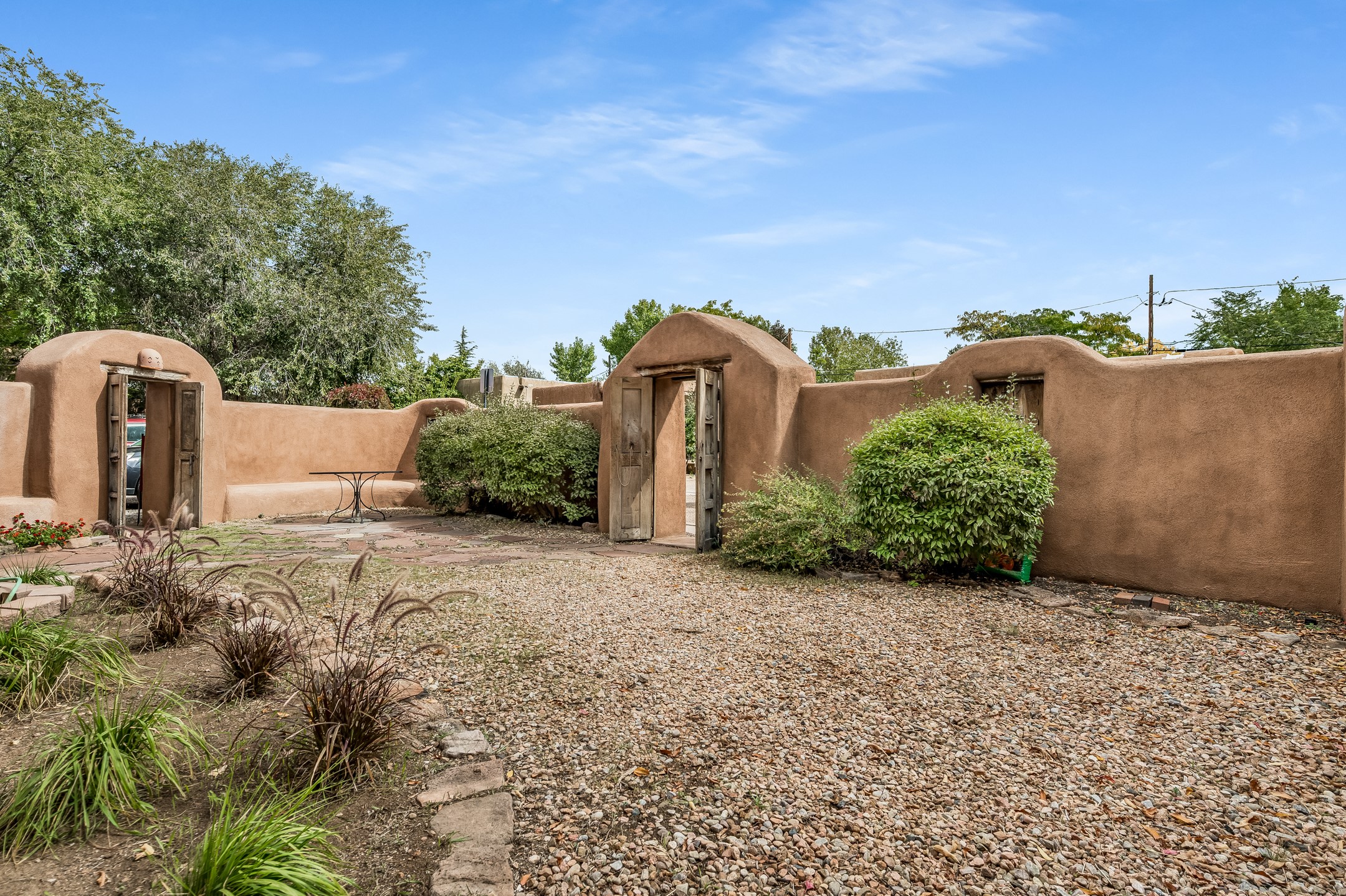 This quintessential Santa Fe style property offering Kiva fireplace, willow doors, Talavera and Saltillo tile, nichos, a walled courtyard, and off-street parking is tucked away in the much sought after Railyard Arts District. The setting is peaceful and quiet yet only a quick 5 minute jaunt to The Violet Crown, Farmer's Market, park, outdoor concerts, coffee shop, pubs, restaurants, and the vibrant vibe offered along Guadalupe Street! About a 15 minute walk to The Santa Fe Plaza where you will find shopping, world-class dining, and galleries along with stellar museums. Walking and cycling trails are minutes away making this the perfect urban home. One can even hop on the train for a ride to Albuquerque! Opportunities Abound for this property which features a home with attached guest house. You can live in one unit and rent the other or rent them both! There is even room to add a casita! Easy access to St. Francis Drive is a plus for those who commute to Los Alamos! Both units offer office space for those who work from home. A Must See!