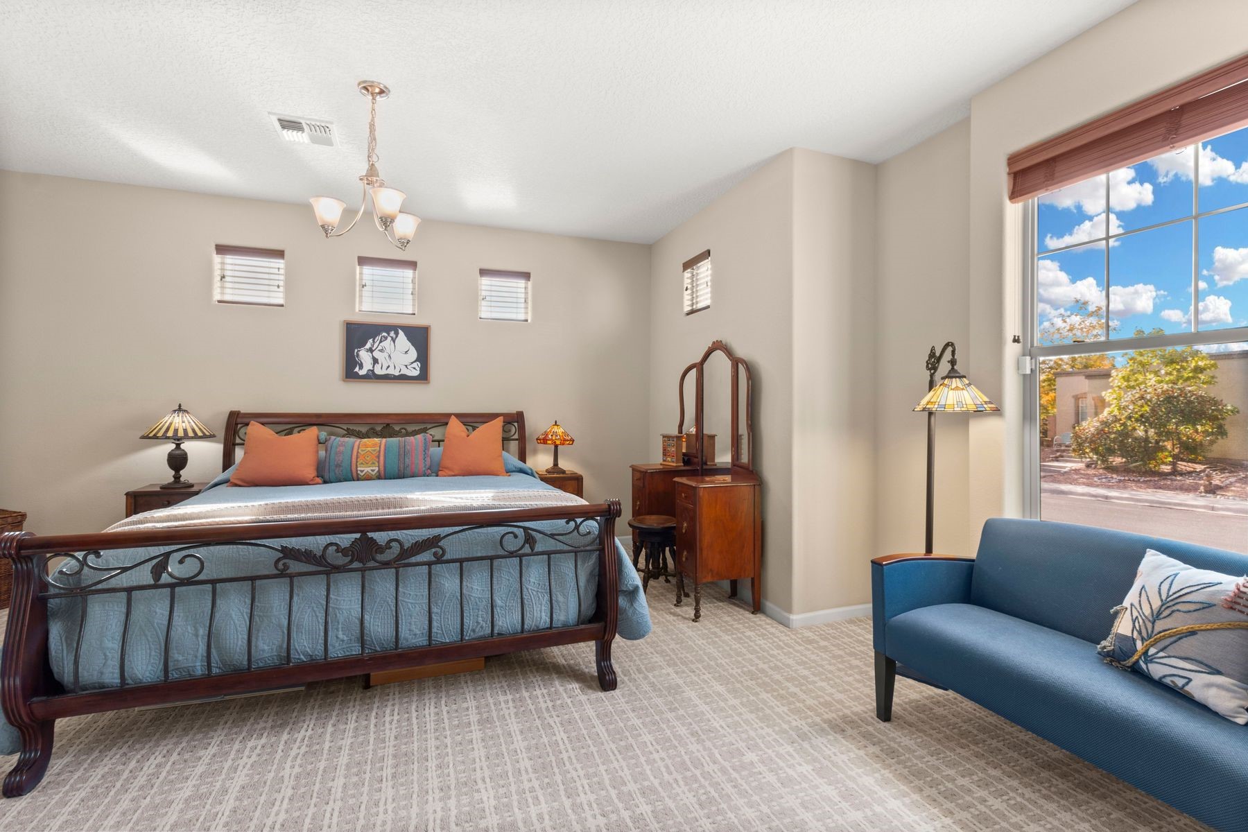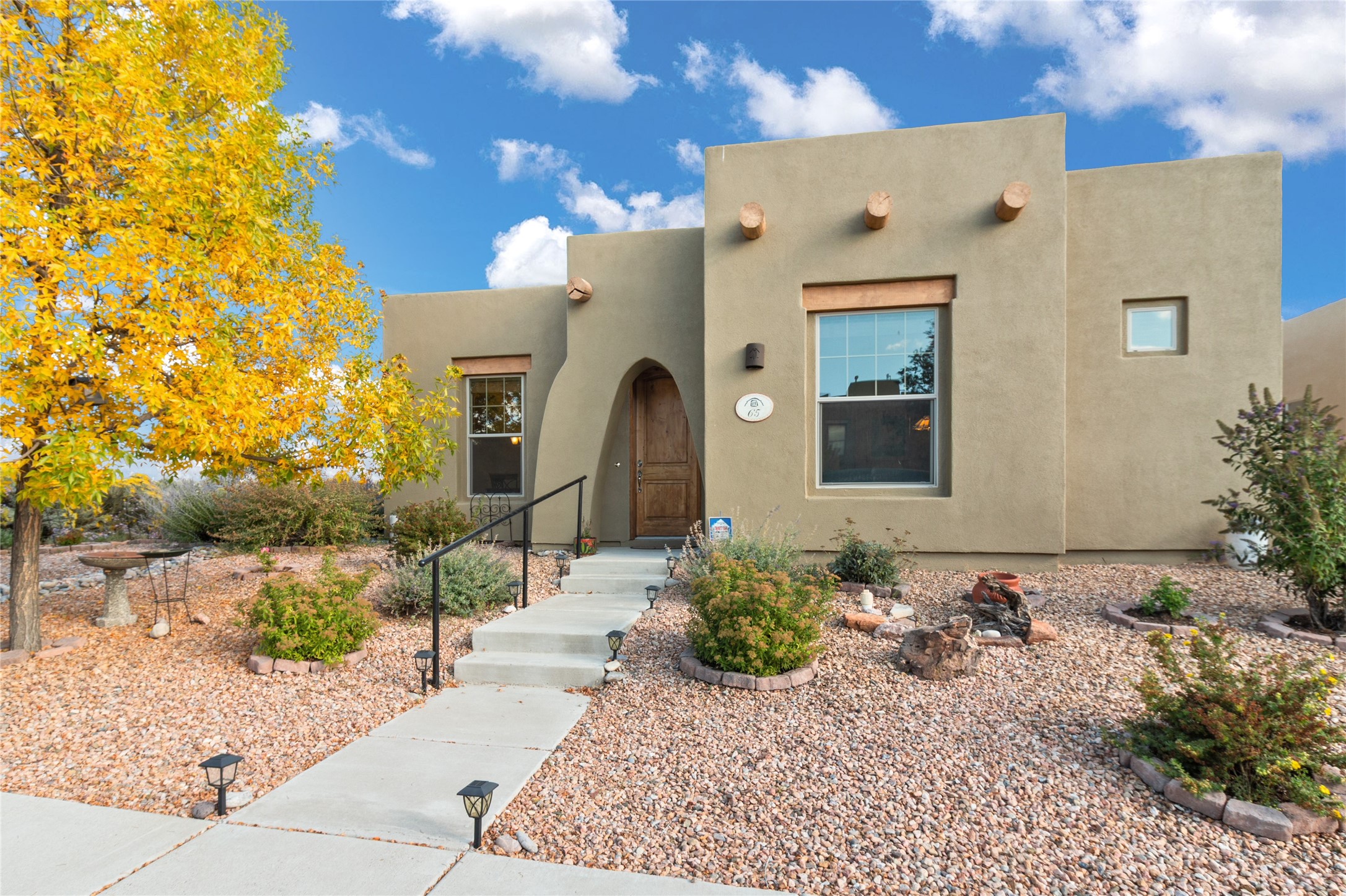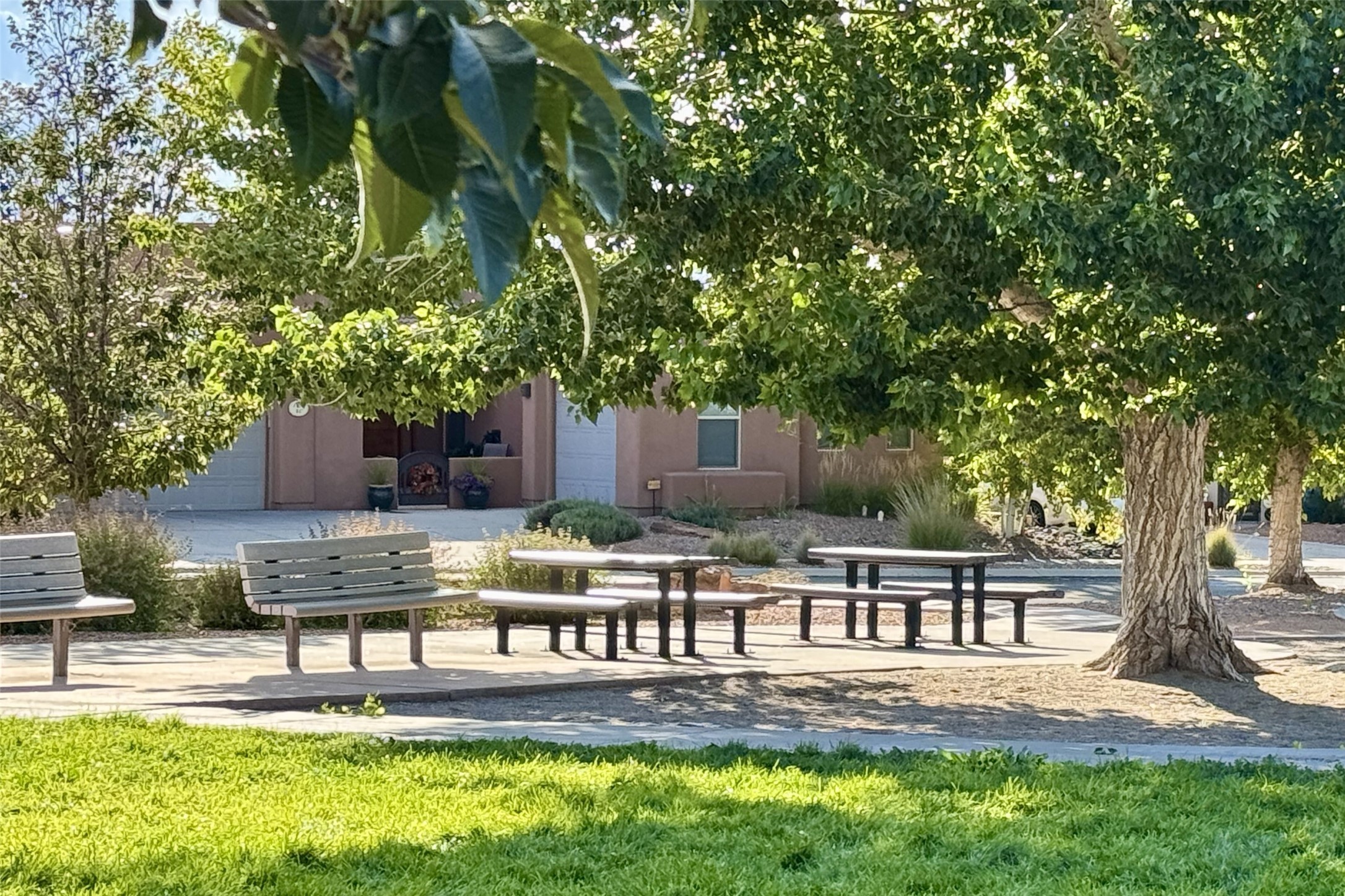 This Rancho Viejo home combines soft contemporary style with functional design. The open concept floor plan supports easy living, and the primary suite is privately located away from the guest bedrooms. Refined touches add a timeless character, and the property enjoys striking views of the Sangre de Cristo Mountains. A community park with picnic tables, benches, and playground equipment sits just a block away, adding to the appeal. Stretching across 11,000 rolling acres, Rancho Viejo is thoughtfully planned to provide a sense of community, while maintaining the wide open spaces with 50 percent of the land preserved as natural open space, parks and winding trails. The combination of comfort, style, and setting makes this a truly inviting residence.