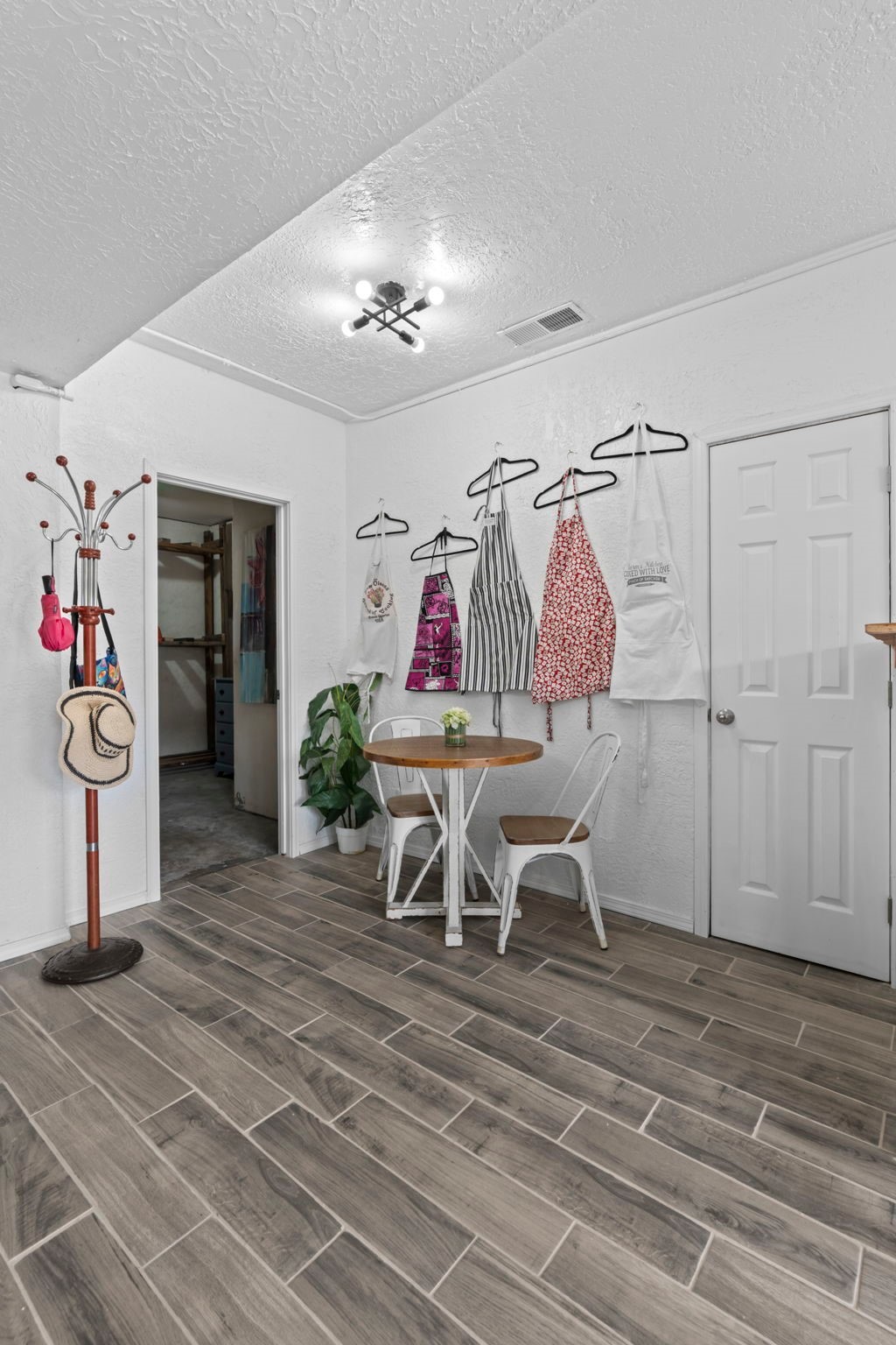 Authentic Magical Madrid Cottage with Creative Spaces! This sun-soaked gem blends possibility with artistic living. The upper level features a one-bedroom, one full bathroom, full kitchen owner's suite with a private deck perfect for morning coffee or stargazing. Below, features a flex space like no other. Open floorplan with one bathroom and full kitchen. Great family home. With a separate entrance, the downstairs is perfect for a full-time rental or a short-term rental. Commercial space to display your unique art, local jewelry, homemade candles, local apparel, or anything your heart desires, while living upstairs and walking to enjoy all that Madrid has to offer! PLUS, lot next door is included. Perfect for additional parking or bldg. Amy Biehl Elem, Milagro Middle, SF High. YOU'RE HOME!