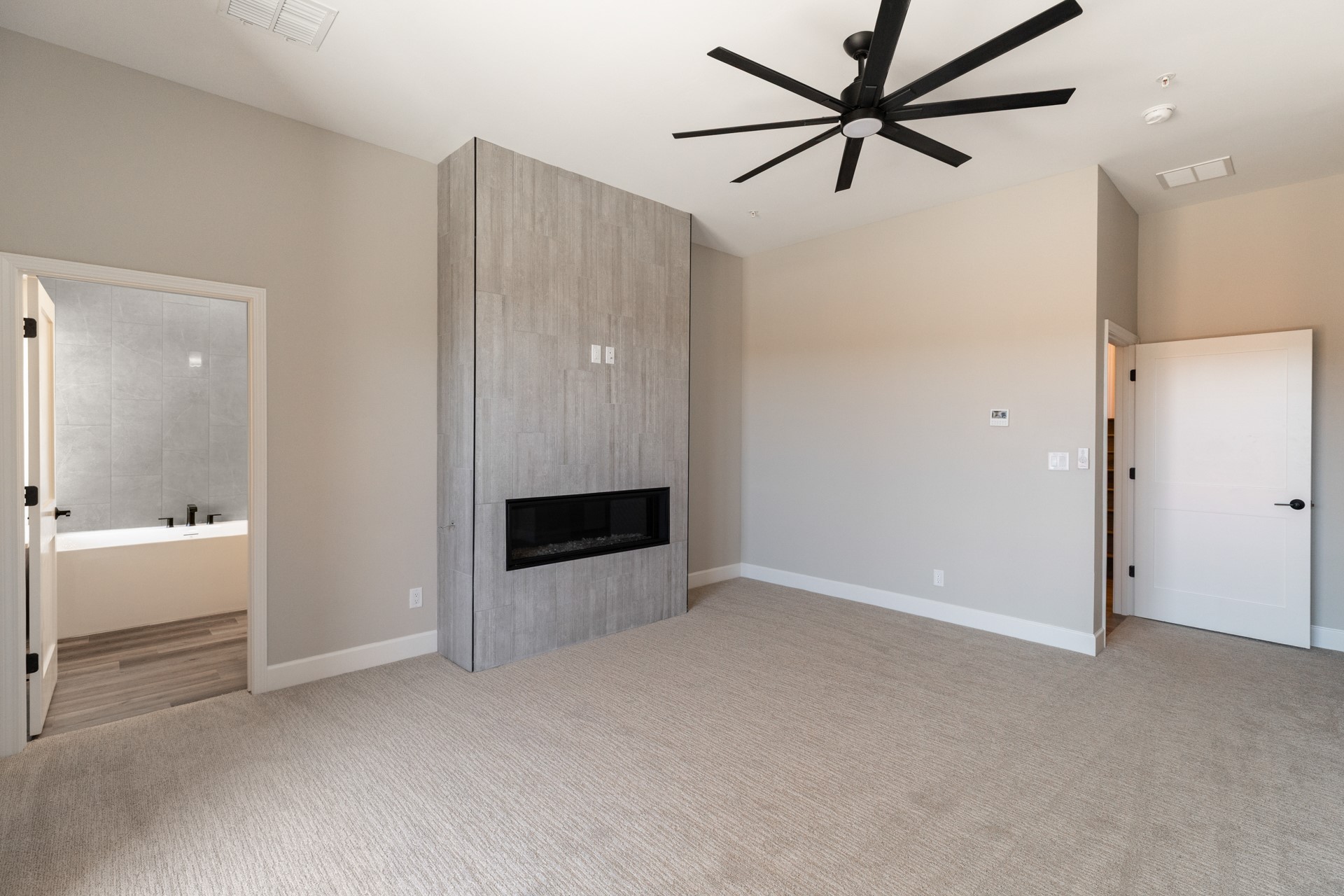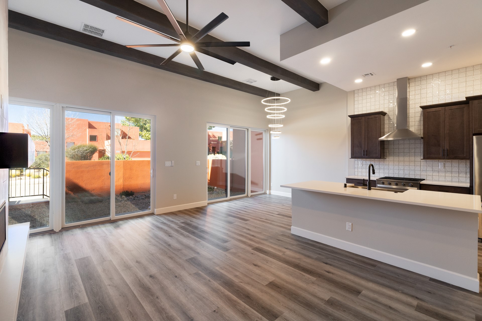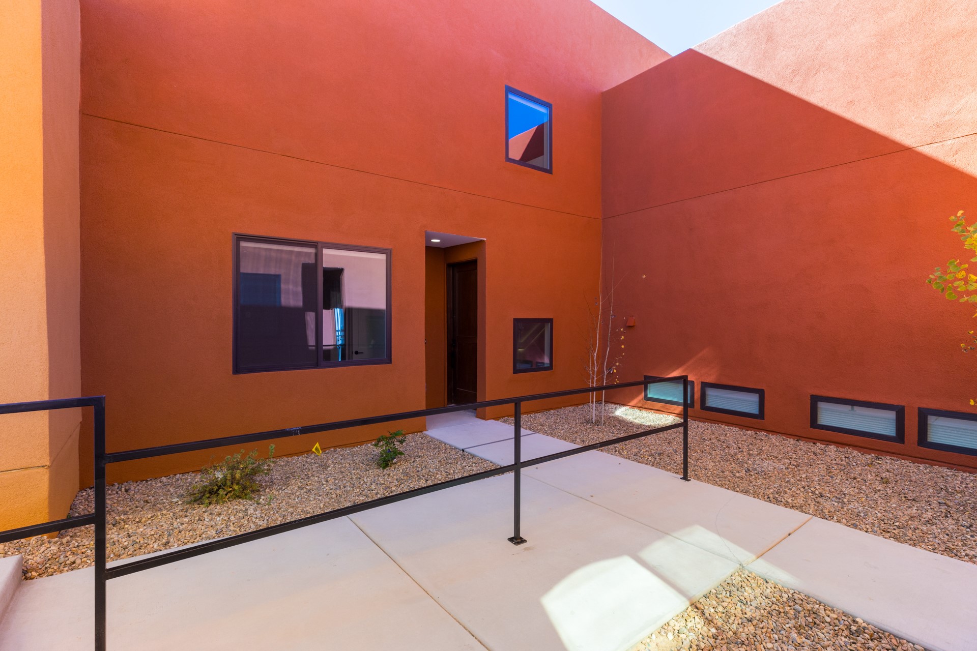 Welcome to Unit #45 at Zocalo, Santa Fe--A refined interior unit that perfectly melds luxury with comfort. As you step into the inviting foyer, you are presented with two enticing options: descend to the lower level where the expansive great room awaits, complete with modern grey toned, sophisticated brushed nickel finishes, and contemporary maple-finished flooring that radiates modern elegance. This level also houses the well-appointed kitchen and provides access to the beautifully landscaped patio, ideal for both vibrant entertainment and serene relaxation.Alternatively, ascend to the upper level where you will find the luxurious primary suite, featuring a cozy second fireplace that creates an opulent sanctuary perfect for restful nights. Atop boasts a junior suite offering additional comfort and privacy.