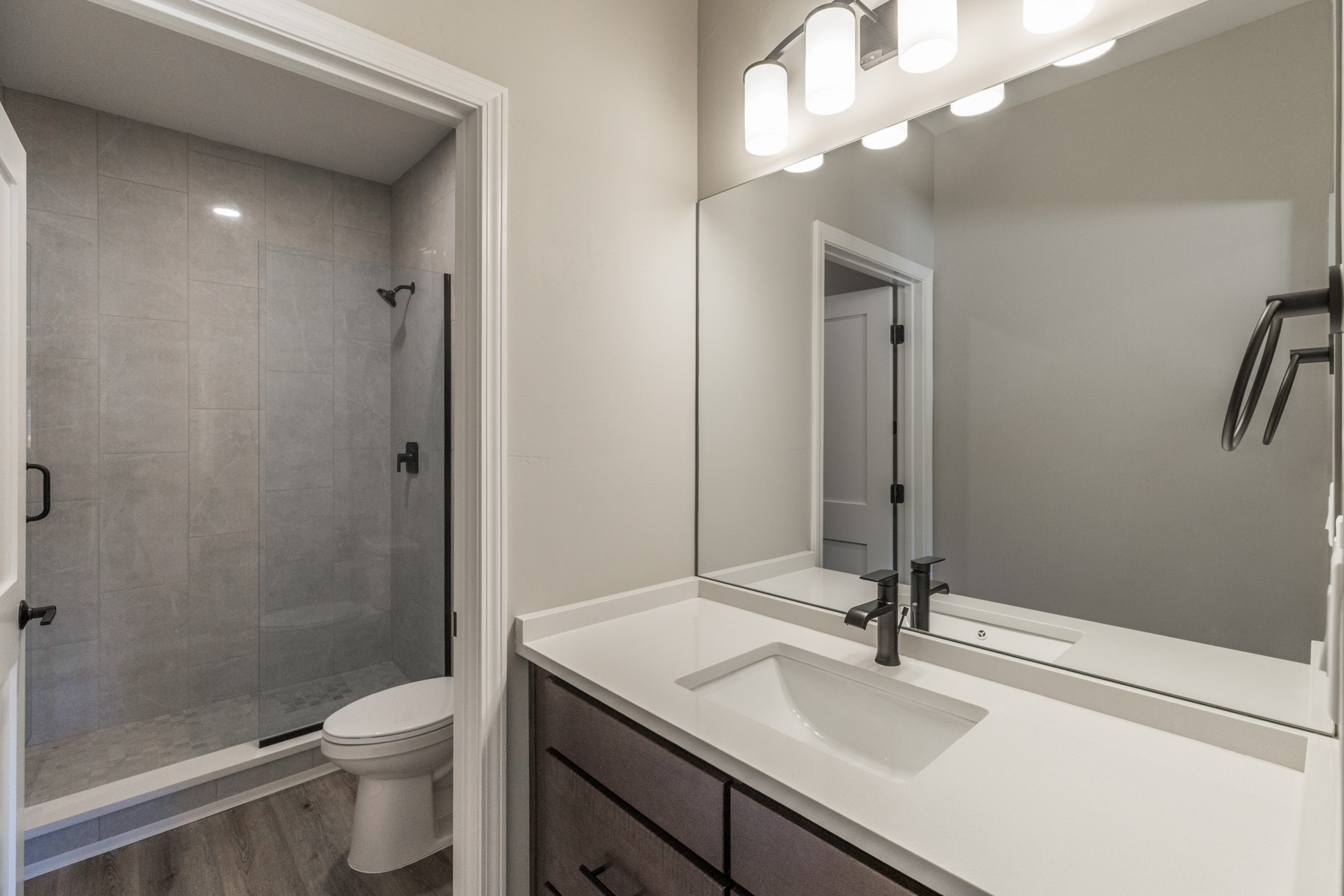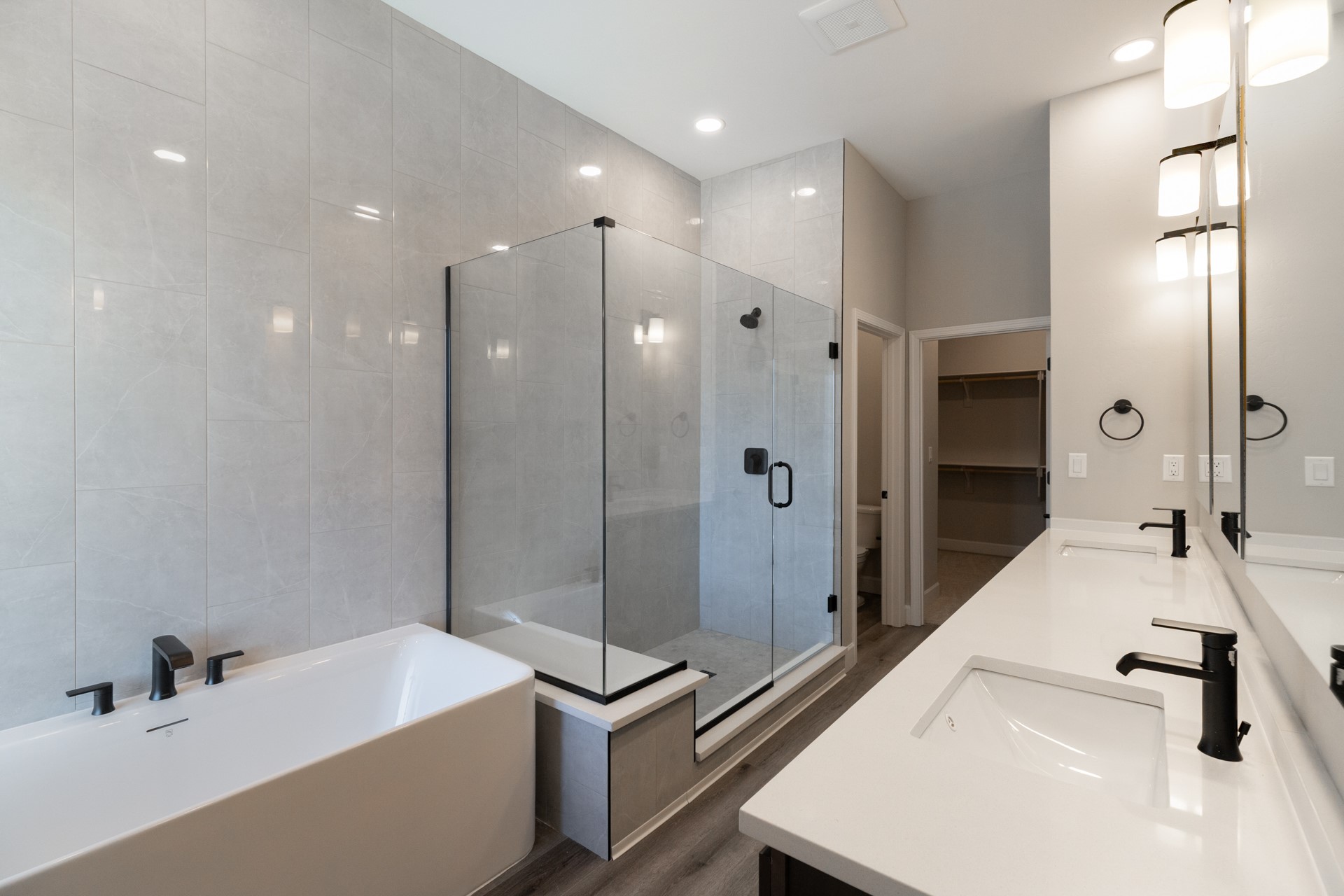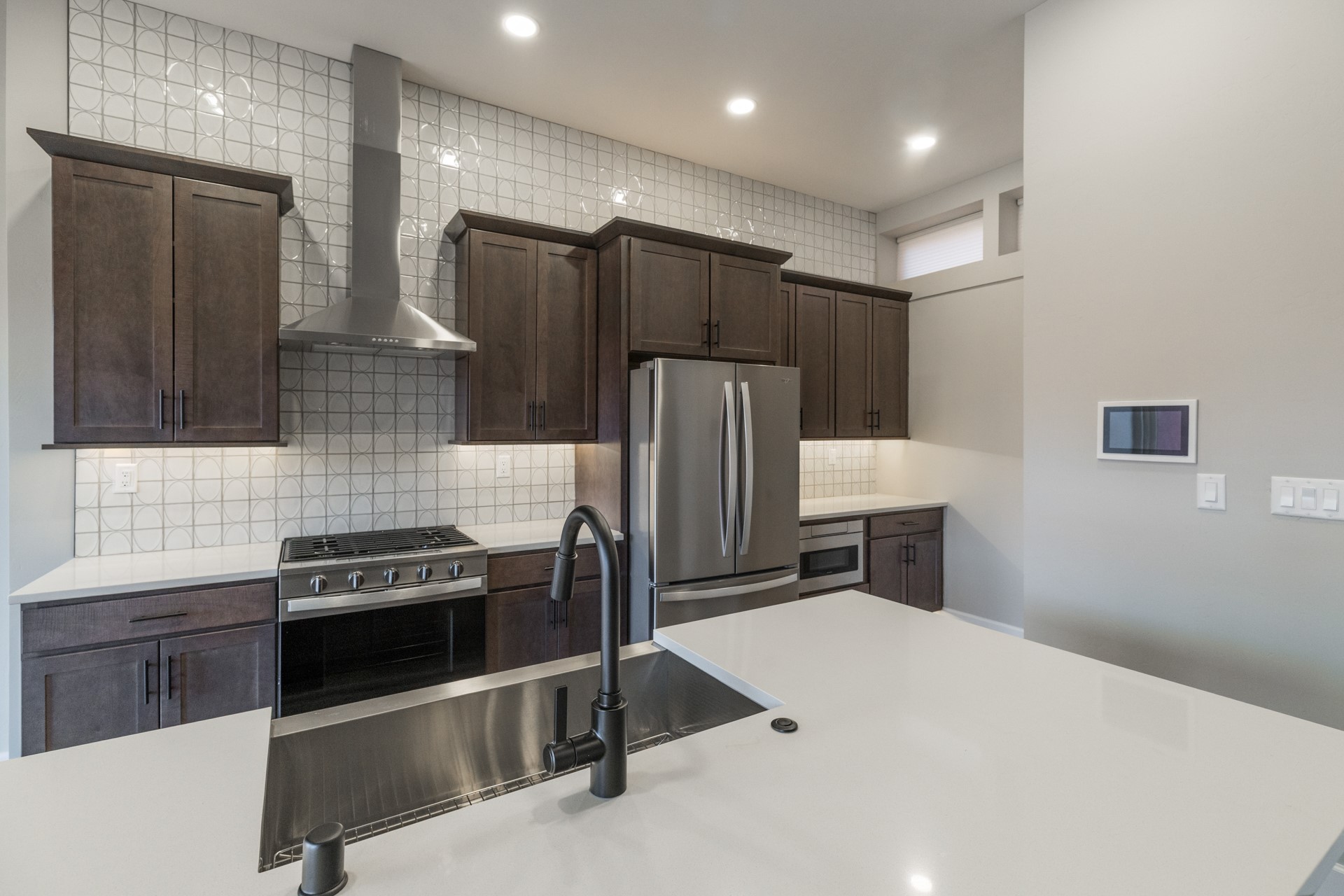 Welcome to Unit #45 at Zocalo, Santa Fe--A refined interior unit that perfectly melds luxury with comfort. As you step into the inviting foyer, you are presented with two enticing options: descend to the lower level where the expansive great room awaits, complete with modern grey toned, sophisticated brushed nickel finishes, and contemporary maple-finished flooring that radiates modern elegance. This level also houses the well-appointed kitchen and provides access to the beautifully landscaped patio, ideal for both vibrant entertainment and serene relaxation.Alternatively, ascend to the upper level where you will find the luxurious primary suite, featuring a cozy second fireplace that creates an opulent sanctuary perfect for restful nights. Atop boasts a junior suite offering additional comfort and privacy.