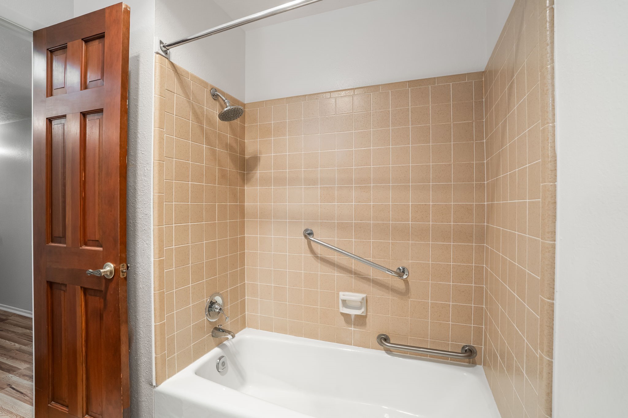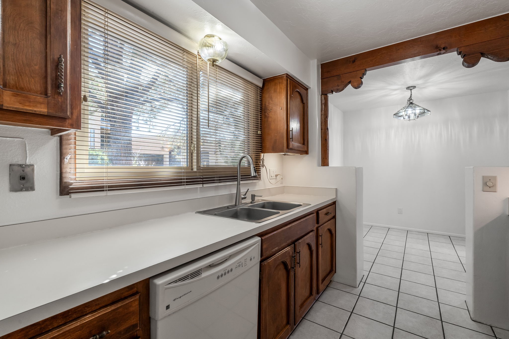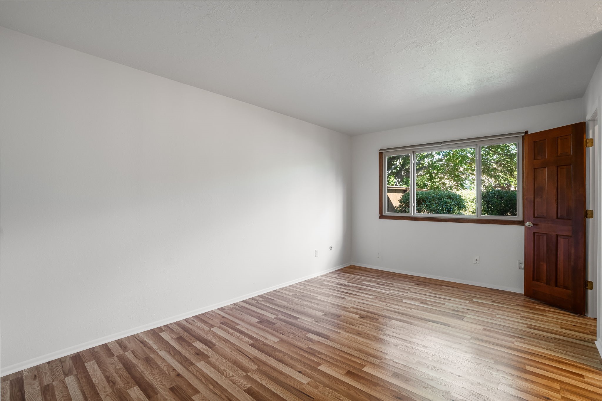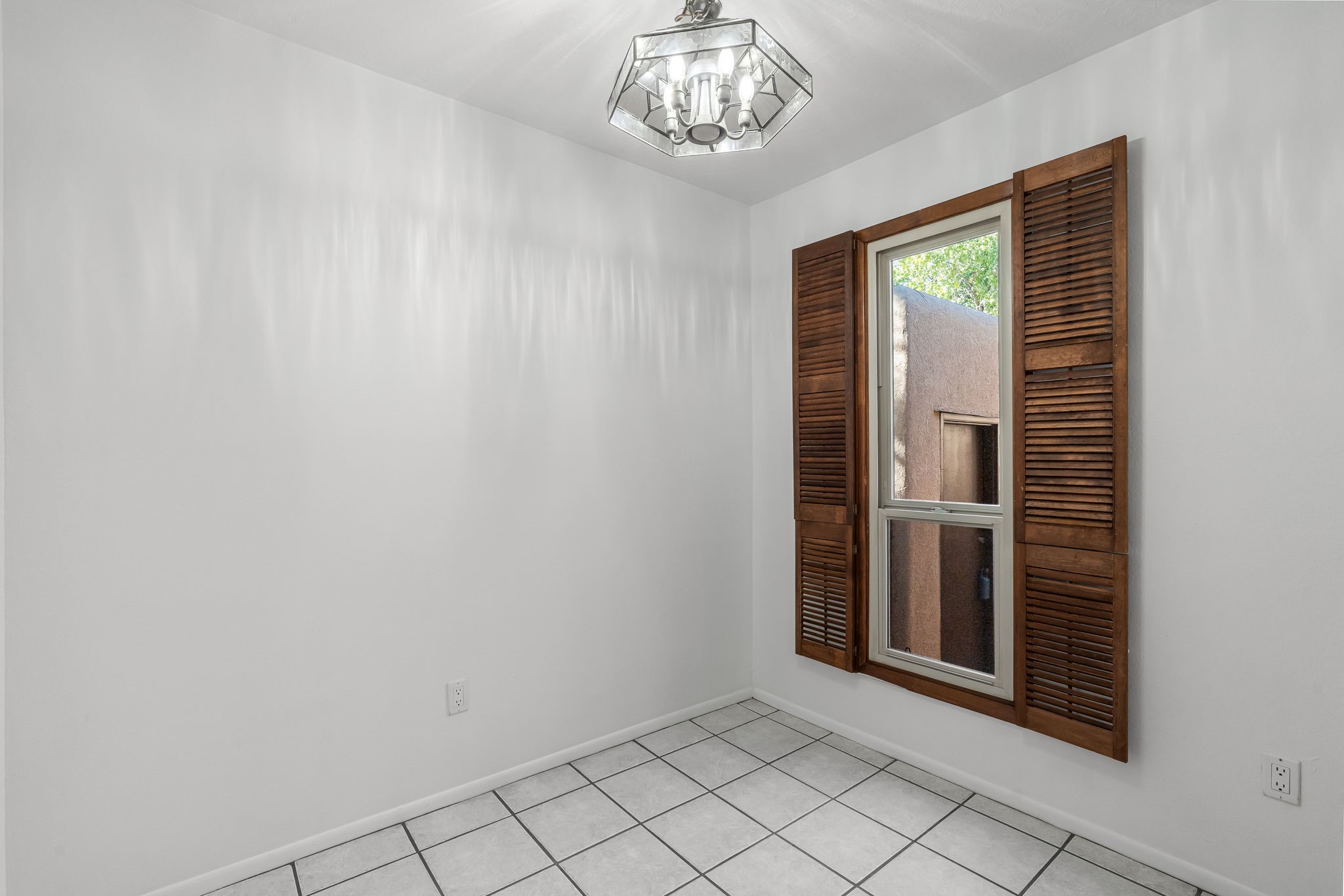 Welcome home to this beautifully refreshed single-story townhouse offering 2 bedrooms, an office, and timeless Santa Fe charm. Step through the inviting blue gate into a brick courtyard, where a sense of warmth and tranquility sets the tone for what's inside.Freshly painted throughout and featuring new laminate flooring, this home is move-in ready and thoughtfully designed for both comfort and style. Just off the entry hall, you'll find a versatile office--perfect for working from home or creative pursuits.The living room is a true highlight, showcasing a beamed ceiling, corner Kiva fireplace, and sliding doors that open to a spacious covered portal overlooking the backyard. A charming little gate leads directly to a neighborhood walking path, ideal for morning strolls or evening walks.The galley kitchen features tile floors, newer appliances, and a cozy breakfast area filled with natural light. The second bedroom includes a walk-in closet, while the generous primary suite offers a large picture window, walk-in closet, and a private bath.Outside, a detached two-car garage provides convenience and extra storage.Located in Park Plazas, one of Santa Fe's most beloved communities, residents enjoy miles of walking trails, tennis courts, an off-leash dog park, and a community garden--all just minutes from shopping, restaurants, and the Santa Fe Plaza.This home beautifully combines authentic Santa Fe character with modern updates and an unbeatable location. Come see why Park Plazas living is so special!