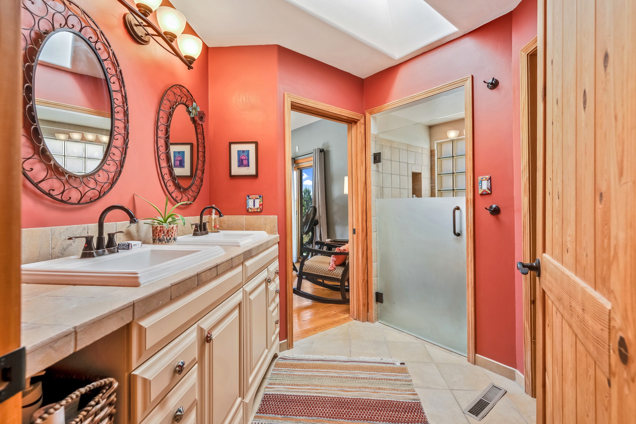 In a serene, tree-filled setting with sweeping views of the Sangre de Cristo foothills, this single-level 2600 sqft main residence offers comfort and privacy. Featuring three bedrooms and two bathrooms, a cheerful office with built-ins, separate living and dining rooms, and a completely renovated custom kitchen, the generous floor plan has space for everyone. Enjoy a cozy fire while watching the sun dip beyond the horizon or take in your morning coffee on the back portal while the fountain gurgles - this home will entice you to slow your pace and enjoy living amongst the pion trees. The primary bedroom is a true sanctuary, with a generous walk-in closet, a well-appointed ensuite bath, and direct backyard access to provide a seamless indoor-outdoor flow. A bonus room and a dedicated laundry room off the kitchen add to the functionality while the STUDIO CASITA (additional 478 sqft) with a private entrance is perfect for creative work, quiet retreats, and passive income. Other features include a tiled foyer, wood floors, beamed ceilings, stone countertops, and enhanced lighting throughout. Set on a private, 2+ acre lot with mature landscaping, the property is further augmented by a separate carport, RV space, an electric vehicle charger, and SOLAR PANELS for energy efficiency. Insurance was currently renewed, providing peace of mind. This property blends Southwest charm with modern updates and a flexible layout--a rare find with built-in investment opportunity.