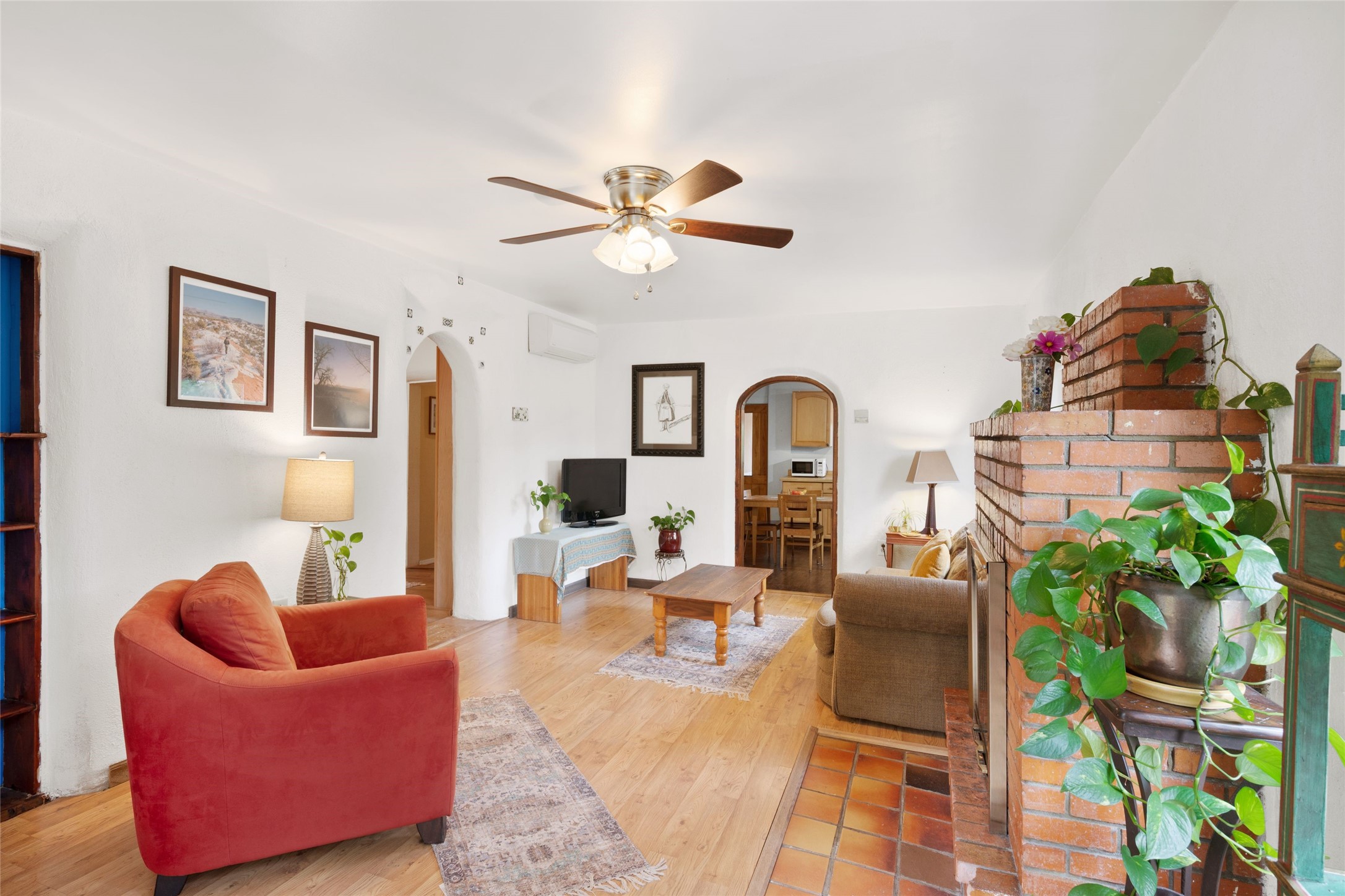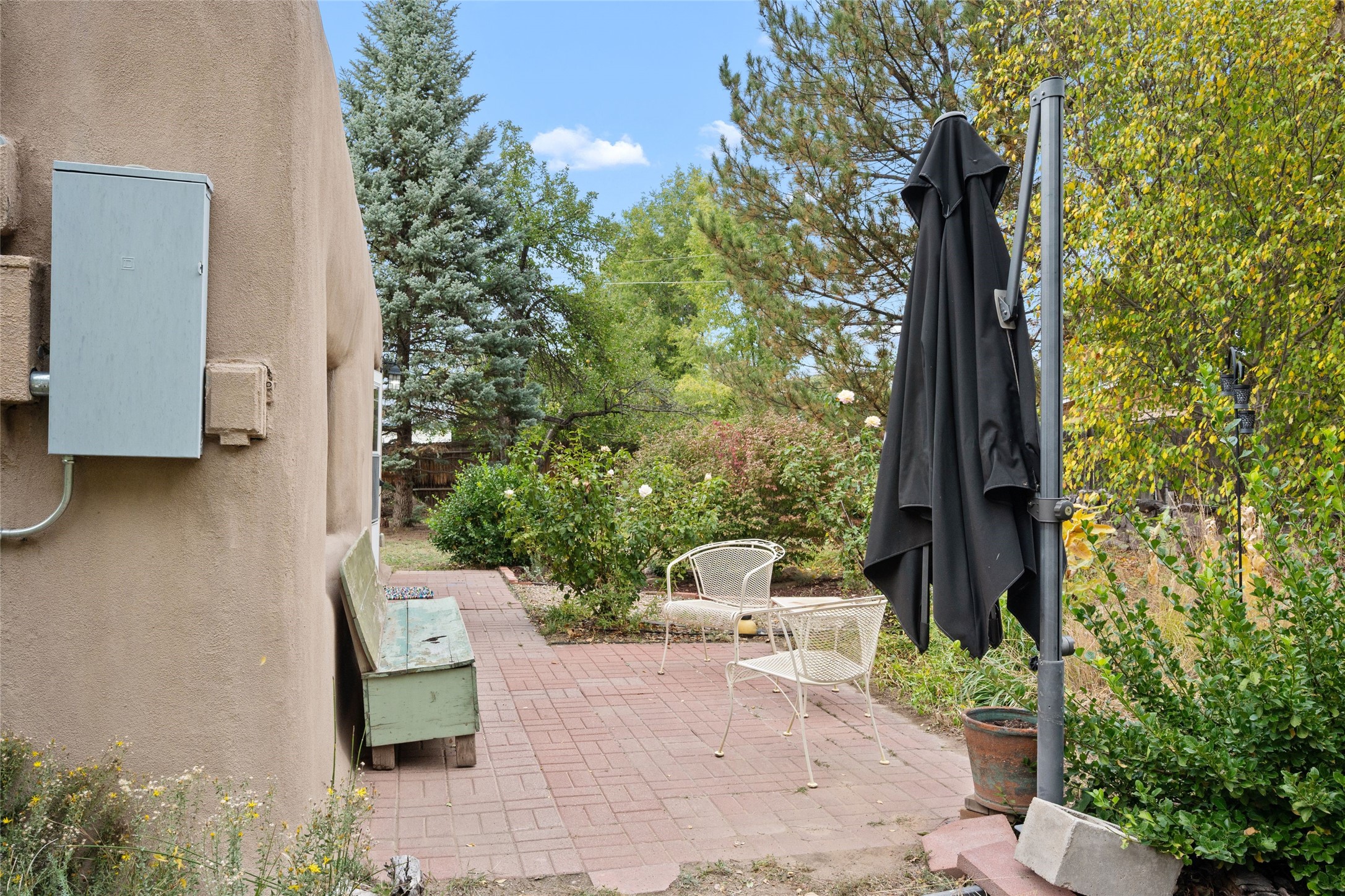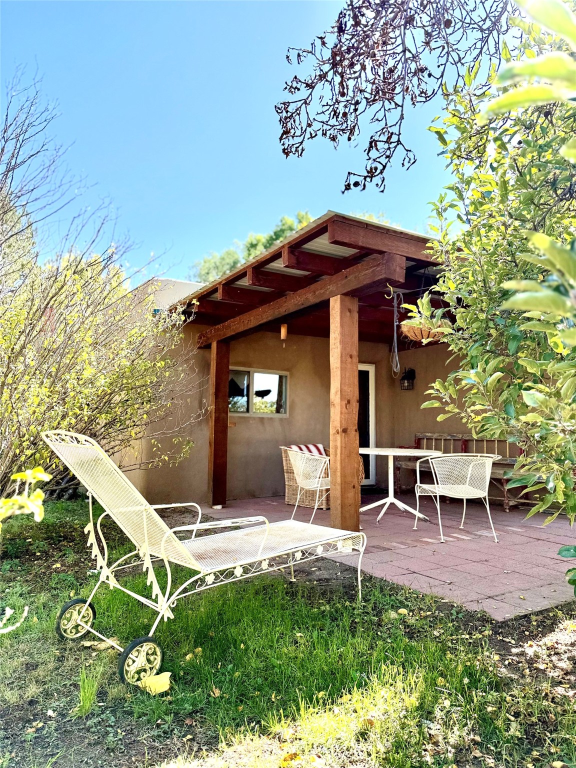 Inviting single-level home located in the town of Alcalde, within the beautiful Rio Grande Valley, on approximately one acre of land with acequia surface water rights. This 2-bedroom, 1-bath property offers about 1,200 square feet of comfortable living space with a relaxed country feel. Featuring classic Adobe and frame construction, the home showcases timeless Santa Fe style.Enjoy outdoor living under the long portal, perfect for relaxing or entertaining amid peaceful surroundings and taking in the lovely views from the backyard. The fully fenced property includes gardens and fruit trees, with plenty of space for additional gardening or outdoor projects. Mini splits provide efficient heating and cooling throughout.The detached two-car garage offers excellent storage or workshop potential. Originally built around 1970, the home has seen several thoughtful improvements since 2021, combining functionality and charm in a peaceful setting.
