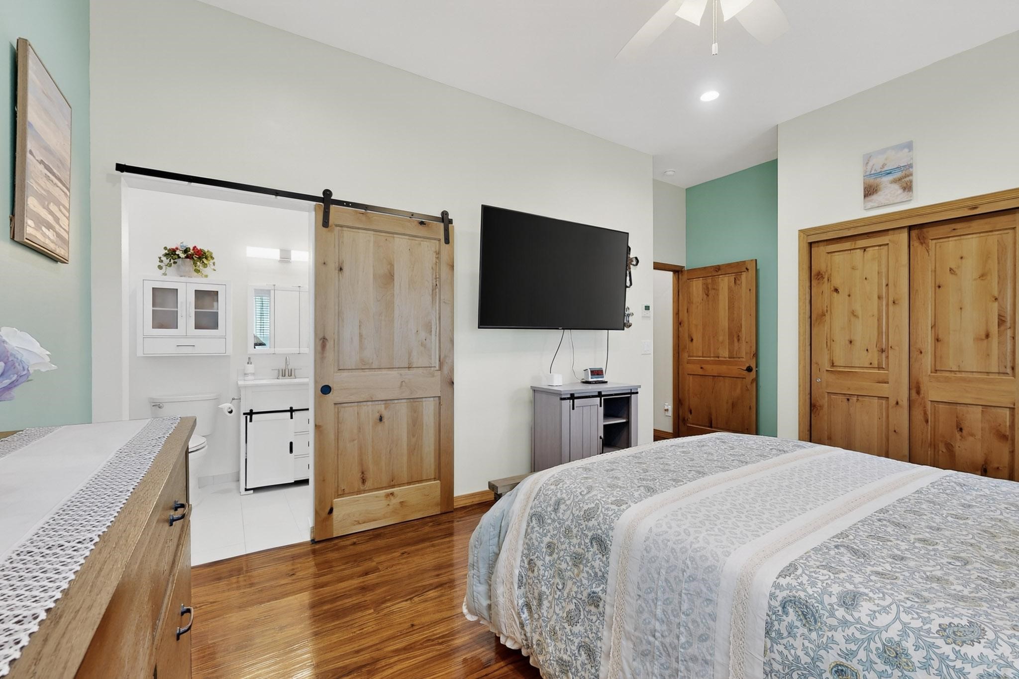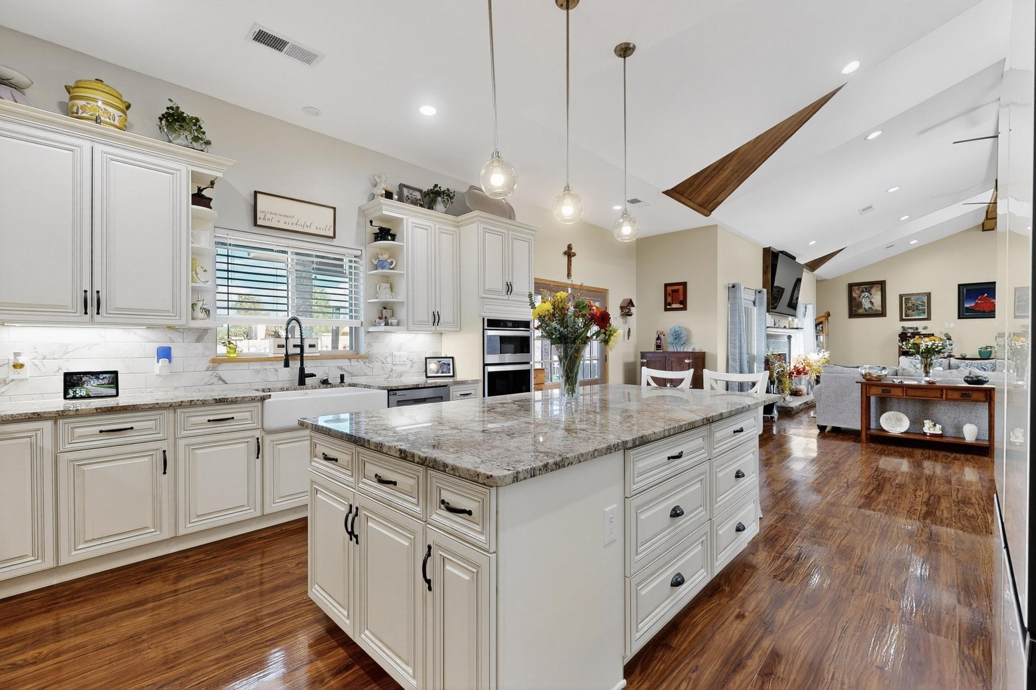 PRICE REDUCED! Nestled in the private, gated community of Valle Serena, this meticulously designed single-level home offers the perfect balance of comfort, luxury, and practicality. Built in 2022, the residence spans 3 bedrooms (two with ensuite baths) and includes an additional full bath and half bath for your guests' convenience. The bright, open-concept interior is both inviting and functional. The living area features soaring ceilings and a cozy wood-burning fireplace, ideal for enjoying Santa Fe's crisp fall evenings and snowy winter nights. Transition effortlessly into the chef's kitchen, a culinary haven outfitted with premium appliances, custom cabinetry, a large island, and a generous butler's pantry for all your storage needs.Step outside to experience your own private oasis -- the fully fenced backyard is beautifully landscaped with fruit trees, a vibrant rose garden, and delicate aspen trees, creating a serene setting to relax or entertain. Whether soaking in the luxurious hot tub or enjoying alfresco dining on the extended patio, you'll be treated to breathtaking views of the enchanting Sangre de Cristo Mountains. This home is not only aesthetically stunning but is also rich with thoughtful amenities, including a pitched pro-panel roof (with a transferable warranty), security system (audio/visual), central refrigerated air conditioning, two storage sheds, and RV parking with hook-ups for added convenience. A spacious 3-car garage, complete with extra storage and workspace, rounds out this home's exceptional offerings. Located just minutes from Santa Fe's world-renowned art galleries, fine dining, and unparalleled outdoor recreation, this residence offers a unique opportunity to embrace privacy, modern luxury, and unbeatable convenience. Don't miss the chance to make this exquisite Southwest retreat your own--schedule your showing today!