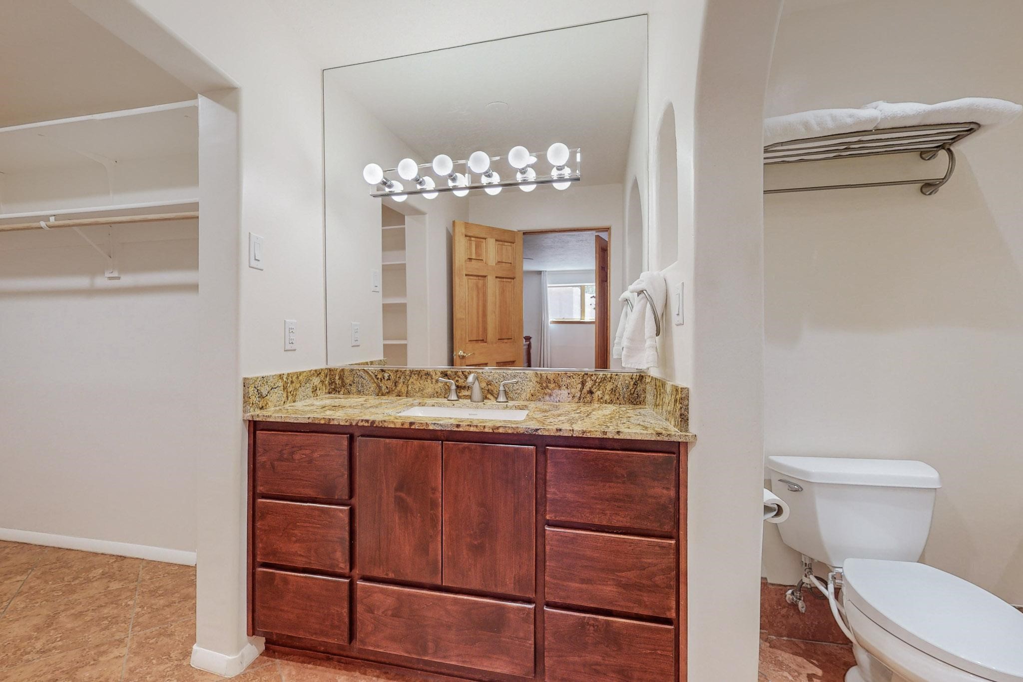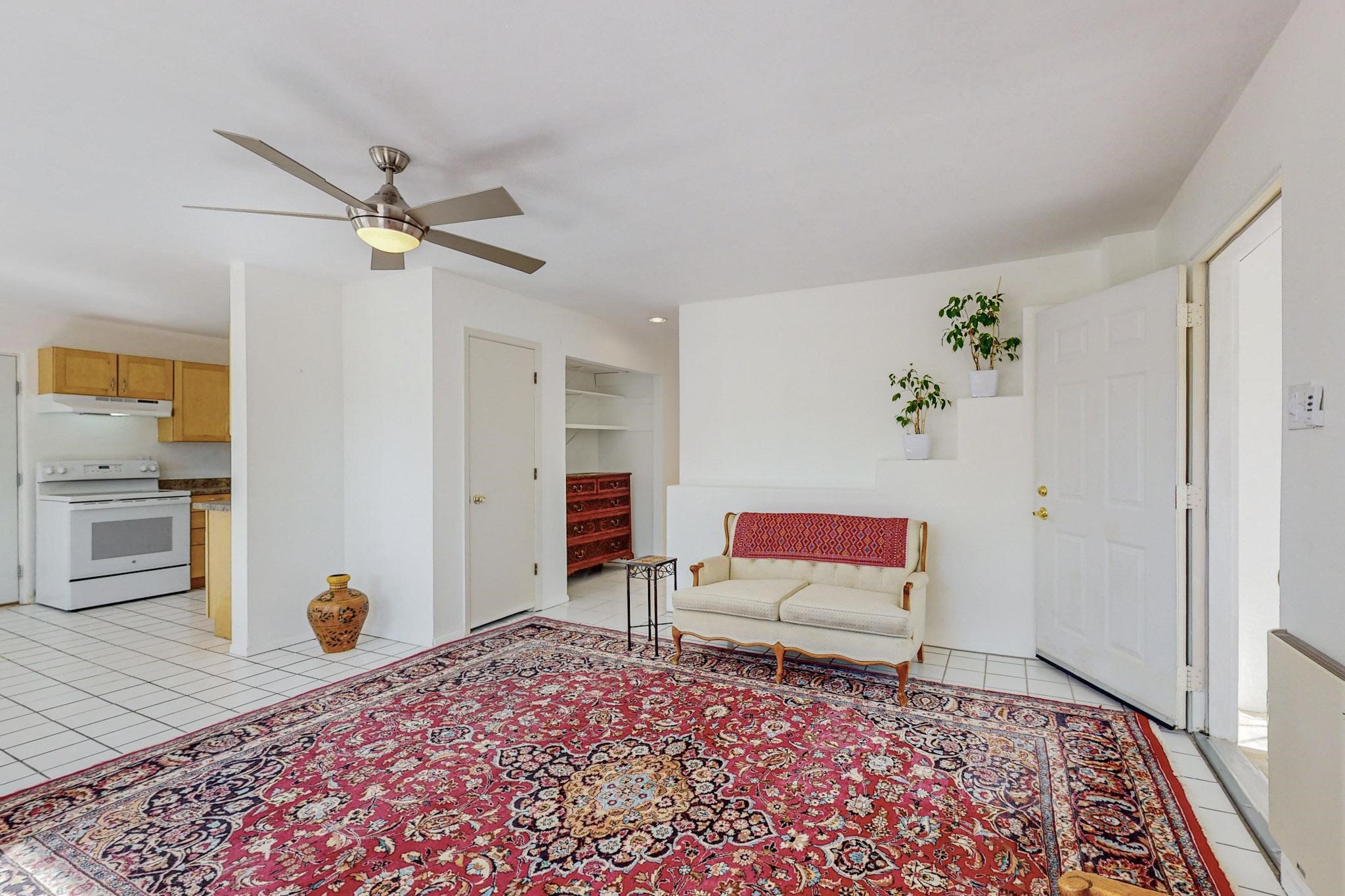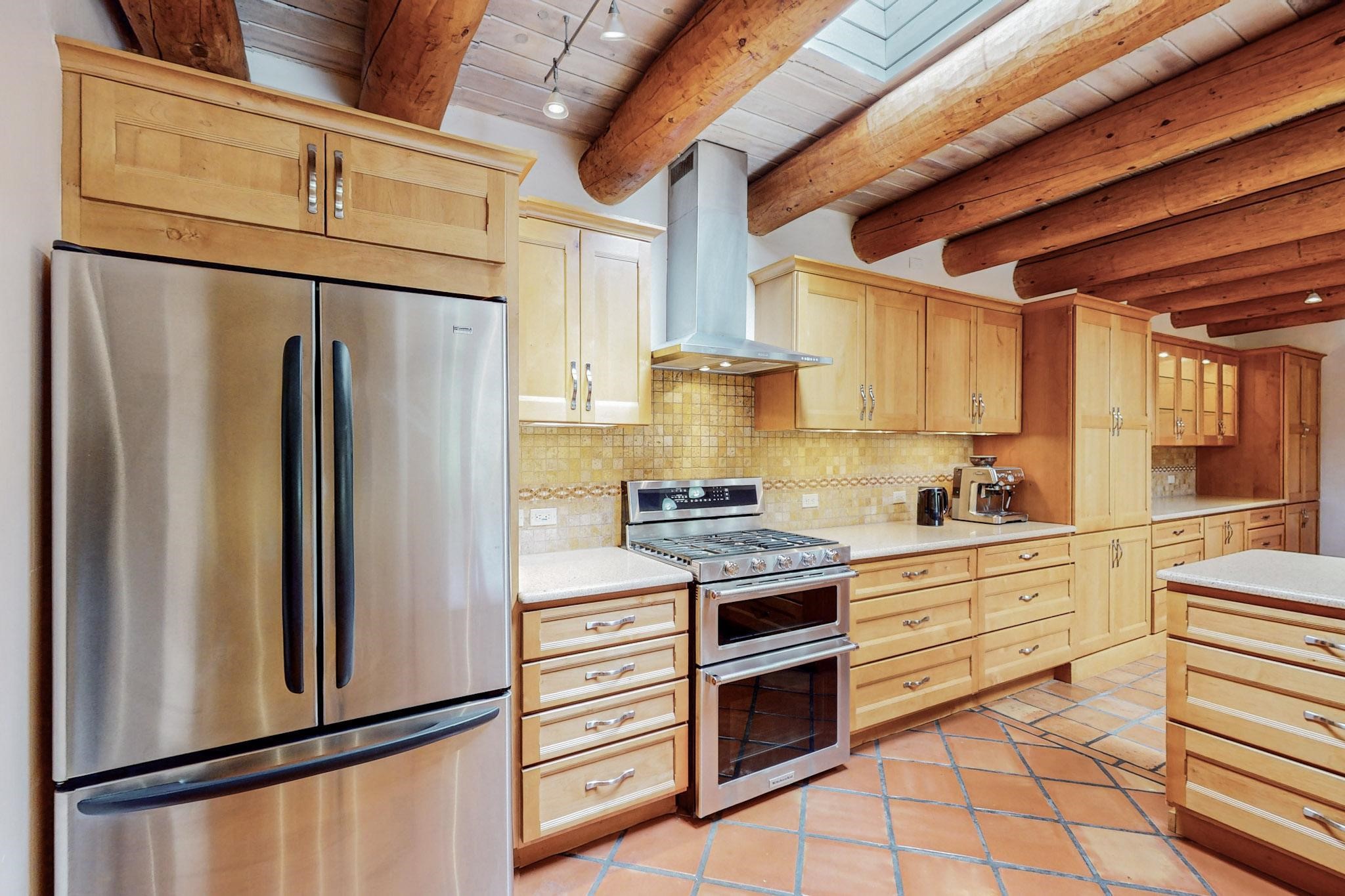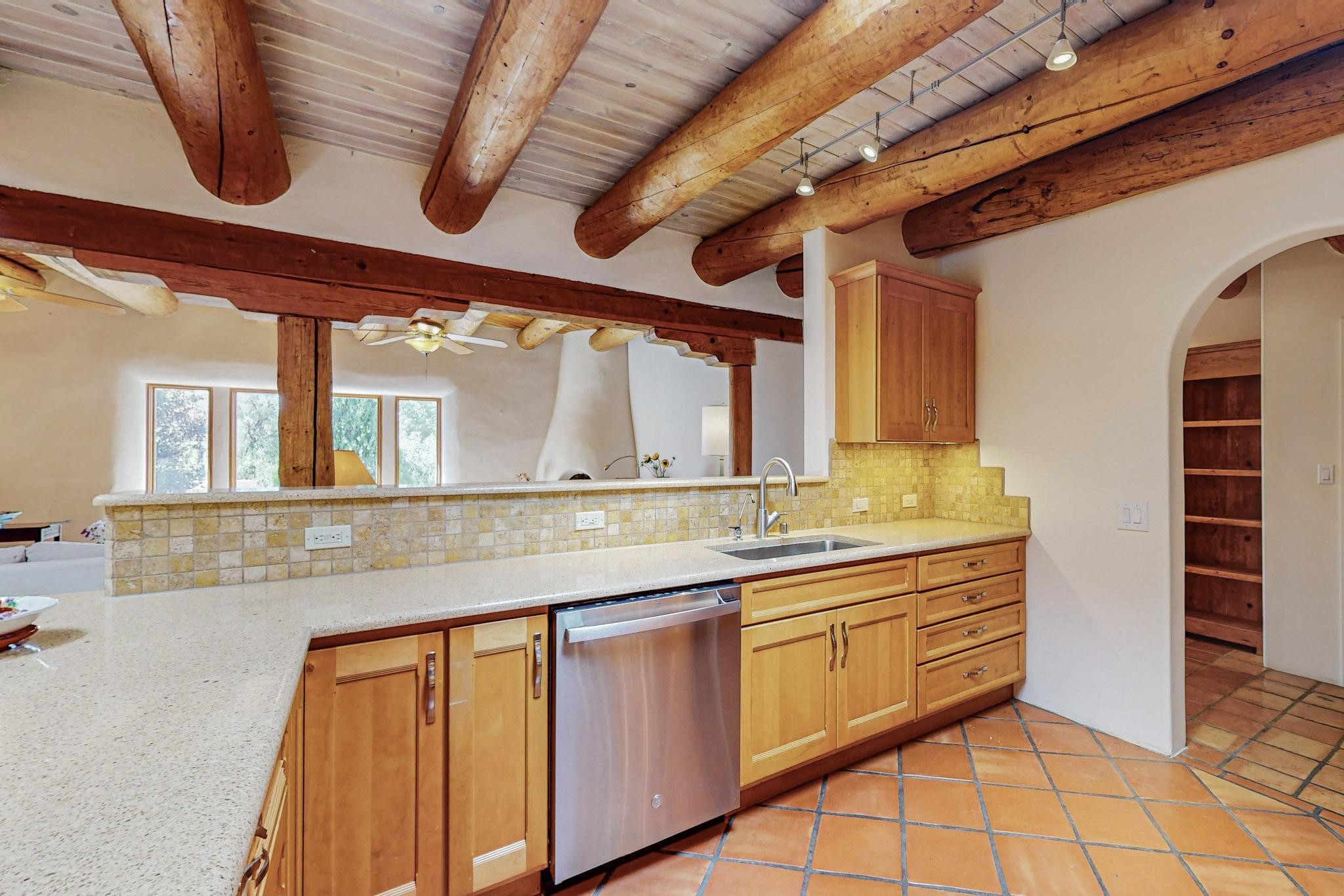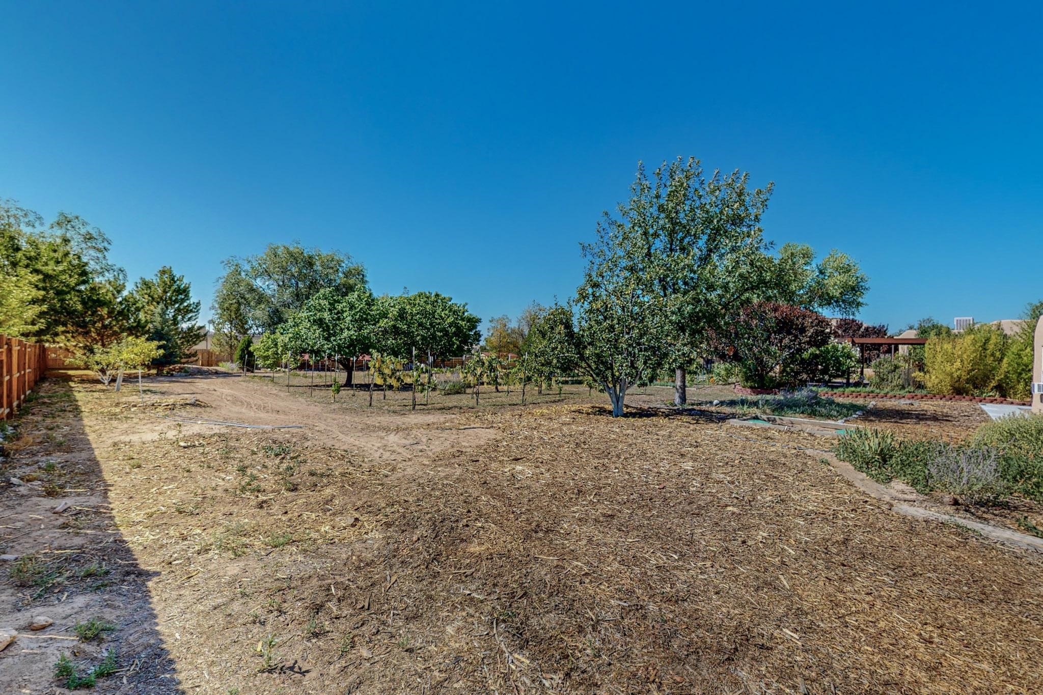 A rare offering in Northern Santa Fe County, this solar-powered berm home and guest house sit on two acres beside protected public land, where expansive views, established gardens, and access to nearby trails define the setting. Located approximately 30 minutes from Santa Fe and Los Alamos, the property blends Southwest architectural character with a thoughtfully cultivated landscape.Gardens lovingly tended for more than two decades surround the home with fruit trees, vegetables, flowering plants, and open skies. The property includes approximately 5,300 square feet of living space with a main residence and a separate guest house, offering a total of 7 bedrooms and 4 bathrooms. The guest house includes 3 bedrooms and 1 bath and may provide flexible use for guests, multi-generations, or as a rental.The south-facing main residence features an open-concept great room and kitchen with custom handmade cabinetry, skylights, traditional vigas, Saltillo tile flooring, a large walk-in pantry with full-size refrigerator, and a newer dishwasher. A spacious 700-square-foot studio/sunroom with high ceilings and 7-foot south-facing windows overlooks a courtyard garden.The main level includes one bedroom and one full bath, while the lower level offers three bedrooms, two bathrooms, and additional storage. The primary bath features a Jacuzzi tub.The main home was constructed as a solar-powered berm home which provides natural energy efficiency and stable interior temperatures throughout the year. Additional features include evaporative cooling, wall-mounted panel heaters, a Scandinavian wood stove, and a gas-powered Adobelite kiva fireplace.Outdoor spaces include expansive views, a rooftop seating area, and an established orchard and gardens supported by a 10,000-gallon rainwater catchment cistern with automated drip irrigation. A new septic tank and leach field were installed in August 2024. Zoned Traditional Community: potential for multiple dwellings or retreat center.