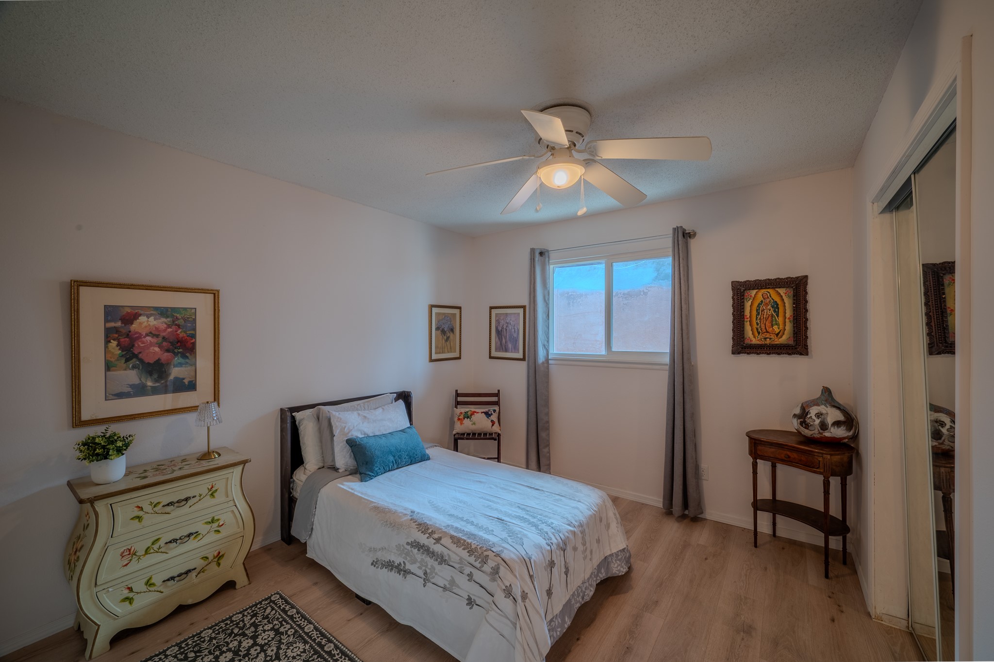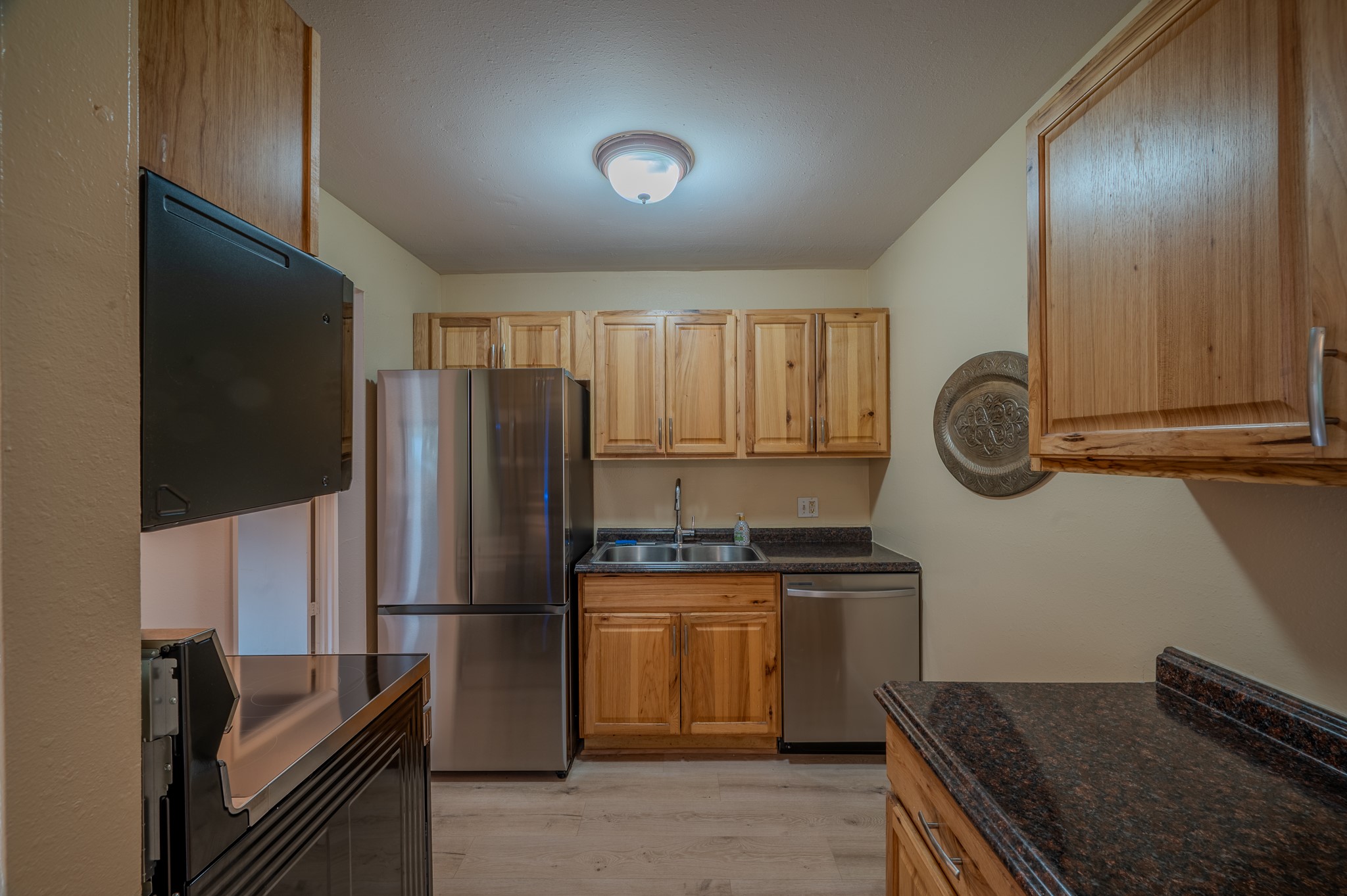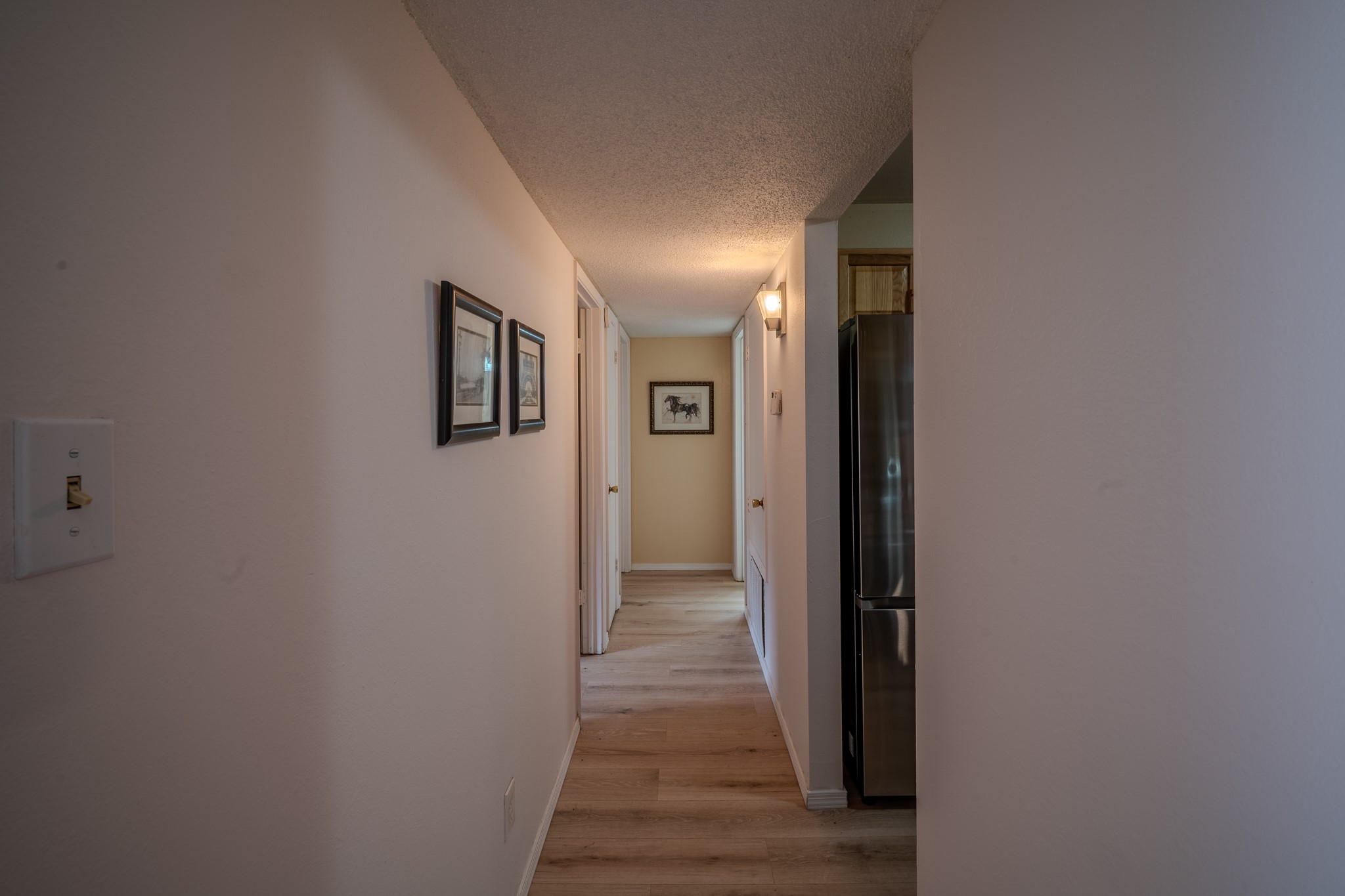 Affordability in Santa Fe? YES. Updated end unit with a view of trees on the second floor. Really nice new kitchen, bath and flooring. One of the bedrooms has a great walk-in closet. The community is gated and has been updated over the years. Plenty of parking, central location in town. Very nice and affordable to live and GREAT investment property.