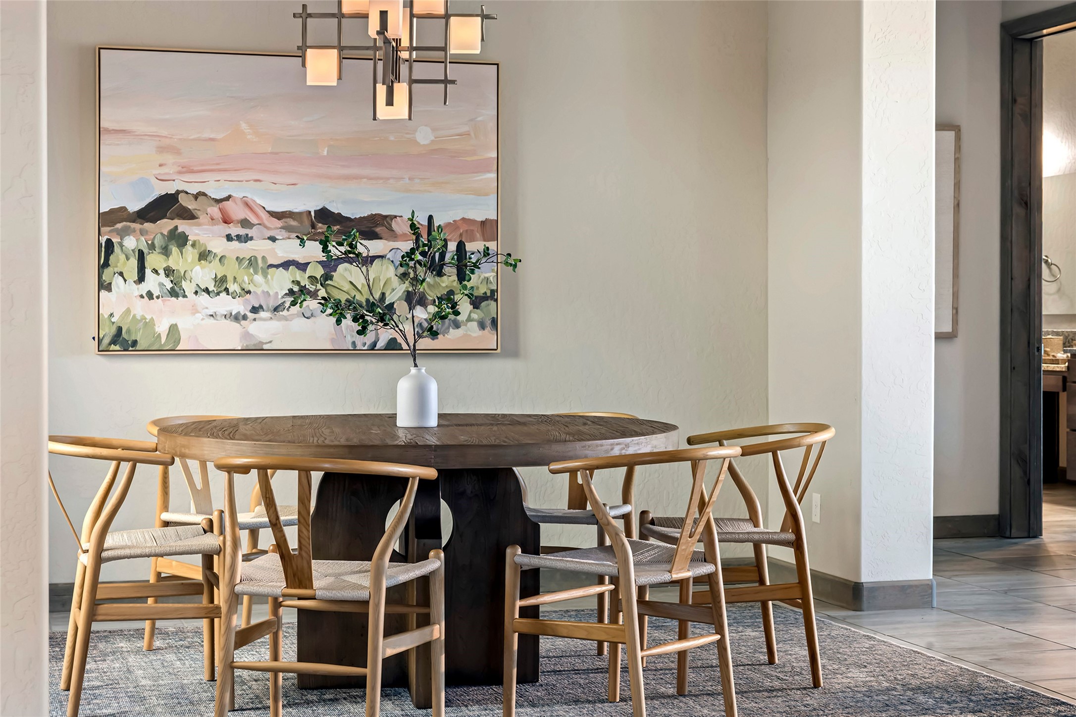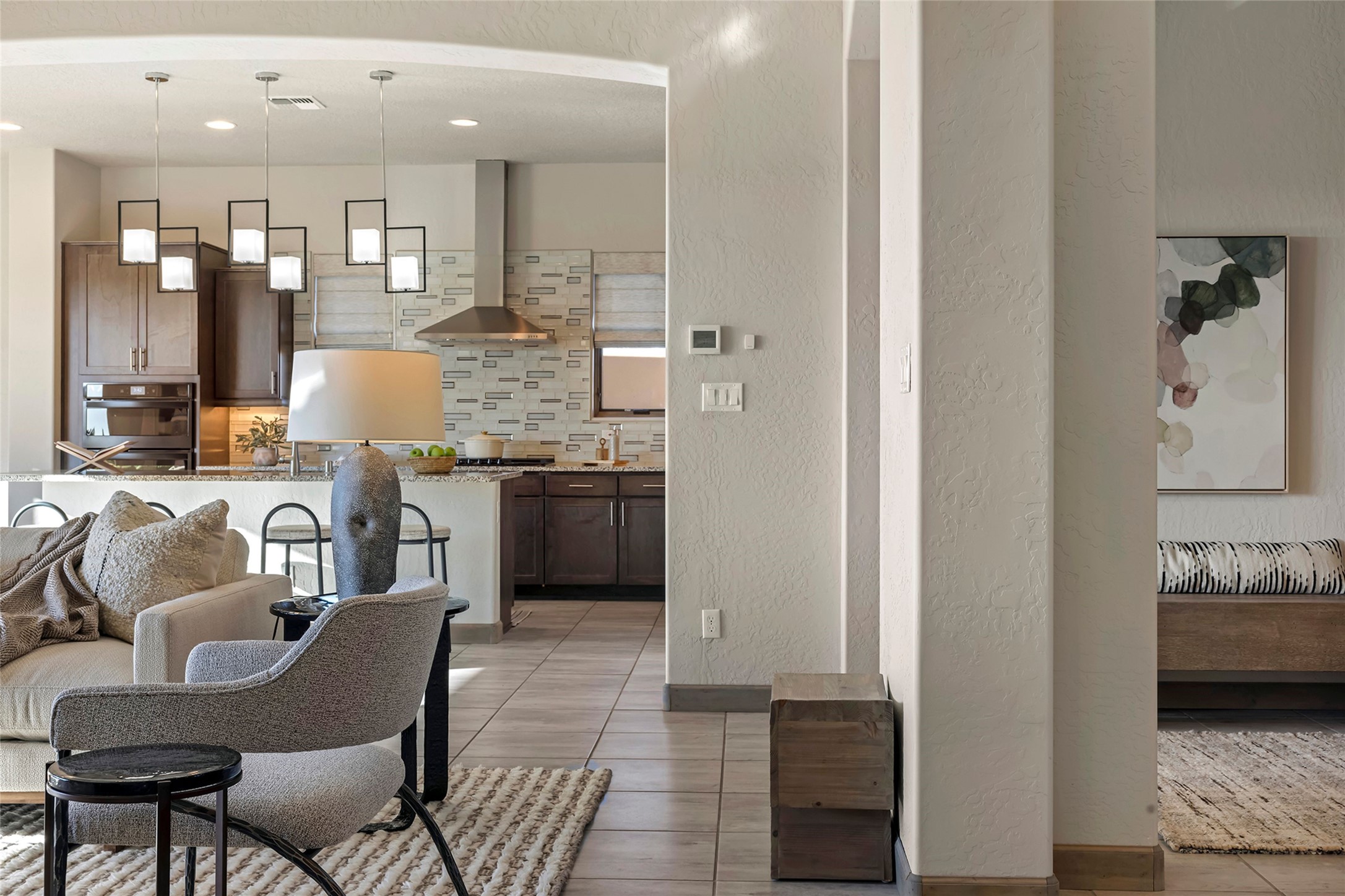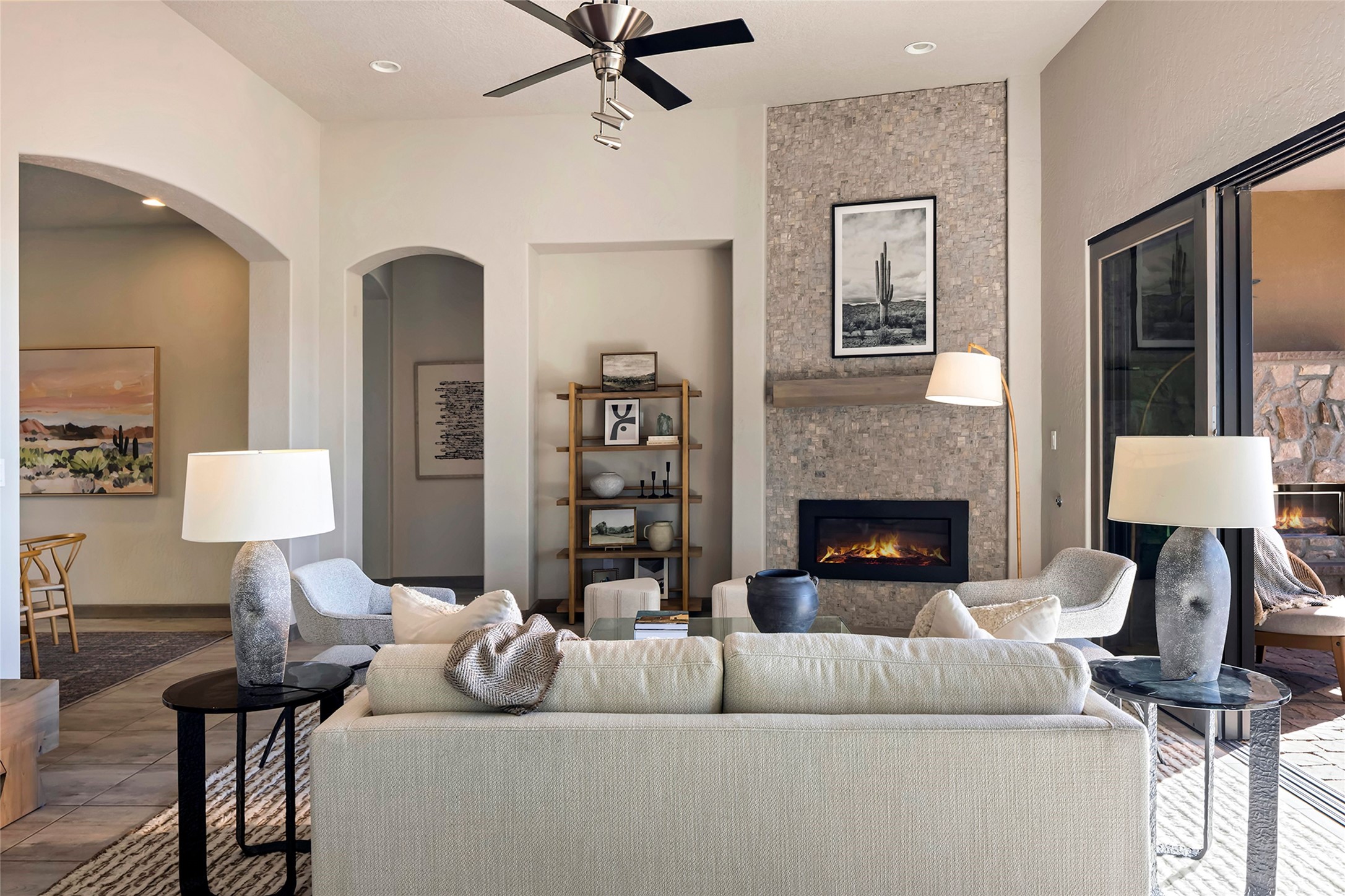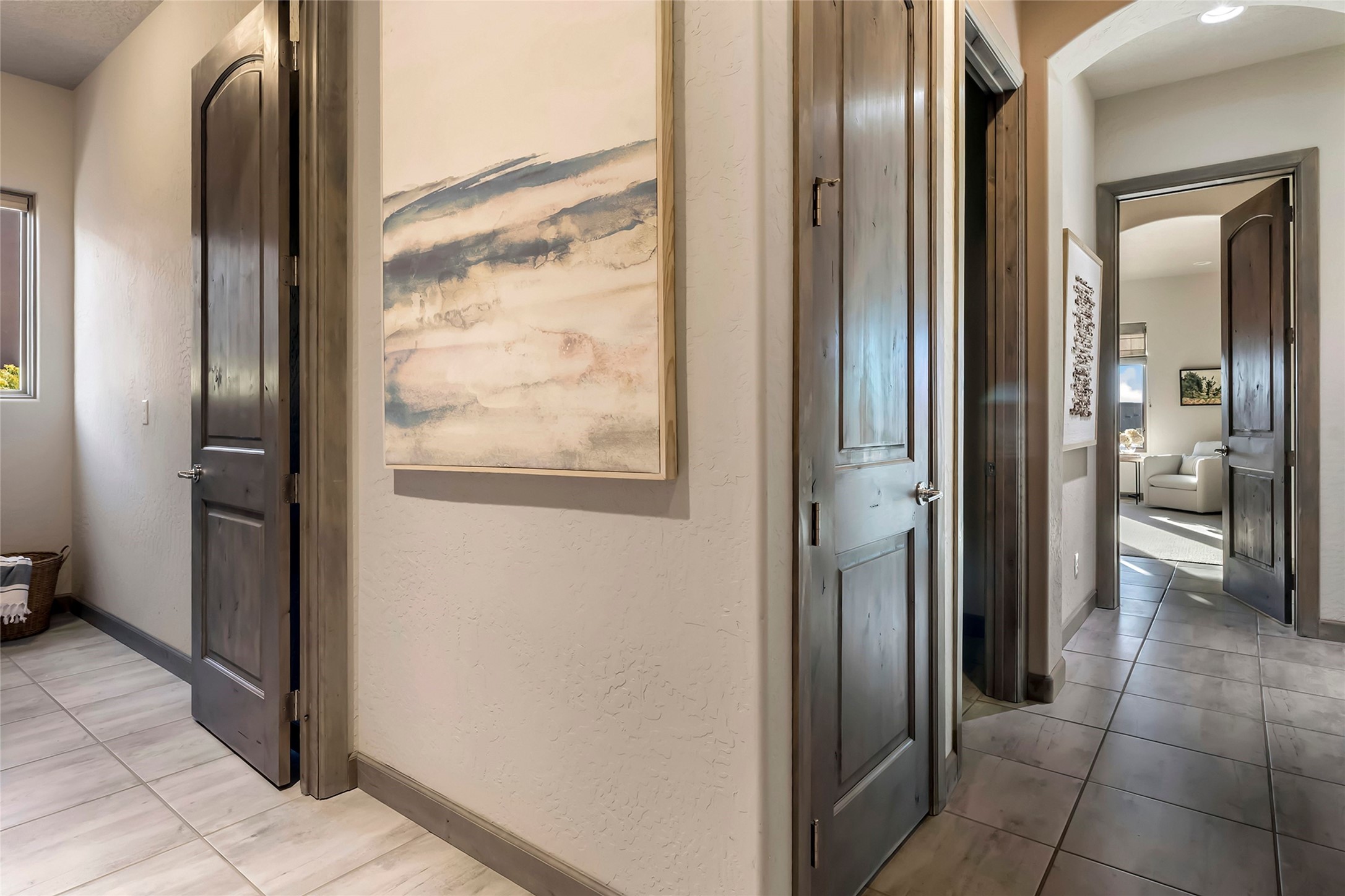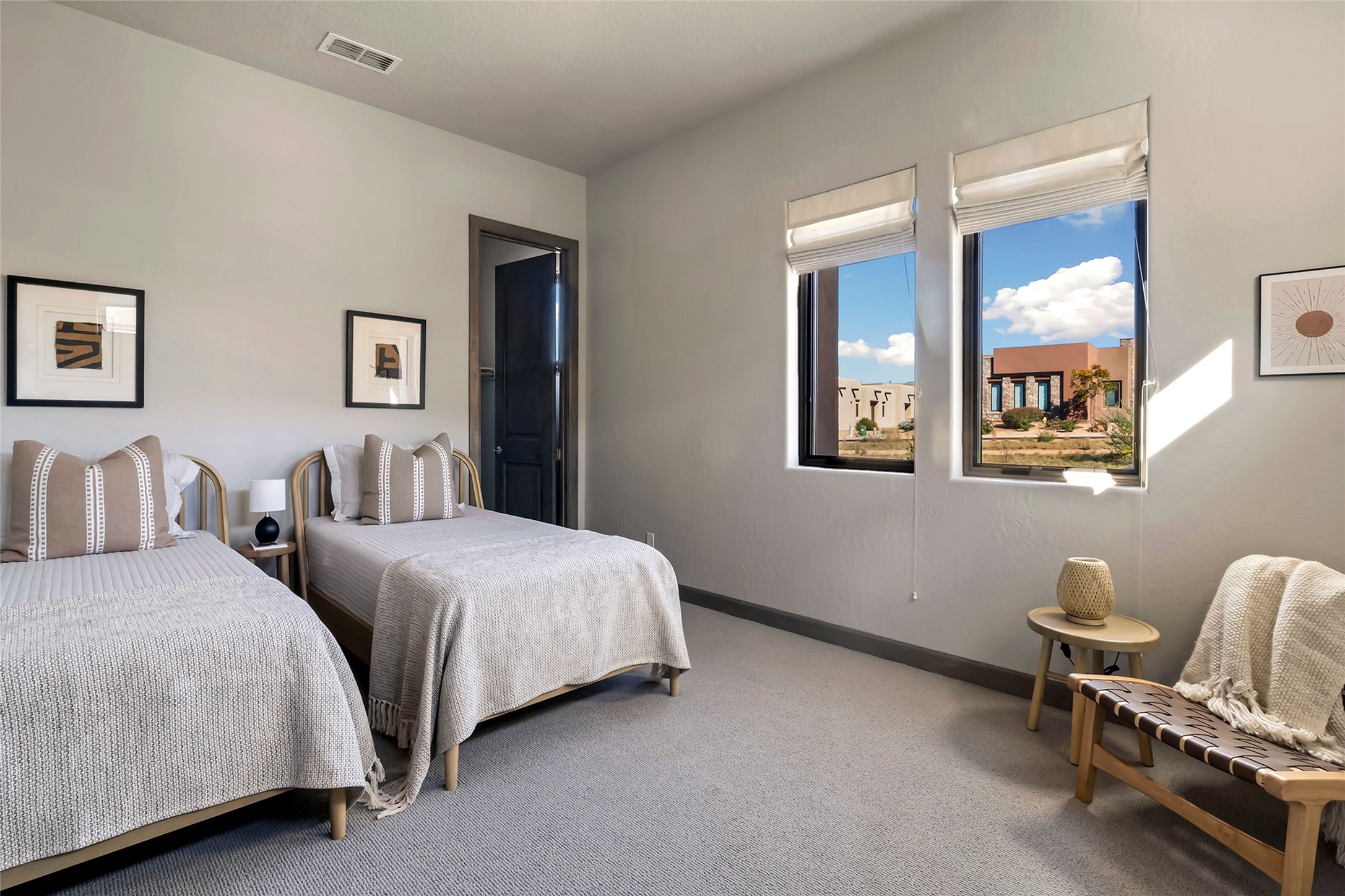 Live the Ultimate Las Campanas Lifestyle. Beautifully sited on a premier elevated corner lot, this exceptional 4-bedroom residence captures breathtaking Jemez Mountain and dramatic sunset views. Located within walking distance of The Club at Las Campanas, this home perfectly blends sophisticated modern design with the timeless essence of Santa Fe. The thoughtfully designed floor plan impresses from the moment you enter, featuring a spectacular living room ideal for both relaxed living and grand entertaining. Western views frame the space, while a modern gas fireplace with stone surround and mantle, and retractable glass doors, create a seamless indoor-outdoor living experience. The chef's island kitchen delights with a generous natural stone breakfast bar, modern appliances, and a large walk-in pantry. This culinary haven flows effortlessly into both a gracious formal dining room and a casual dining area--each with mountain views, designer lighting, and portal access for al fresco dining. The private, luxurious primary suite offers Jemez Mountain views, a cozy sitting area, and a spa-inspired bath with a spacious walk-in shower, dual vanities, and an expansive walk-in closet. Separate from the main living areas, the light-filled office (or 4th bedroom) with glass French doors provides the perfect work-from-home retreat. Two additional guest suites, each with ensuite baths, share a comfortable secondary living area or media room. The outdoor living experience is elevated with vast entertaining areas, a covered portal, an outdoor fireplace, and tranquil landscaping that enhances the home's serene ambiance. With its quality finishes, soft natural light, welcoming gated front entrance courtyard, newly installed carpet and a neutral palette throughout, this special Las Campanas home defines refined living and represents an exceptional value--move-in ready and not to be missed. The owner's Equity Golf Membership to The Club at Las Campanas is available for purchase.