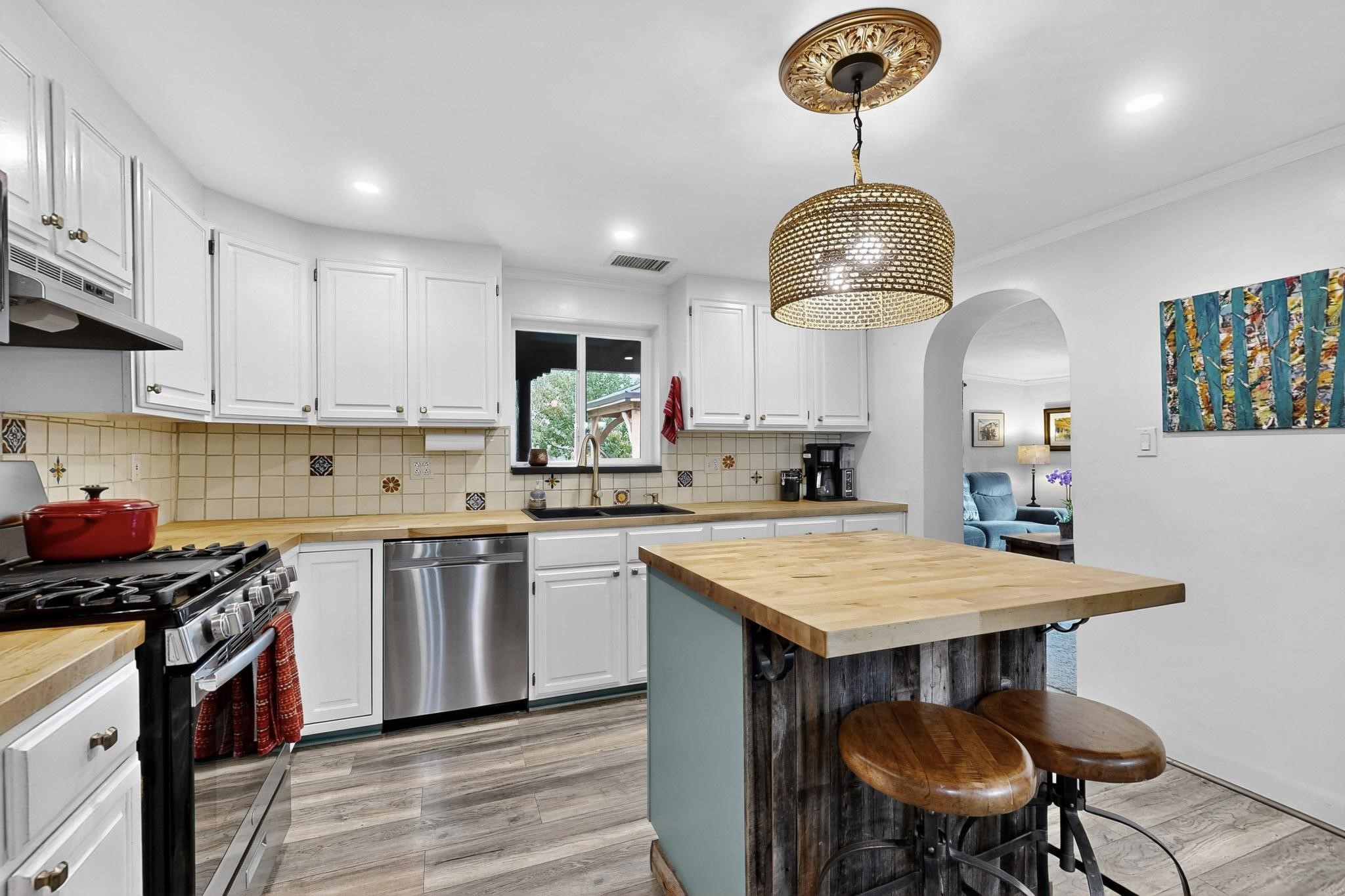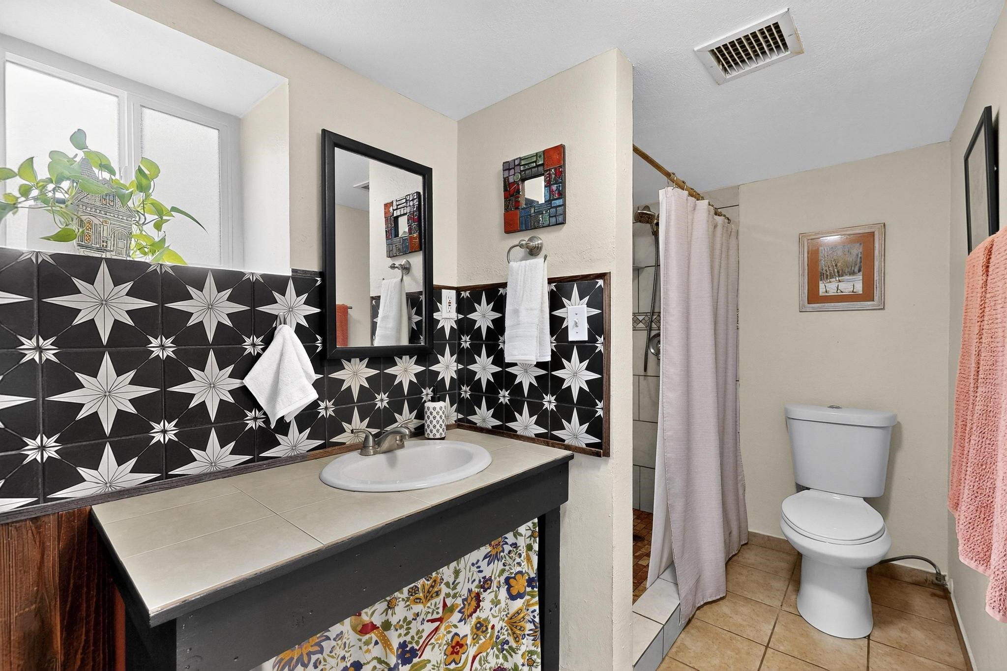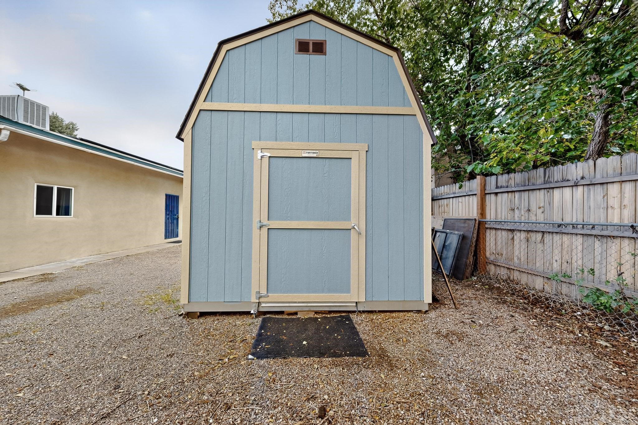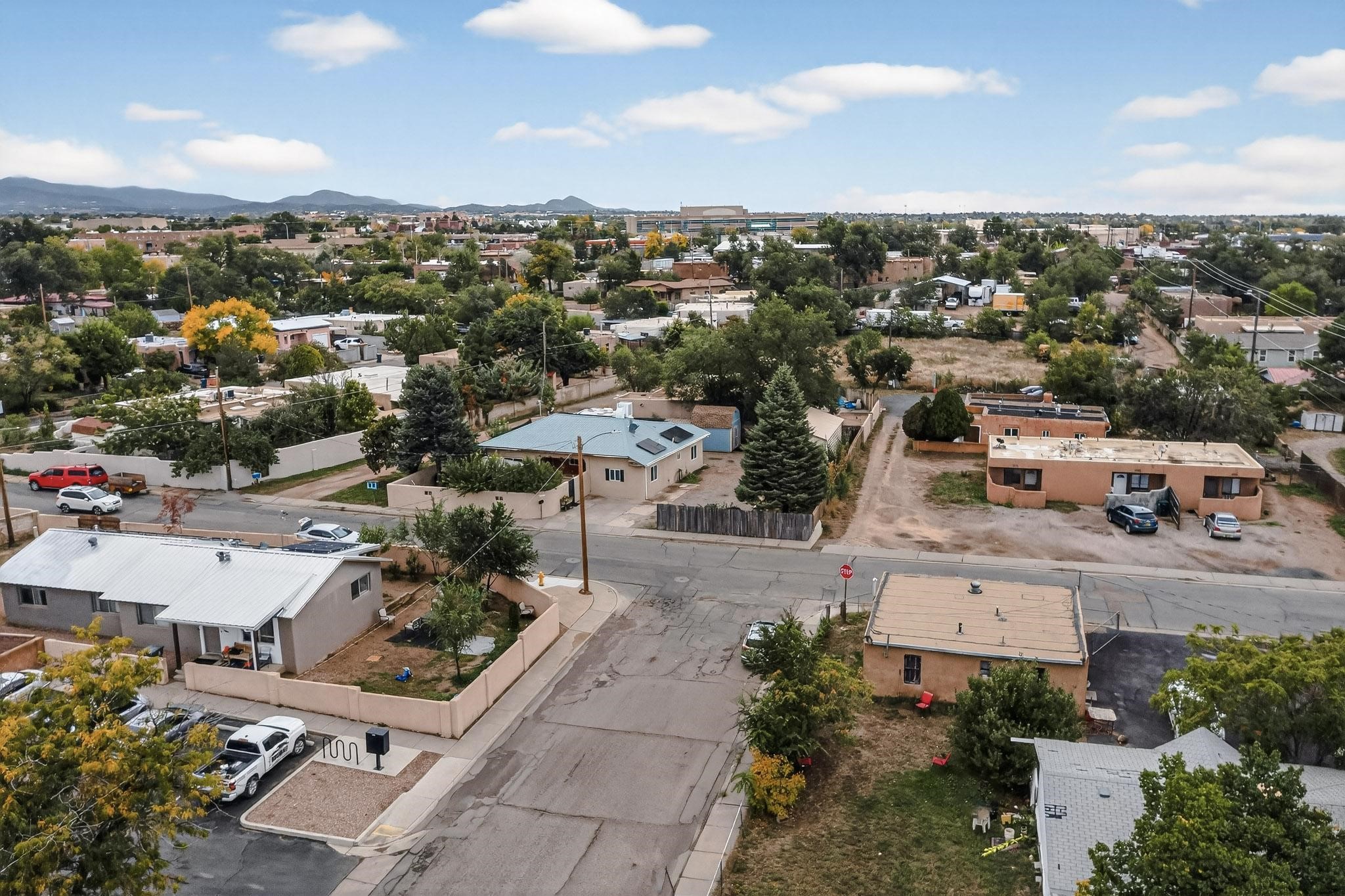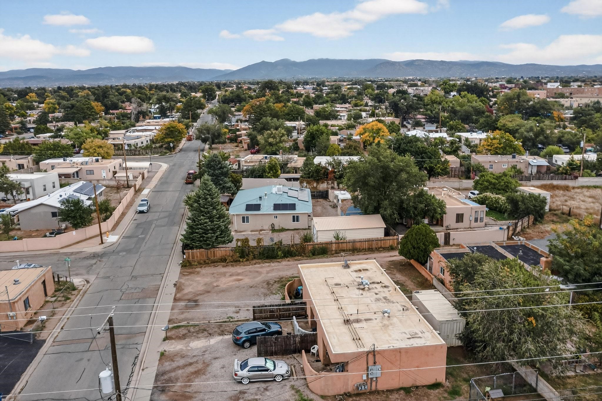 Enjoy country living in this well cared for .21 acre property in the heart of Santa Fe! The home's entry courtyard, with its new ramada, sets the tone for relaxed outdoor living. Inside, the adobe portion of the home, built in 1947, exudeswarmth and includes the spacious updated Kitchen, Living Room, Primary Bedroom; the newer stick-built wing features 2 substantial guest bedrooms, the primary bathroom and a remodeled bathroom. Interior improvements include newwindows, new paint, newer water heater, furnace and appliances. Owners have added a fabulous detached 18' X 30' garage, and will convey several sheds, a camping trailer, a green house and a hot tub, if wanted. Also included is fully paid for solar panels that were added in 2024. Lush and charming gardens with fruits, veggies and herbs plus mature trees on irrigation further enhance the property's appeal. A large basement is accessible from the side of the home for additional storage. Come see this sweet home at your first opportunity!