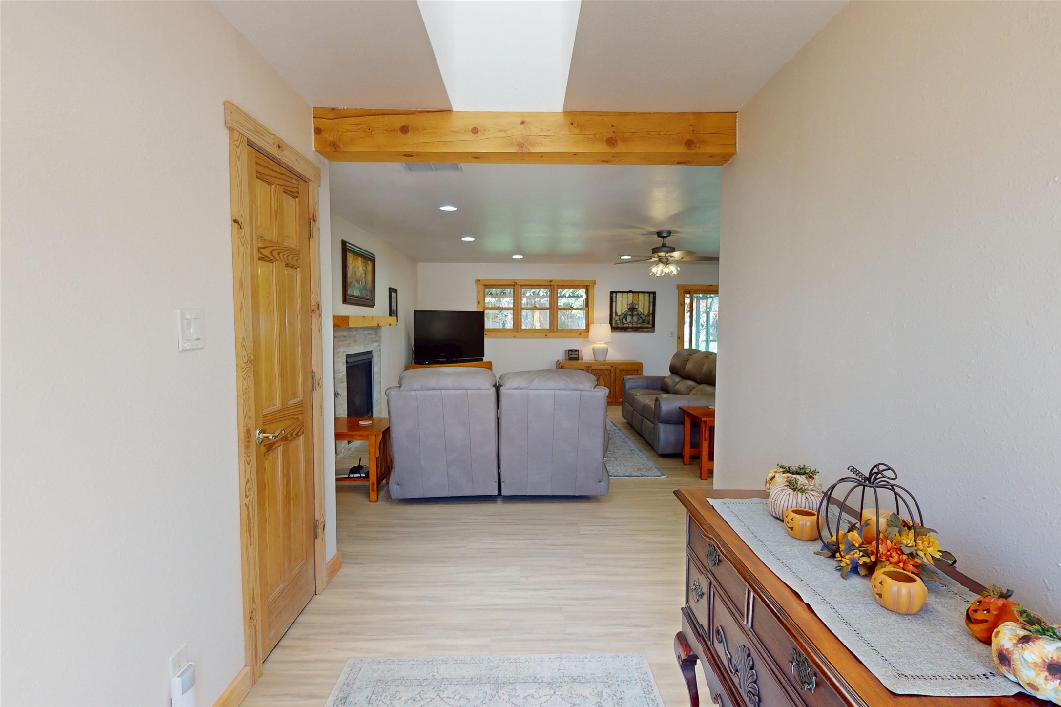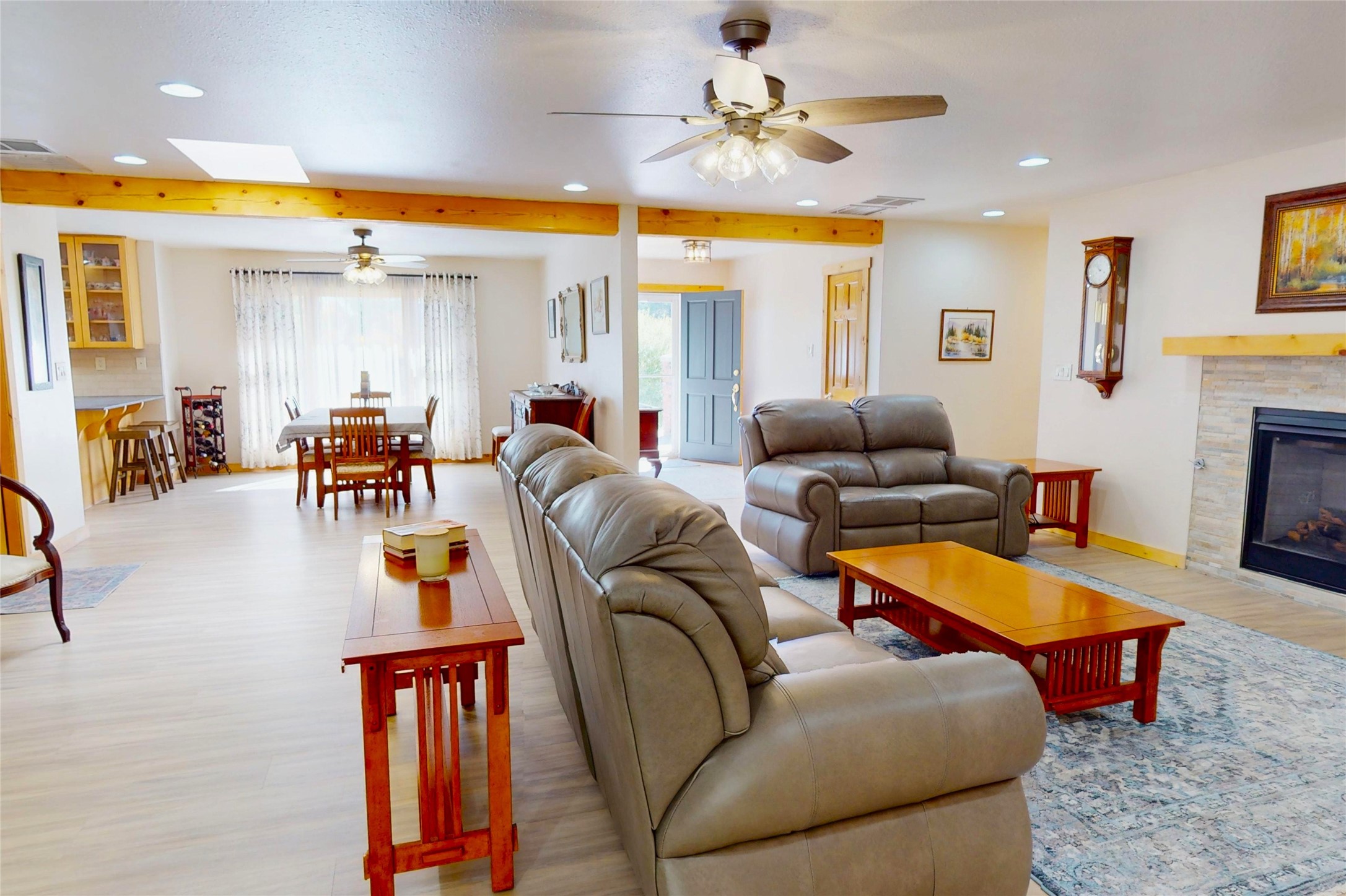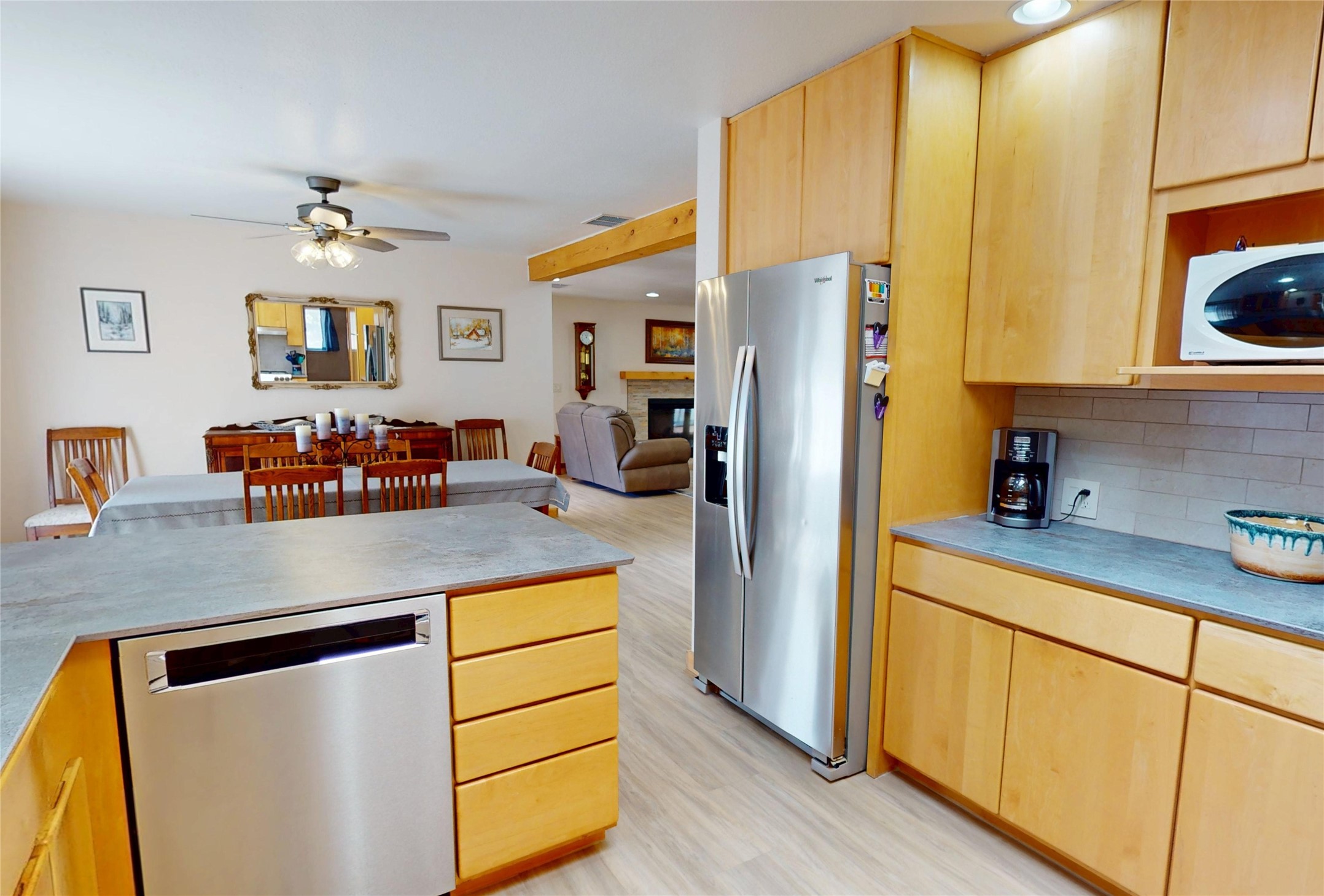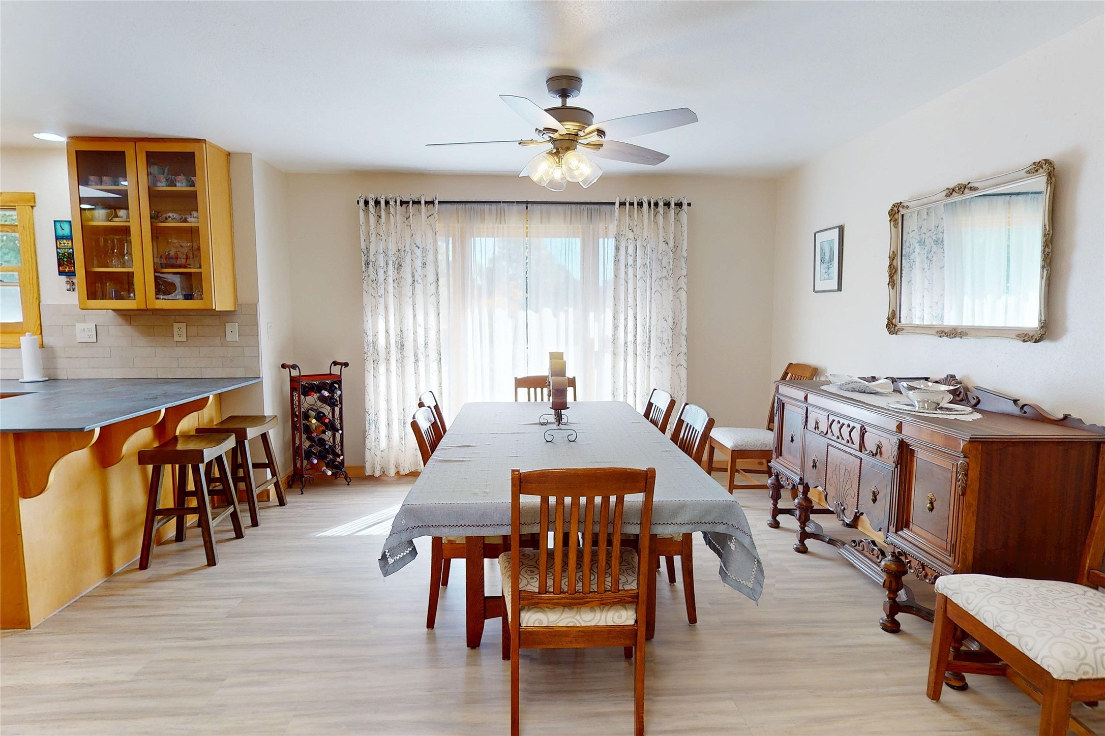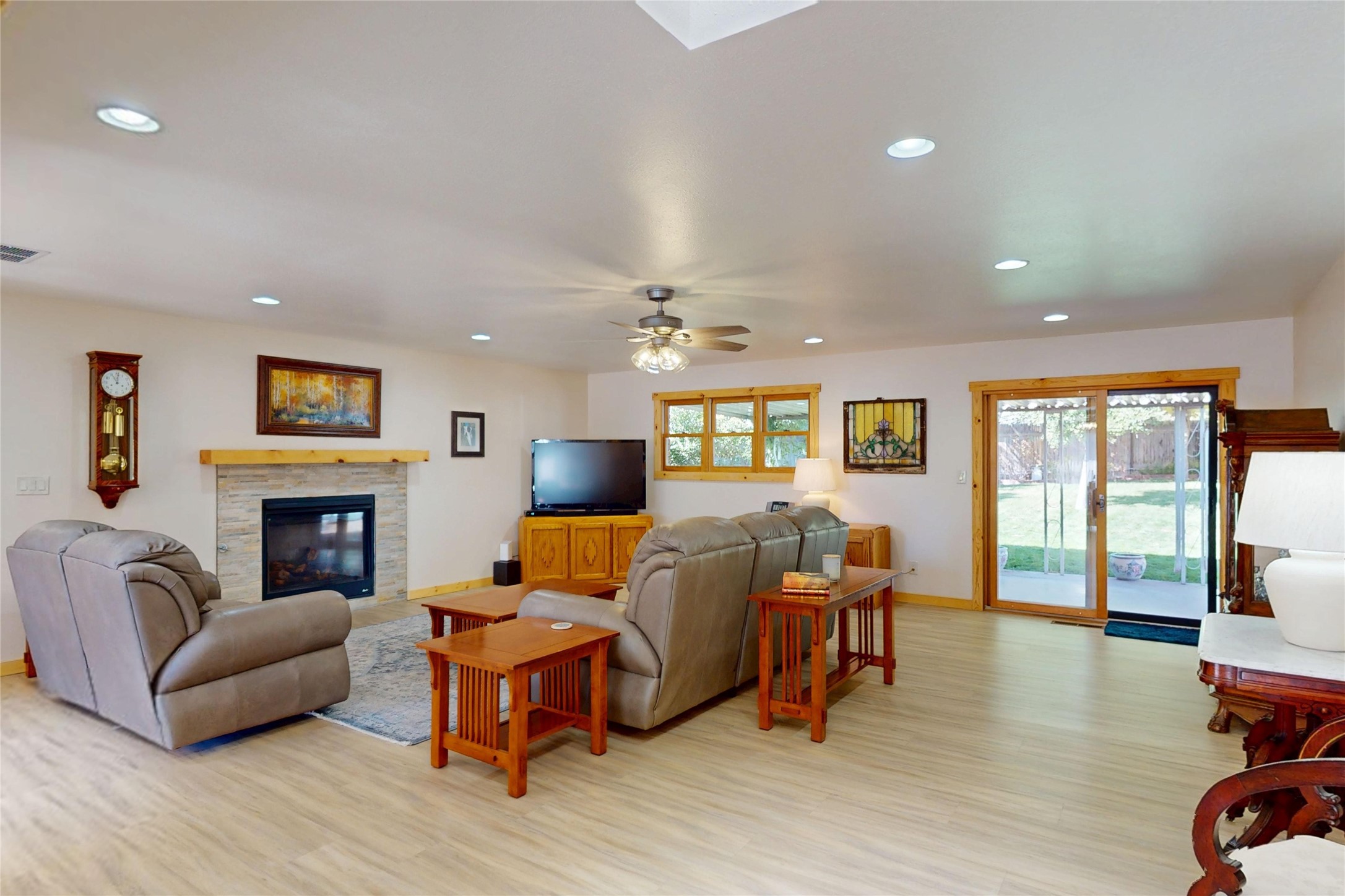 Beautifully Updated White Rock Home! This stylishly updated 3-bedroom, 2-bath home offers comfortable, modern living with a single-story, open floor plan that seamlessly connects the living, dining, and kitchen areas--perfect for both everyday living and entertaining. The kitchen shines with sleek cabinetry, contemporary countertops, stainless steel appliances, and a breakfast bar. The spacious living area features recessed lighting and wood-look floors, creating a warm, inviting atmosphere throughout. The kitchen and living areas flow seamlessly to the dining room with a large picture window that fills these areas with natural light and a patio door for access to the back yard. The private primary suite serves as a relaxing retreat, complete with plush carpet, and an updated en-suite bath. the primary suite has access to a private patio through through a patio door. Two additional bedrooms offer flexibility for guests, family, or a home office, while the second full bath continues the home's fresh, modern style. Additional highlights include a large laundry area with access to the attached heated two-car garage. Outdoors, enjoy the fully fenced backyard--perfect for gardening, play, or quiet relaxation--and the easy-care front landscaping that provides a welcoming first impression with the beautiful entry to the home. With its thoughtful updates, spacious layout, and desirable location, this home is the perfect opportunity to experience the best of White Rock living.