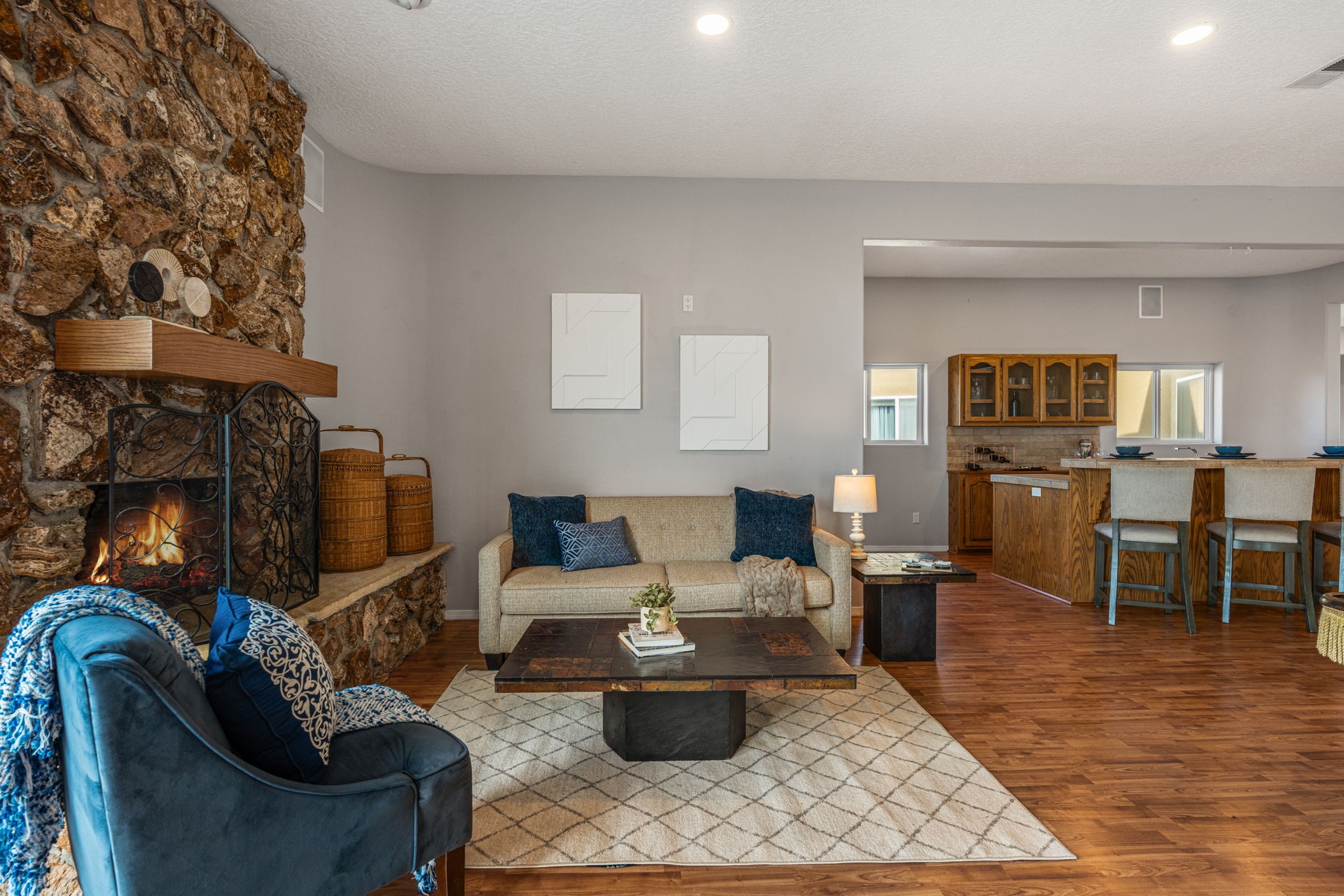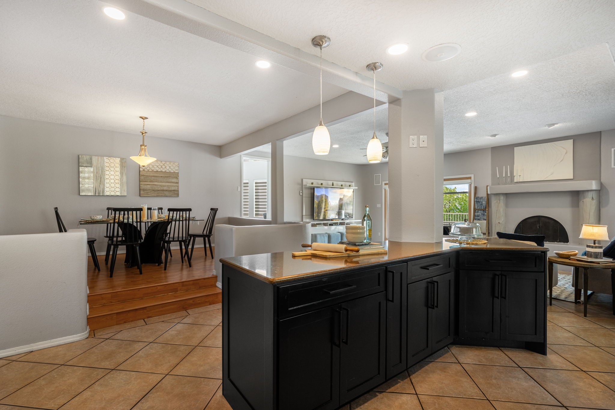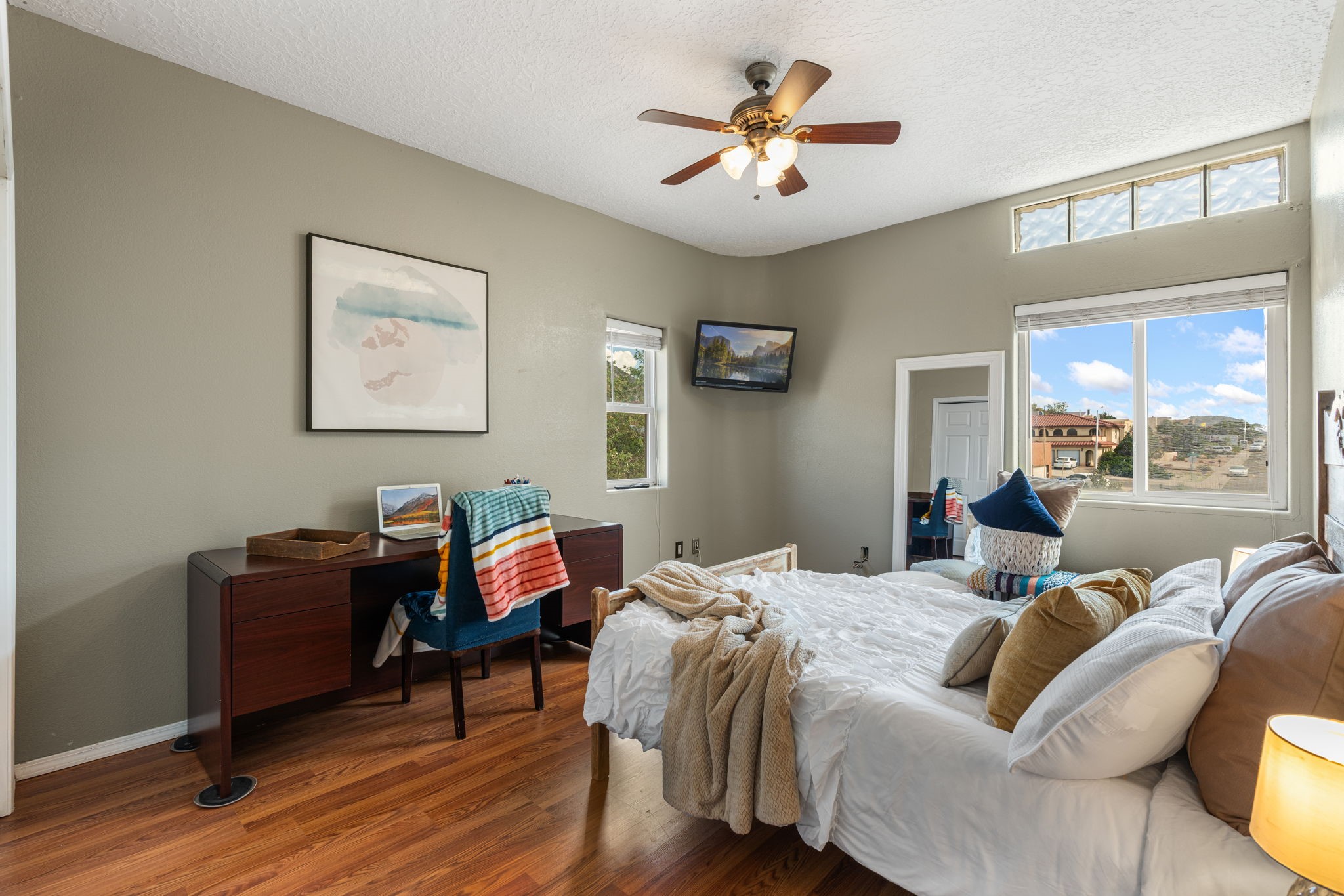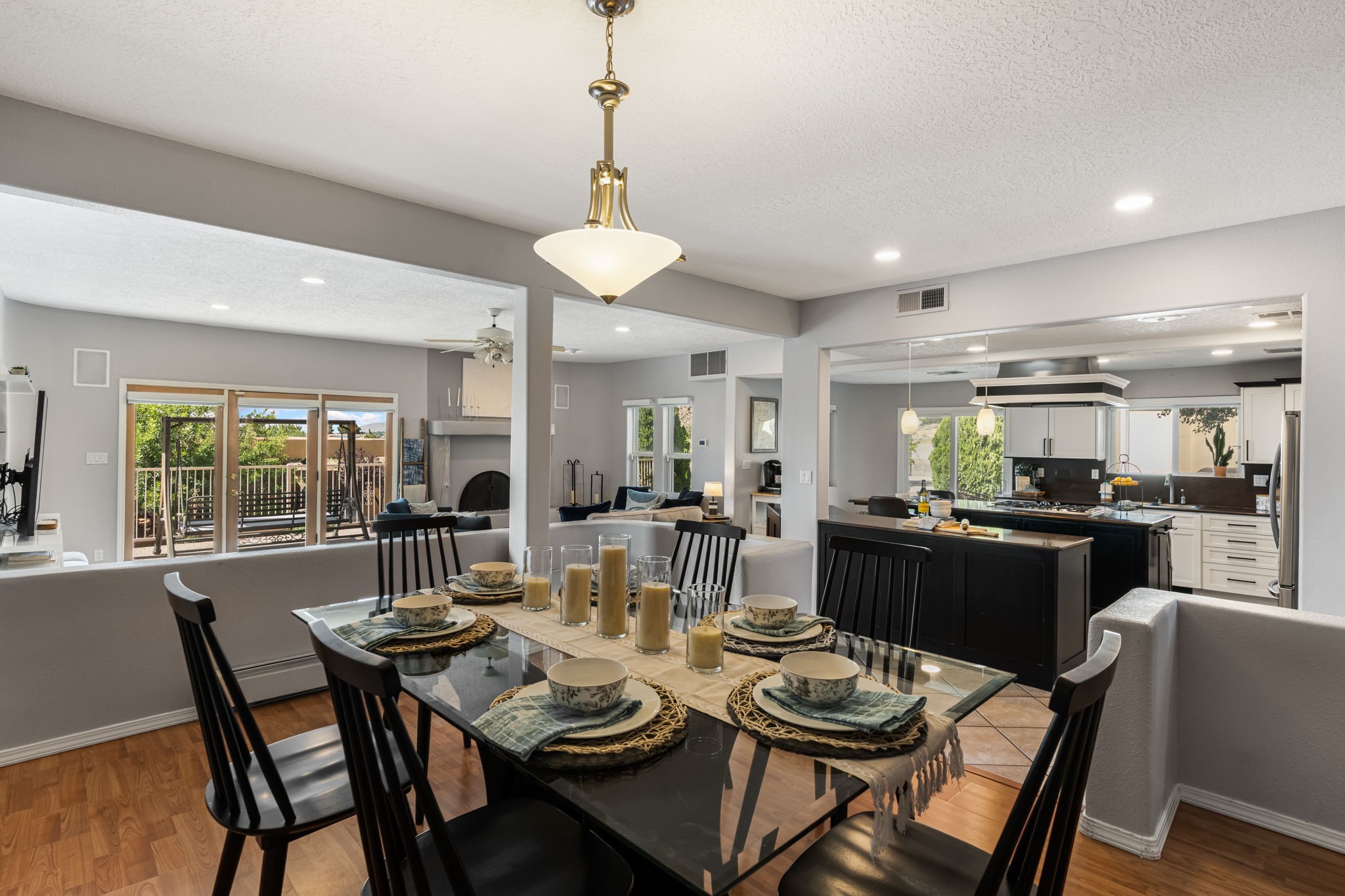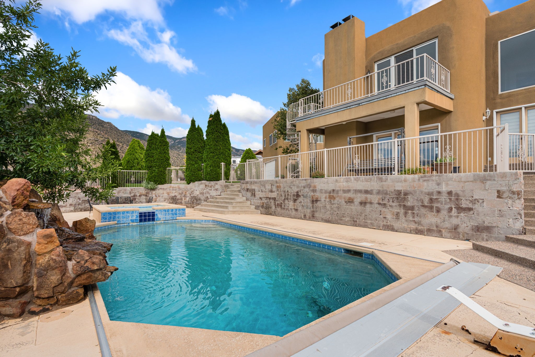 This elegant 1809 Archuleta Dr NE. This expansive 6-bedroom, 4-bath home offers an updated kitchen that blends style and functionality, two primary suites, a spacious upstairs living/game room with a bar, and an inviting atrium. Enjoy a cinematic experience in the private movie theater room, or take advantage of the tandem pull-through garage, which leads to a beautifully landscaped backyard. Nestled next to Embudo Canyon, the property ensures privacy and tranquility. The outdoor space includes an inground pool, outdoor kitchen, fruit trees (peach, cherry, apricot), and grapevines--perfect for both relaxation and entertainment.