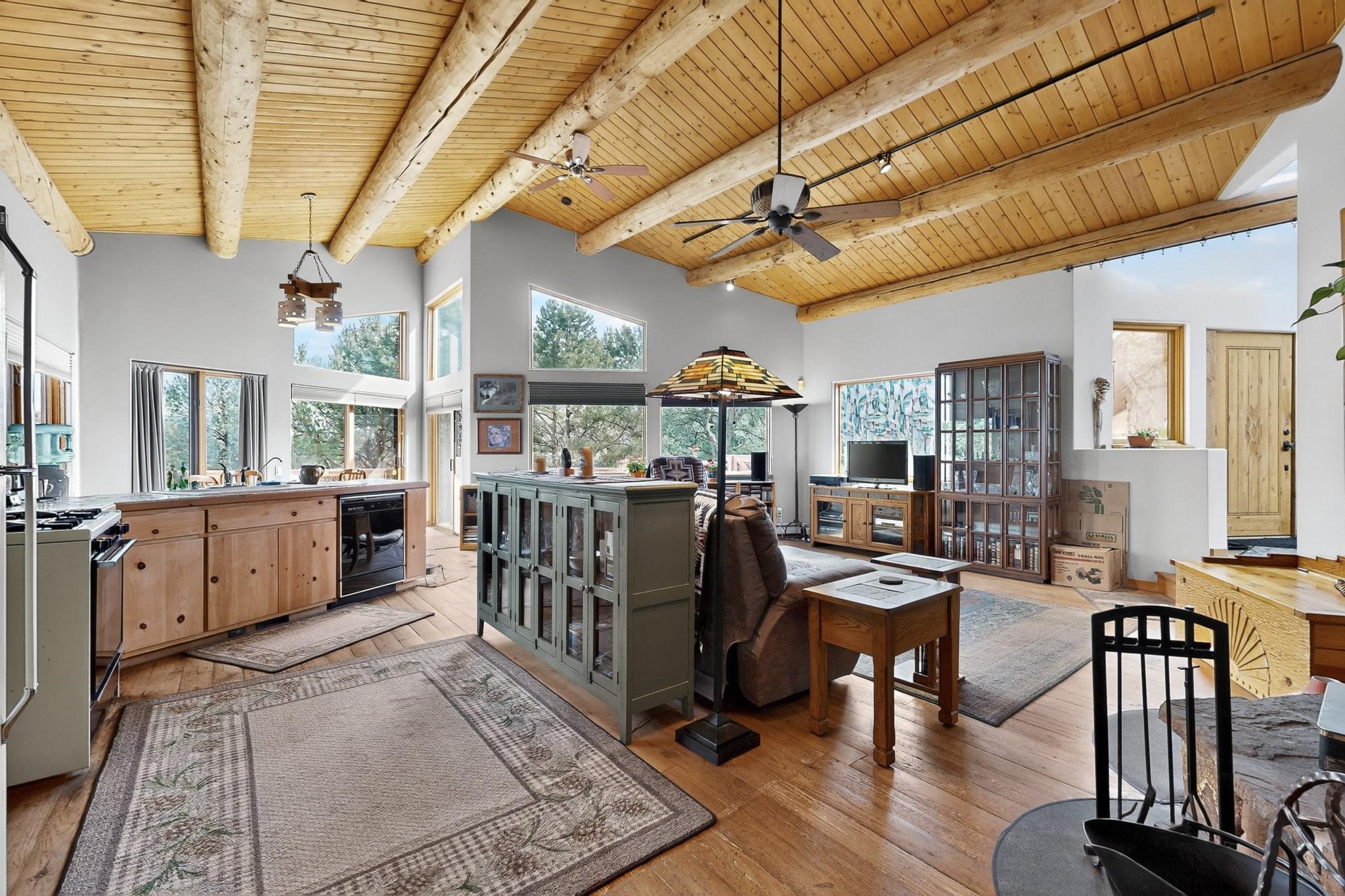 Escape to the beauty of Rowe, New Mexico, with this charming 2-bedroom, 2-bathroom home set on 10 breathtaking acres. Surrounded by stunning mountain views, this property offers the perfect blend of tranquility, space, and Southwestern charm. Inside, you'll find bright, comfortable living spaces designed to take full advantage of the natural light and scenery. The open floor plan creates a warm and inviting atmosphere, ideal for relaxing or entertaining. Step outside to enjoy sweeping views of the surrounding mountains and wide-open skies. Perfect for morning coffee, evening sunsets, or peaceful stargazing. Whether you're looking for a private retreat, a full-time residence, or a place to enjoy the outdoors, this Rowe property delivers endless potential and unmatched serenity on 10 gorgeous acres. Elaborate rain water catchment system with a 6000 gallon capacity, filtered and plumbed to every part of the house. Know your pet is secure as there is a portion of the property securely fenced.