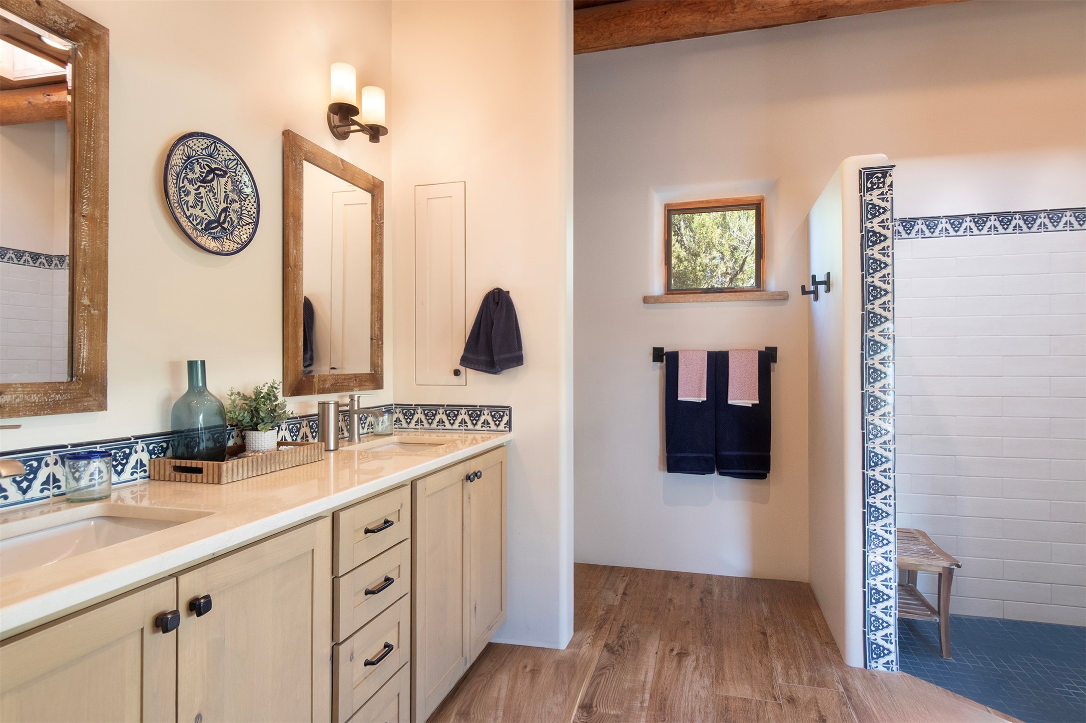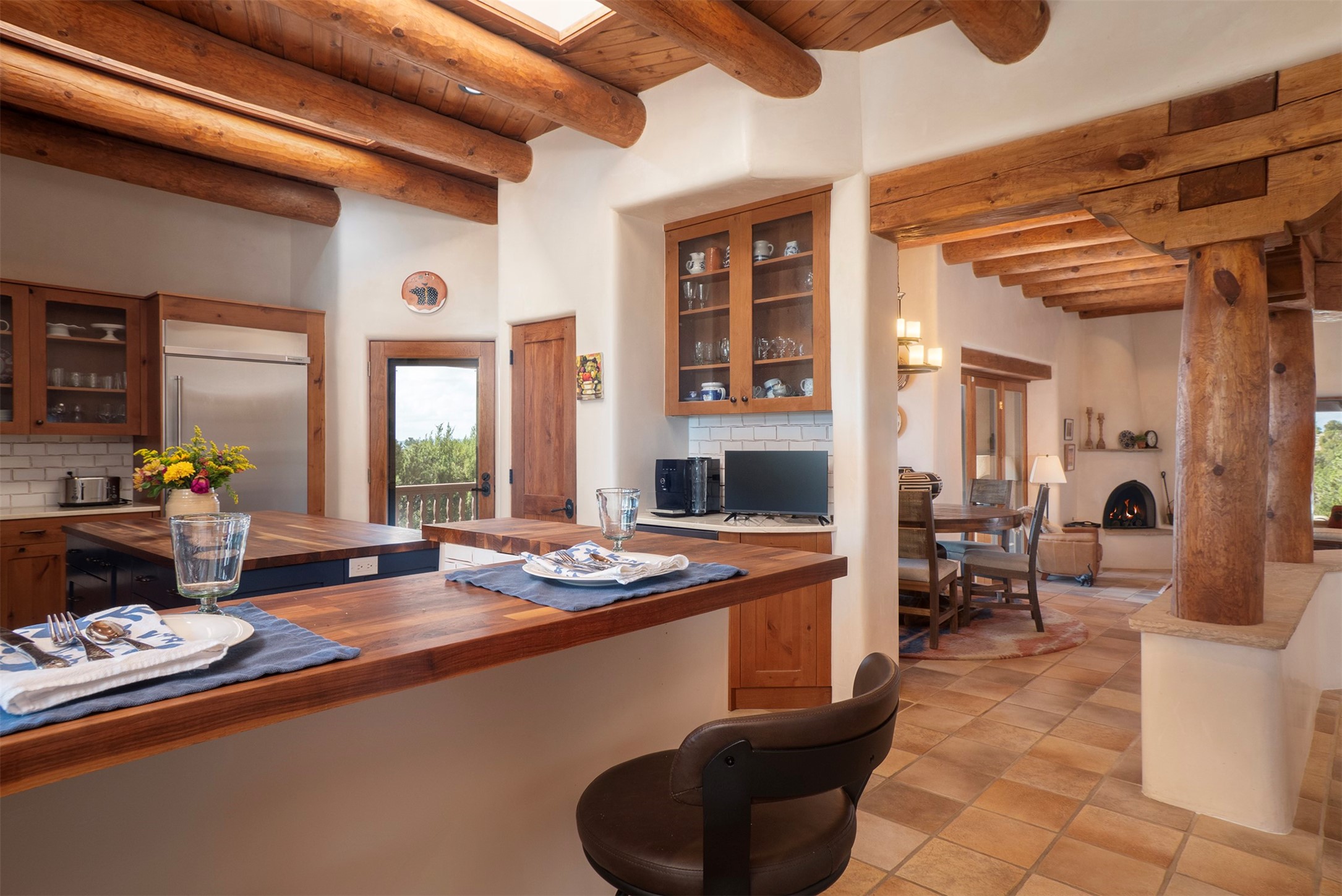 Set within the prestigious Las Campanas community, this exceptional 4-bedroom, 4-bathroom Santa Fe home showcases timeless Southwestern architecture blended with modern sophistication. Thoughtfully updated, the residence features numerous recent improvements. Expansive living spaces with soaring ceilings and large windows capture breathtaking mountain and sunset views. The gourmet kitchen, elegant dining area, and inviting outdoor patios create a seamless flow for entertaining or peaceful retreat. Offering access to world-class amenities, golf, and fine dining, 18 Arriba Circle represents the best of luxury living in Las Campanas--a perfect harmony of comfort, style, and Santa Fe charm.