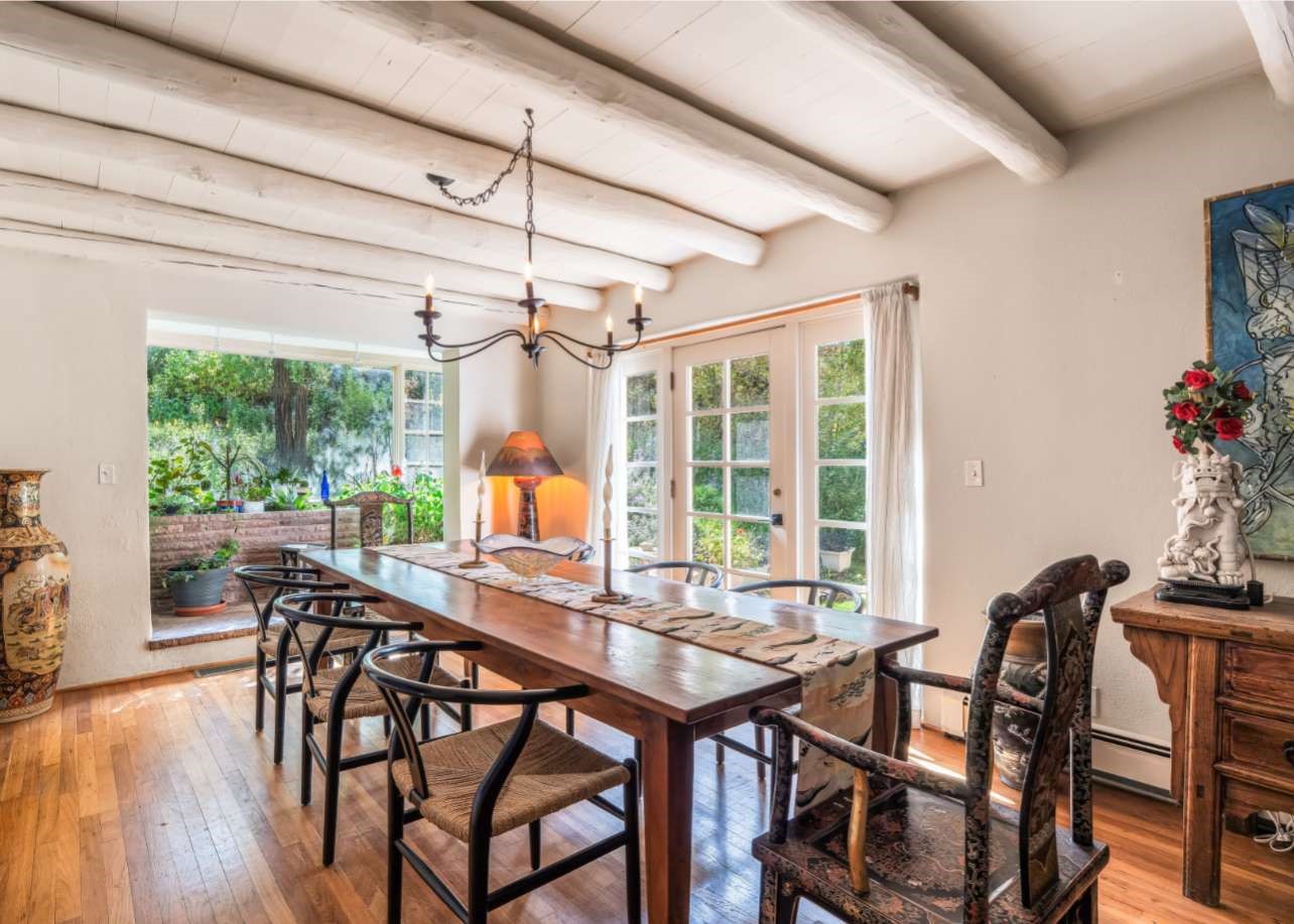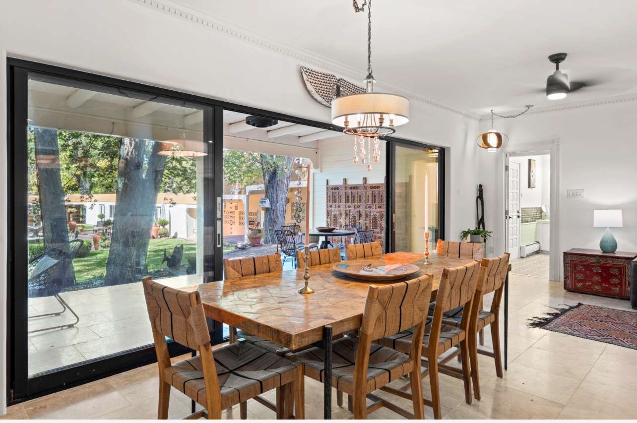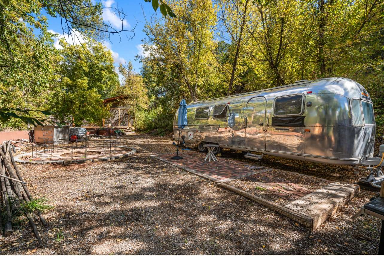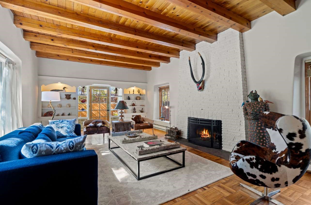 Truly a Rare Find...on the Tesuque River Private on a dead end road with separate asaquia with water rights and a well. 4 acres and authentic adobe charming home with Vega higher ceilings and another seperate home completly remodeled and move in ready. Large heated swimming pool and art studio. Feels remote but is just approx 4.5 miles miles from the historical square in Santa Fe.