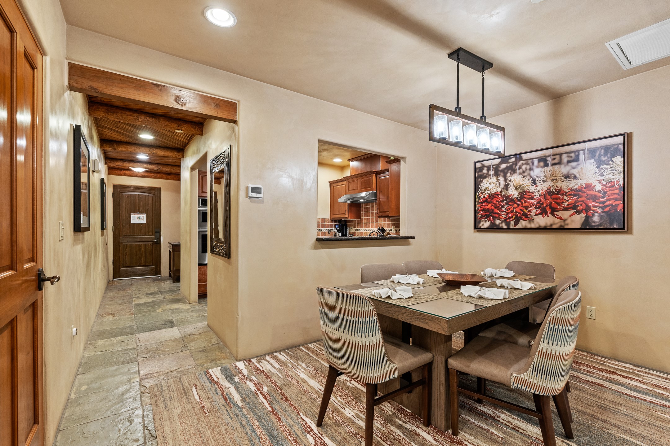 **Seller will pay 6 months of HOA fees at closing with a full-price offer!** This is a fractional ownership offering: Eighth Share Estate H, consisting of an undivided 12.5% (one-eighth) interest as tenant-in-common in Eighth Share Unit 48 at El Corazon de Santa Fe. It is a deeded 1/8th share in Terra floorplan #48H. Owners are entitled to 4 weeks per year, with the possibility of more time if it's available. Two luxurious bedrooms and bathrooms, 1300 sqft, all single level. There is a main living room with fireplace, state-of-the-art kitchen with stainless steel appliances, separate dining area, master bath with dual vanities and jetted tub, private patio, and outdoor and covered garage parking available, accessed with key code. On-site gym, beautiful outdoor gathering spaces, gated property. Walk everywhere from this condo in the heart of downtown. Owners can exchange time through the Hyatt Vacation Club and Registry Collection.