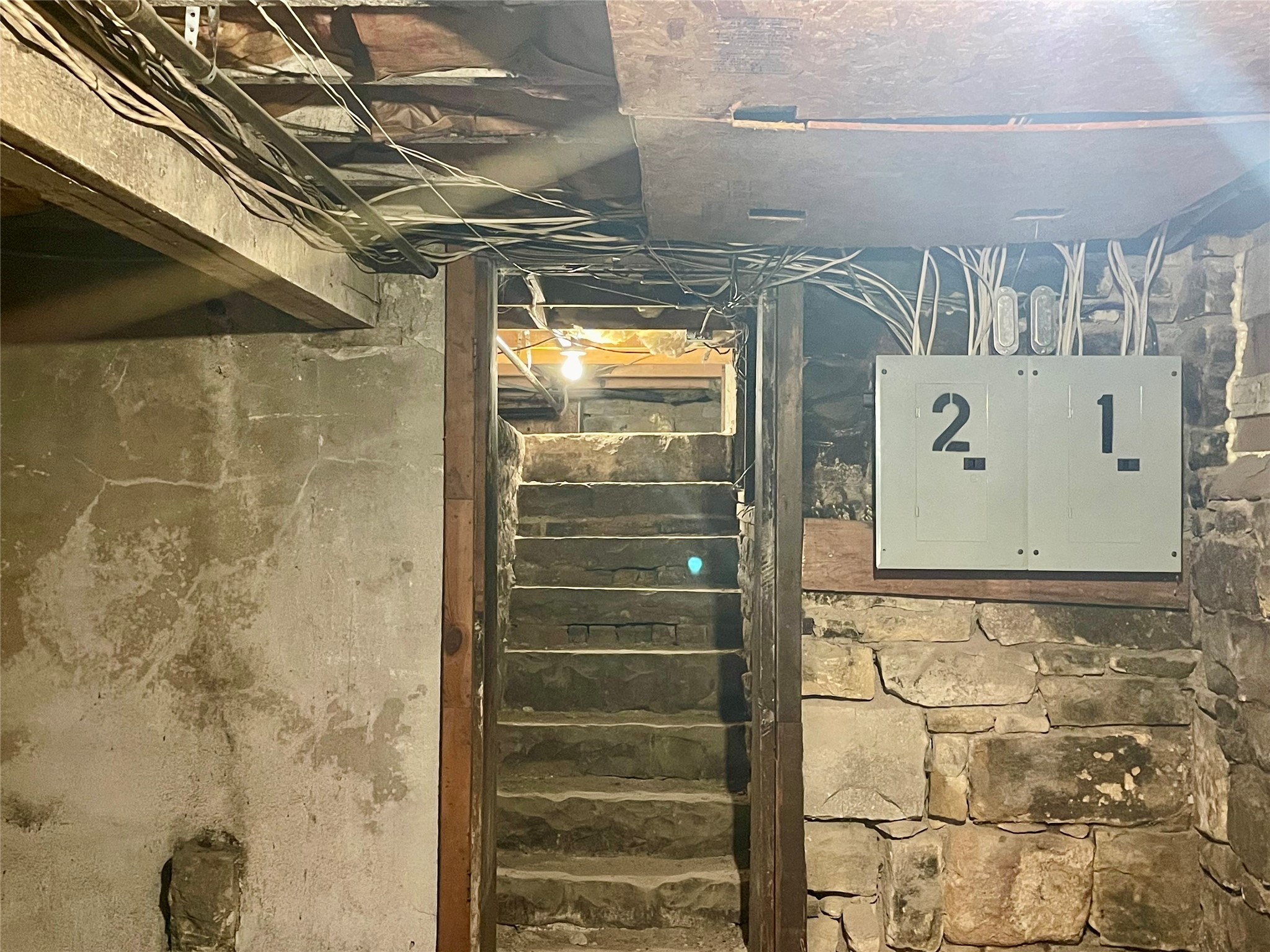 Stunning 1898 stone Queen Anne style home has a history of being the residence and office of the first female doctor in New Mexico, Dr. Alice Rice. The main part of the house has 3 bedrooms and one and a half bathrooms, with hard wood floors, built in display cabinets, transom windows, large pocket doors, a spacious living room and eat-in kitchen, as well as a little dining room/office. The downstairs bedroom has a laundry area in the closet. The attached home has a living room, large kitchen, office/den, two bedrooms, one and a half bathrooms, and was formerly the office space for Dr. Alice Rice, but was converted to an accessory dwelling unit in the 1990s when the home was completely updated, including double paned windows, new wiring, new plumbing, new insulation, and drywall. The ADU is currently rented on a month to month basis and comes complete with separate electric meter, separate water heater, and laundry in the half bathroom, Charm abounds with a truly park like yard with numerous covered porches and balconies, antique style metal fencing, covered grape trellis, many perennials, pathways, and stone patio. The basement is easily accessible and spacious. And with a Propanel roof, 3 car garage, and large alley access what more could you ask for?