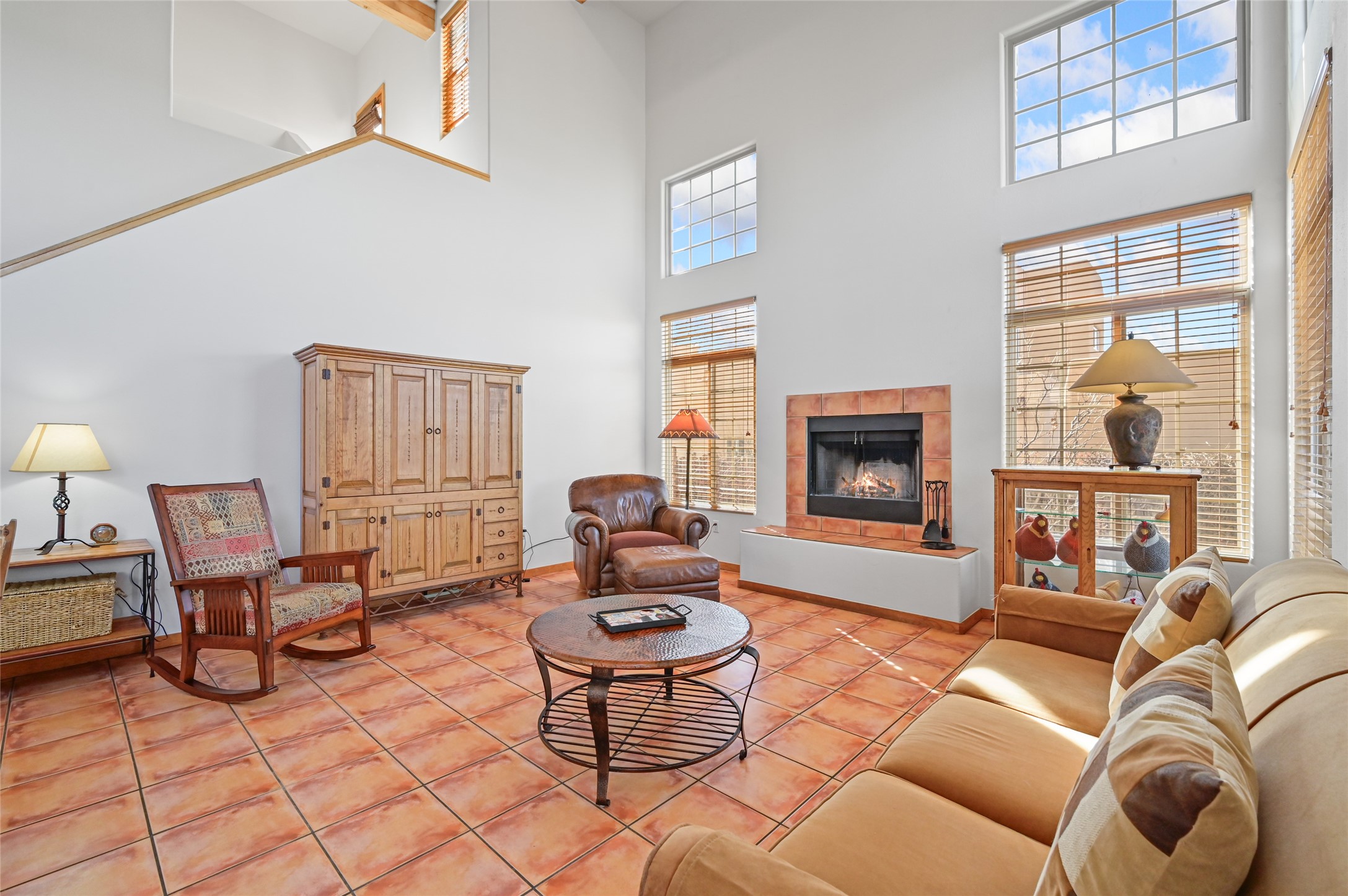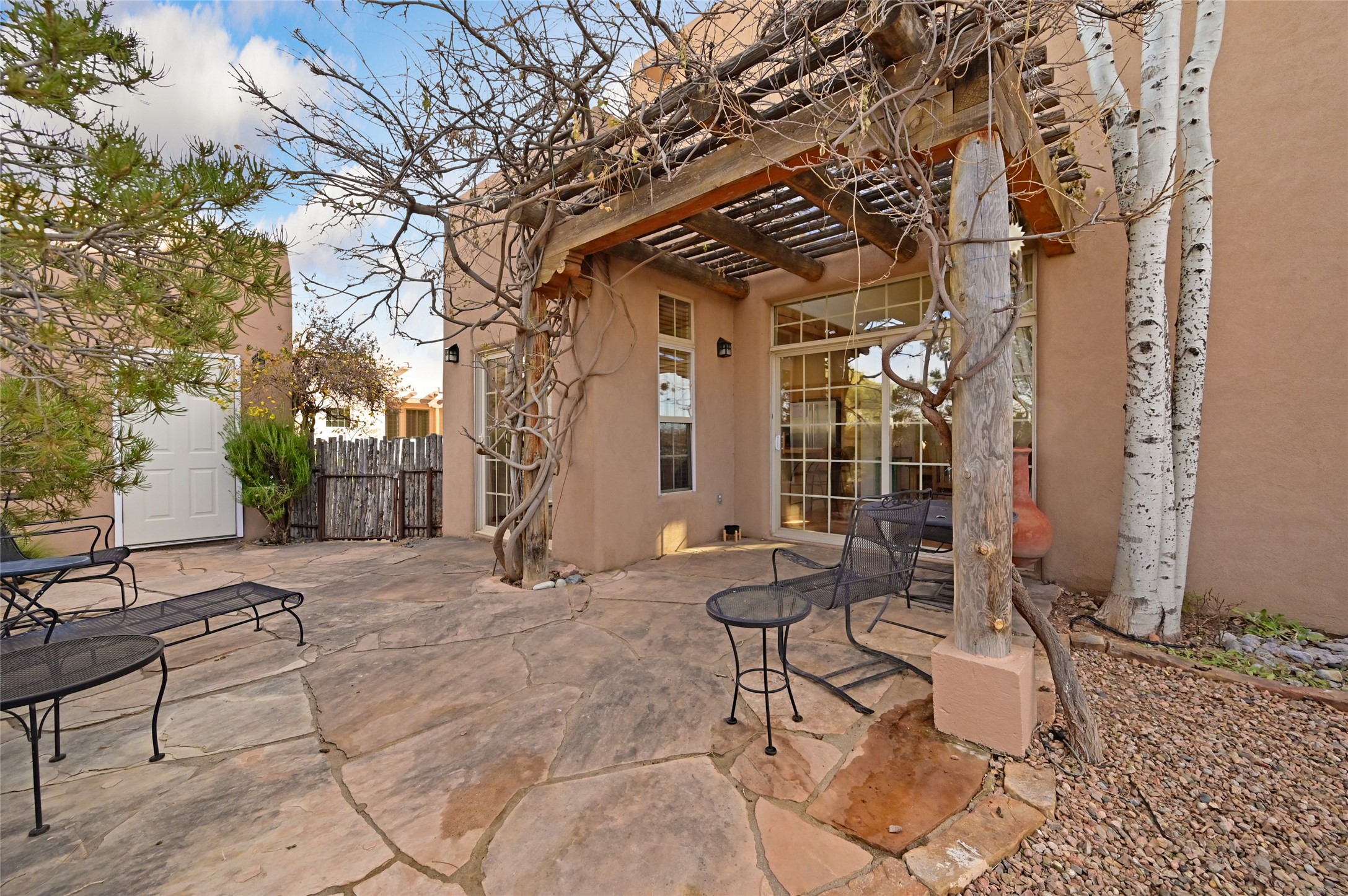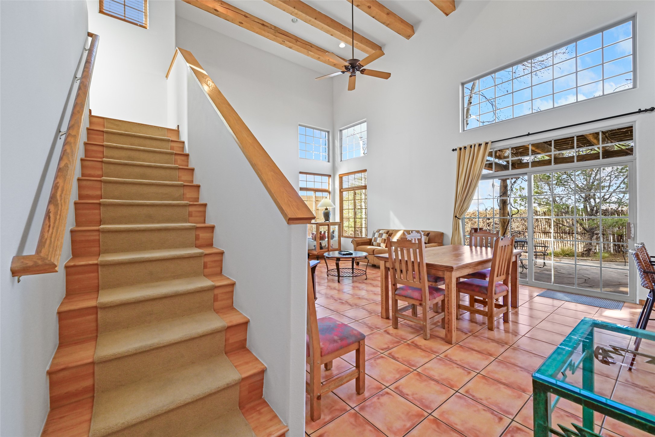 There is a comfy cozy feeling with this home. The gathering areas of the living room, dining room, kitchen and breakfast nook all flow nicely together. yet the Cathedral beamed ceilings add a feeling of elegance. Views from the two second story decks are situated to take advantage of both of Santa Fe's beautiful mountain ranges, as well as sunsets and sunrises. The club house community of Nava Ade offers an outdoor pool and hot tub (seasonal) along with locker rooms, sauna, work out room and community room. The trail system is part of the Chamisa and Las Soleras Trails which is great for walkers, runners, bikers or anyone just wanting to get out