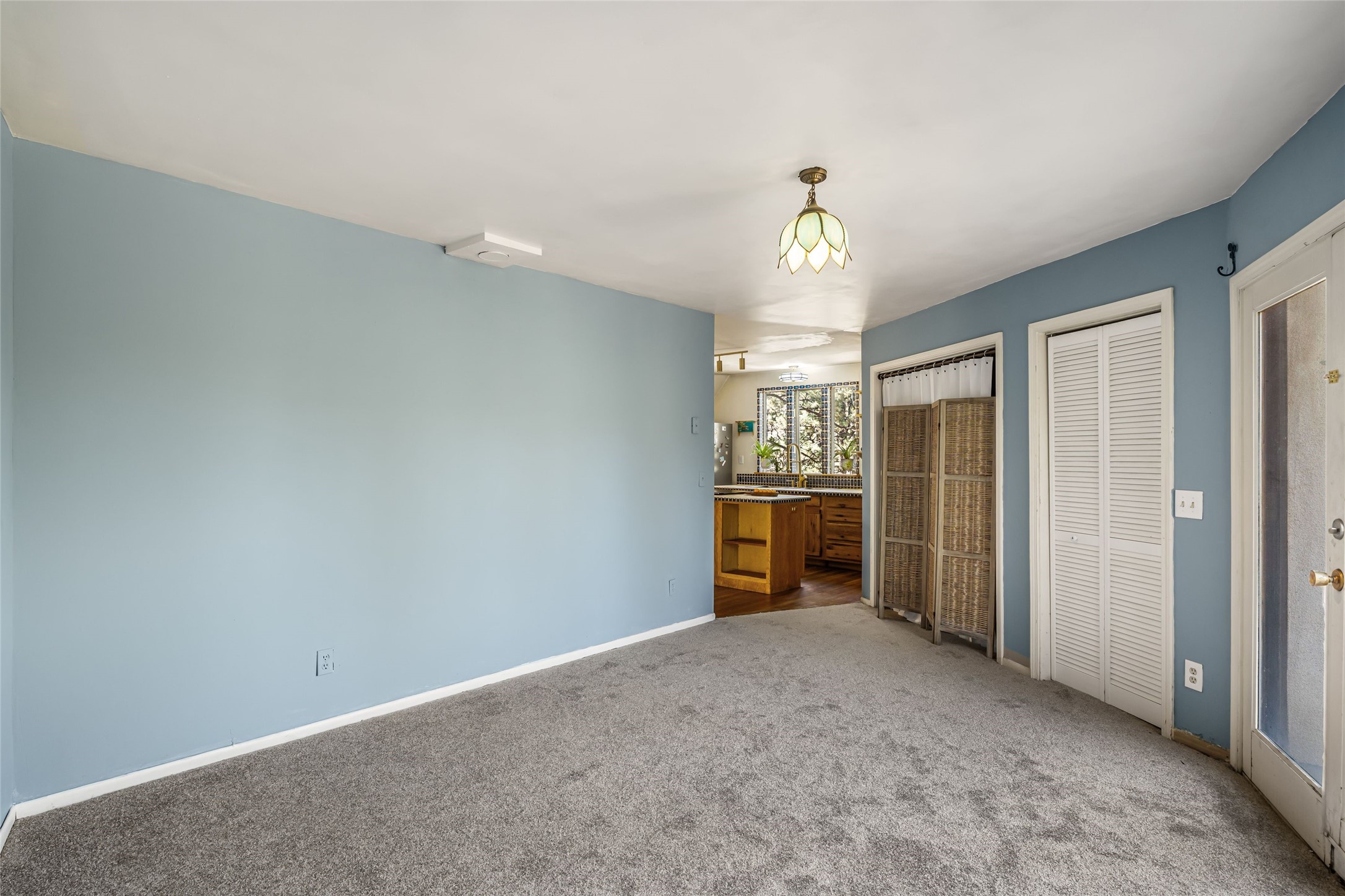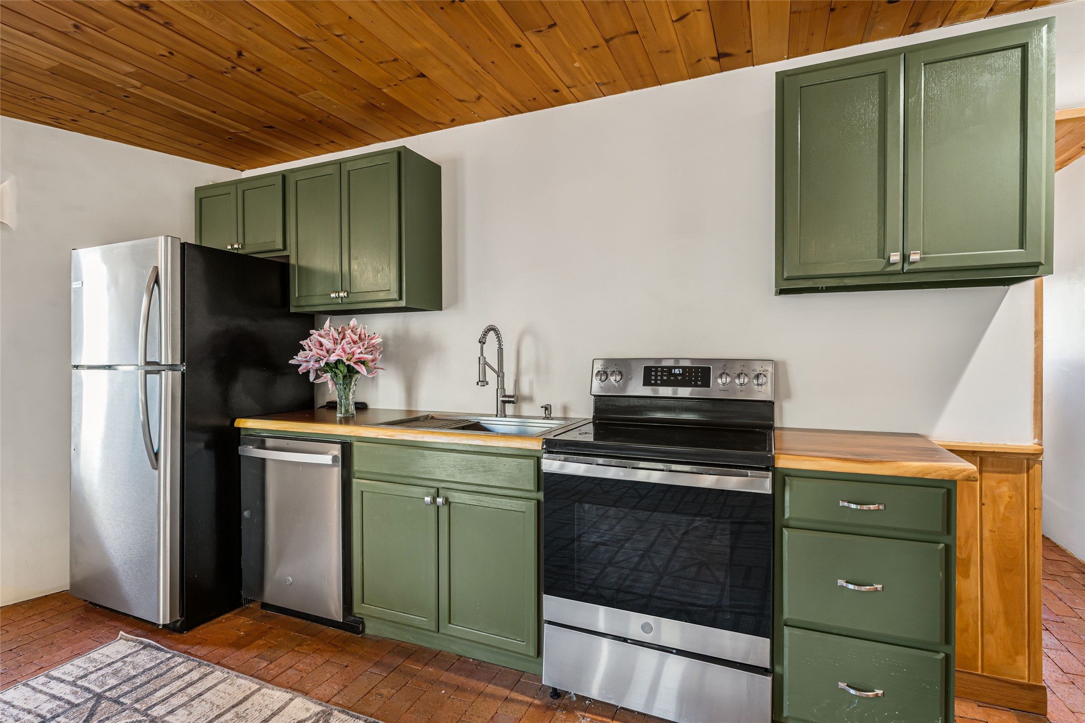 This mountain residence is located in a splendid setting on 2.7 forested acres in the tall pines off Old Santa Fe Trail. The three-level home offers a main house and guest house under the same roof and connected by a stairway internally, so it can be used as a single home or house and guest house. The main level consists of the living, kitchen, and dining rooms, primary bedroom, and bathroom. There are two enjoyable decks - a very large deck off the living room and another off the dining room. The upper level has two bedrooms, a sitting area, and bathroom. The lower lever is the two-bedroom, two-bath guest house with an open-concept living/kitchen/dining area, and which also has another wonderful large deck. The outdoor living is delightful! The topography is gentle, affording a great deal of usable land. Experience a beautiful mountain lifestyle only minutes from the Plaza.