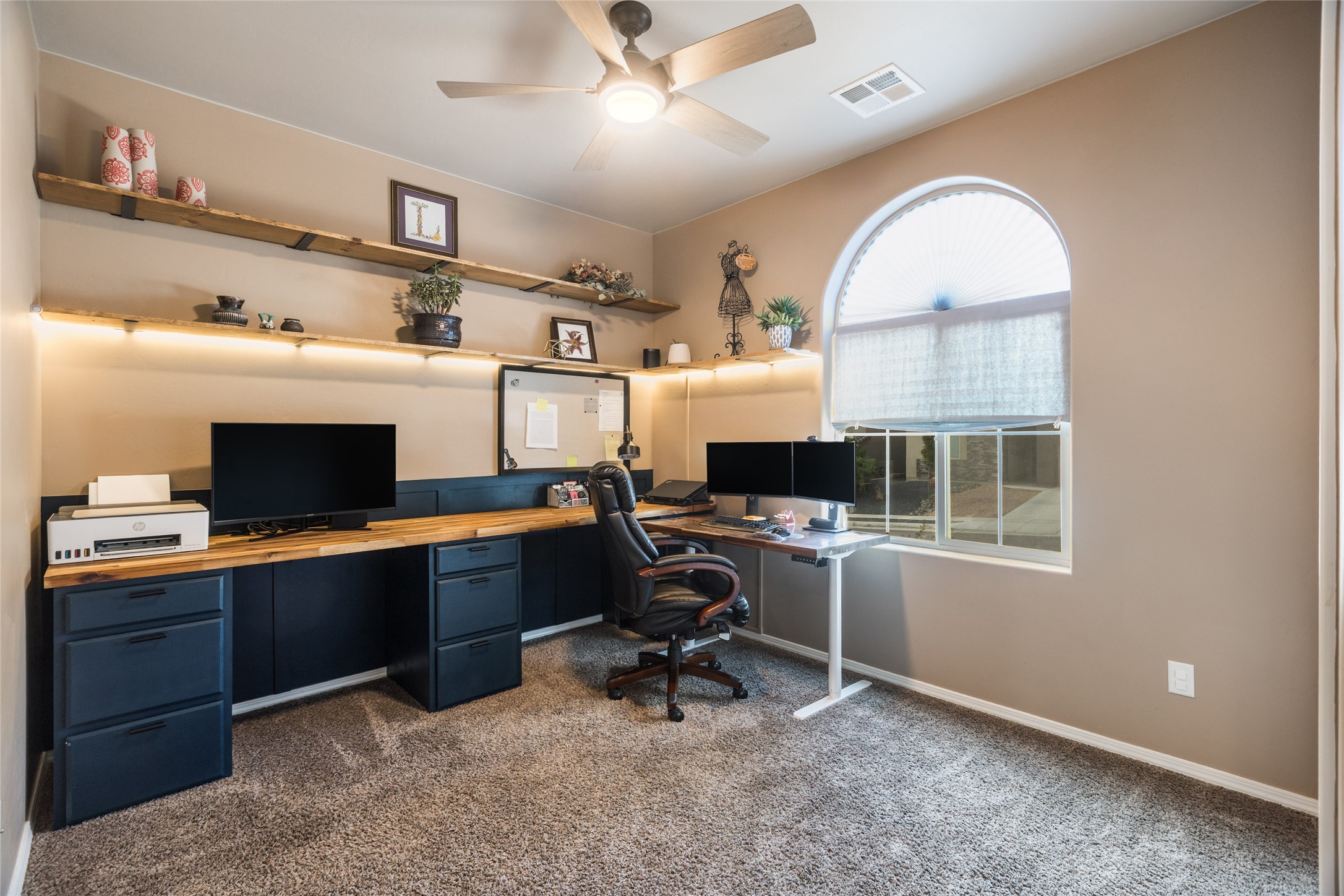 $10k SELLER CREDIT! Over $30k in updates! Experience modern living at its finest in this stunning home with magnificent mountain views. Step inside and you'll notice high ceilings, abundant lighting throughout in this 3 bedroom, plus office home! The open split floor plan feels welcoming and airy, while the walk in closet provides ample storage. Enjoy upgraded features such as granite countertops, a stainless steel apron sink deco paint, floating shelving, and newer light fixtures. The custom door into the nursery adds a special touch for growing families. The garage features epoxy floors, and the fully landscaped yard with artificial turf grass keeps maintenance simple and the outdoor space looking pristine year round. Move right in - this home shows like a model!