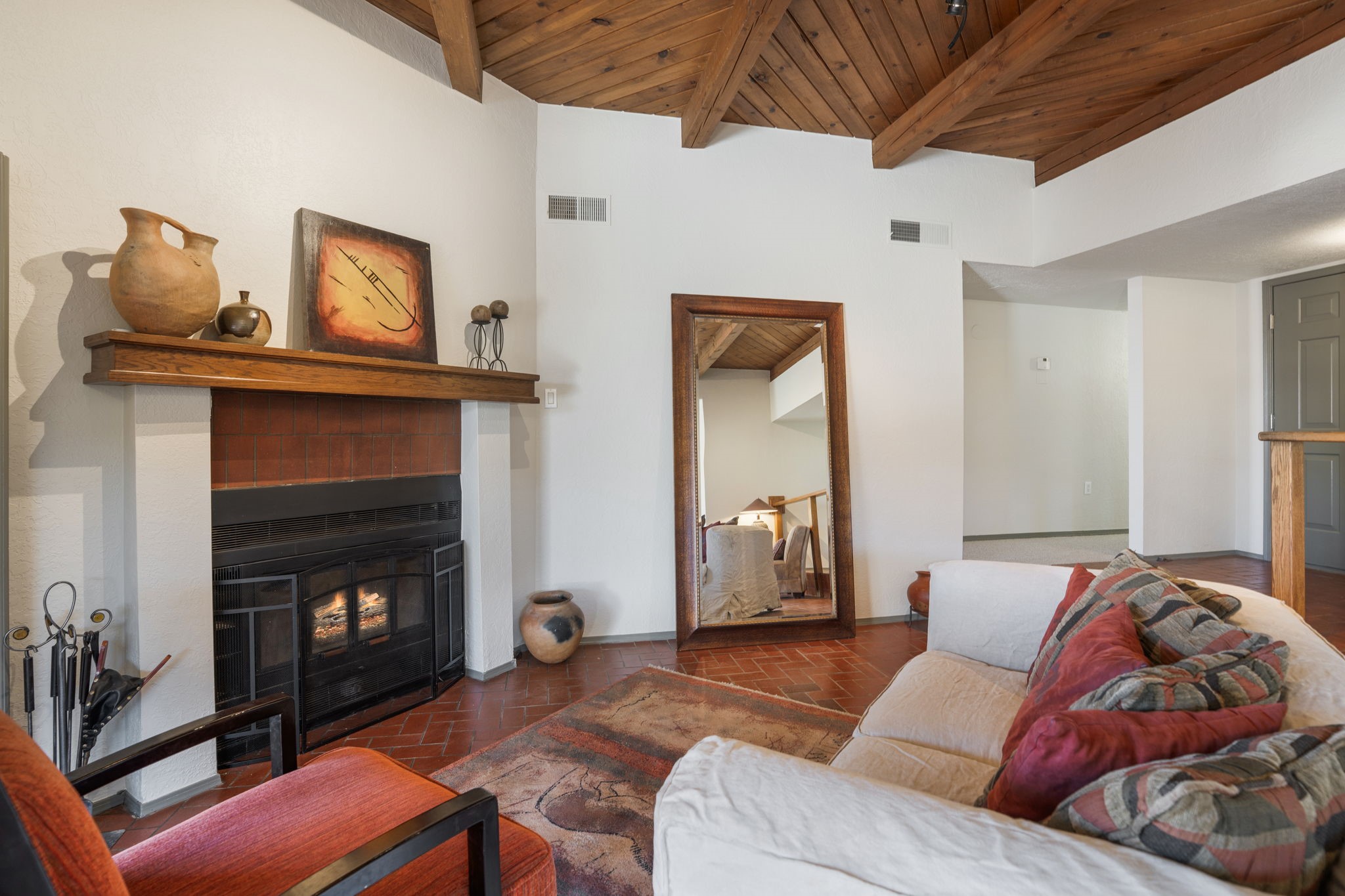 An exceptional opportunity awaits in one of Santa Fe's most cherished communities, DeVargas Heights. The floor plan is both practical and elegant with the separate dining room off the updated Kitchen, including new granite countertops. The inviting living area features a warm wood-beamed ceiling and a charming fireplace, setting a distinctly Santa Fe tone. Three bedrooms and two fully renovated bathrooms offer a blend of modern luxury and neighborhood charm.Enjoy year-round light in the large sunroom that provides a seamless transition to an expansive wrap-around deck and large backyard. Additional highlights include drivable access to the backyard and a flex room located conveniently off the garage, adaptable to your specific needs Best of all, this tranquil retreat is conveniently located less than 4 miles from the vibrant Santa Fe Plaza.