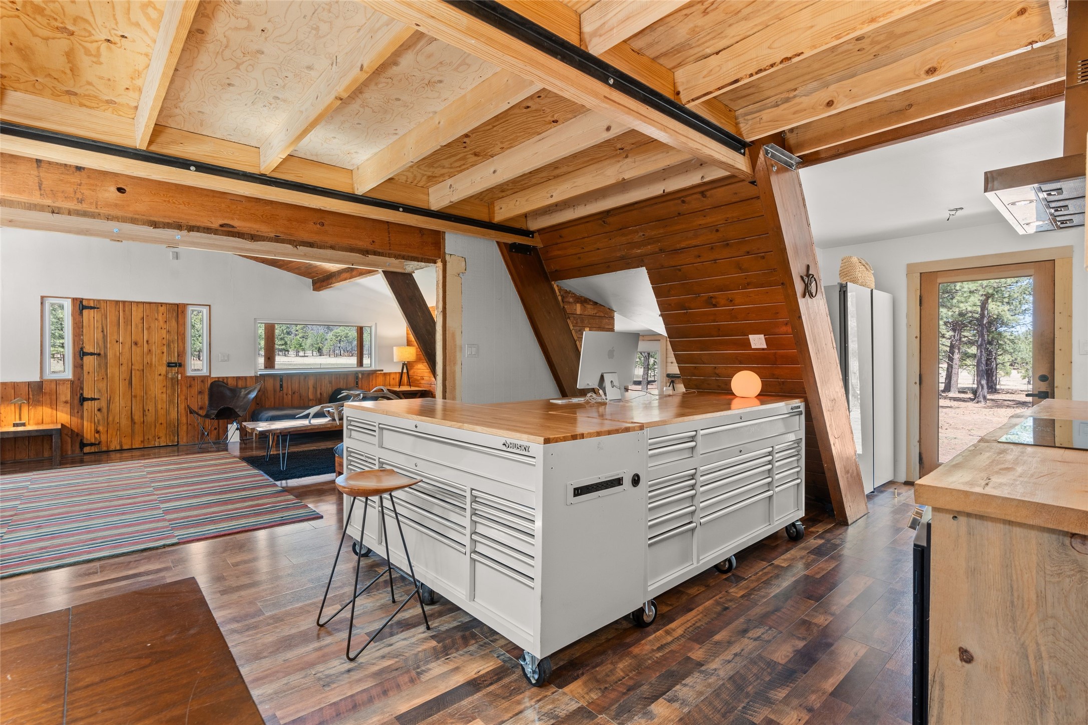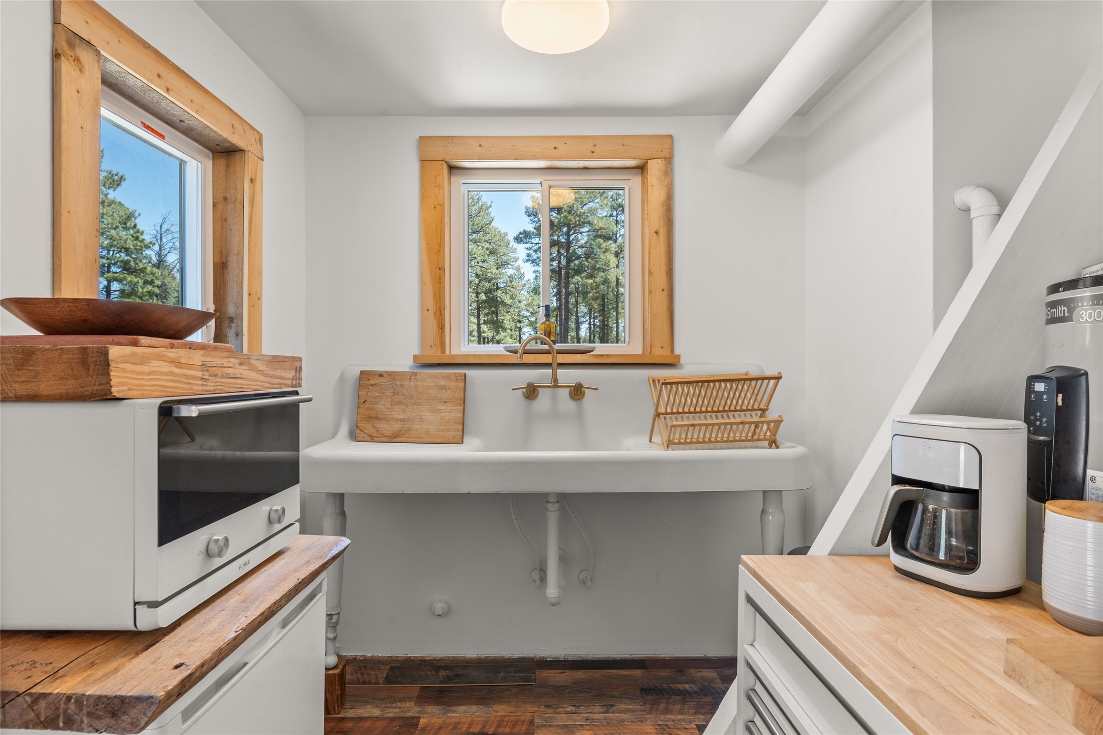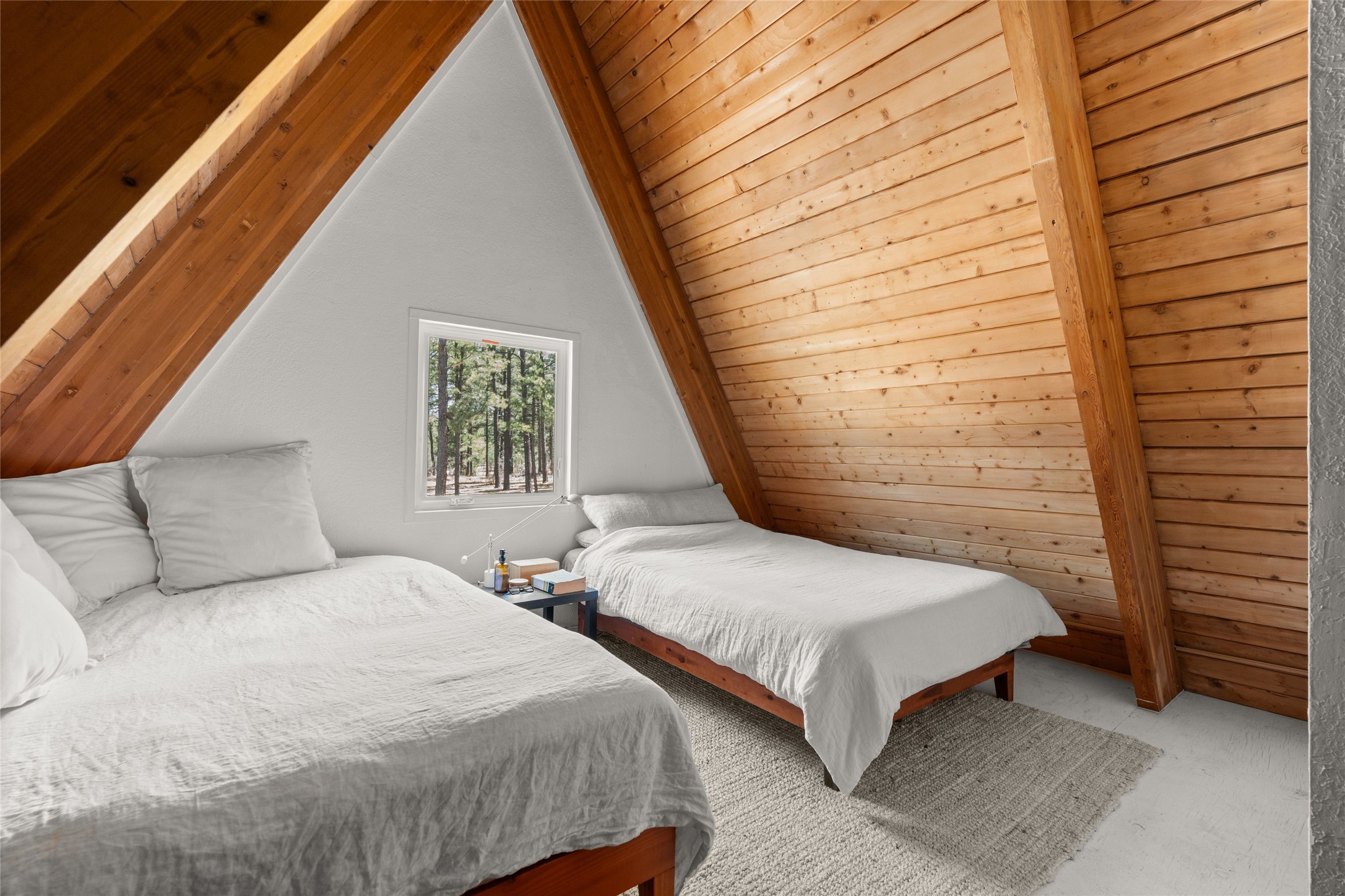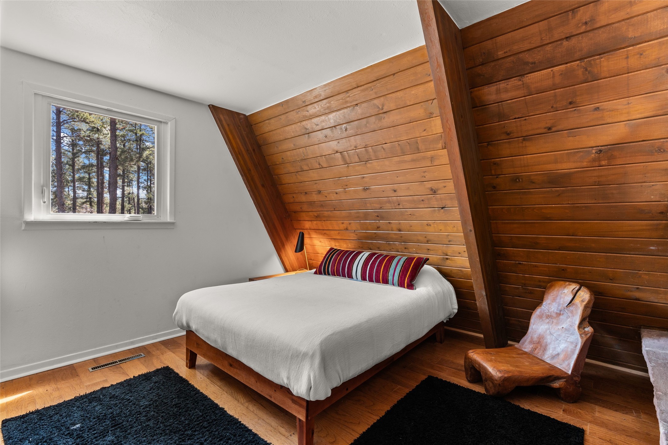 Secluded Mountain Retreat with Modern Upgrades.Behind a gated entrance, this 11.86-acre mountain retreat near Las Vegas, NM, and Storrie Lake offers privacy, sustainability, and stunning views of Hermits Peak. Originally a faminly hunting compound, the beautifully remodeled A-fram home features 3 bedrooms, 1.5 baths, an open-concept living area with a pellet stove, and a kitchen with movable workbench-style counters and an induction cooktop.Upgrades include lifetime warranty windows, a battery-ready 19-panel solar system, new laminte flooring, and enhanced insulation. The fully fenced property is ideal for homesteading or horses, with a hay barn, electric solar horse paddock, and trailer turnarounds. Enjoy two ponds, two wells, a 1/2 acre garden, and compost bins. Outdoor spaces shine with a wrap-around deck, hot shower, and cold plunge pool.Additional features: 500-gallon propane tank, RV hookups, three freezers, two refrigerators, and major fire mitigation. Don't miss this rare blend of mountain seclusion and modern comfort!