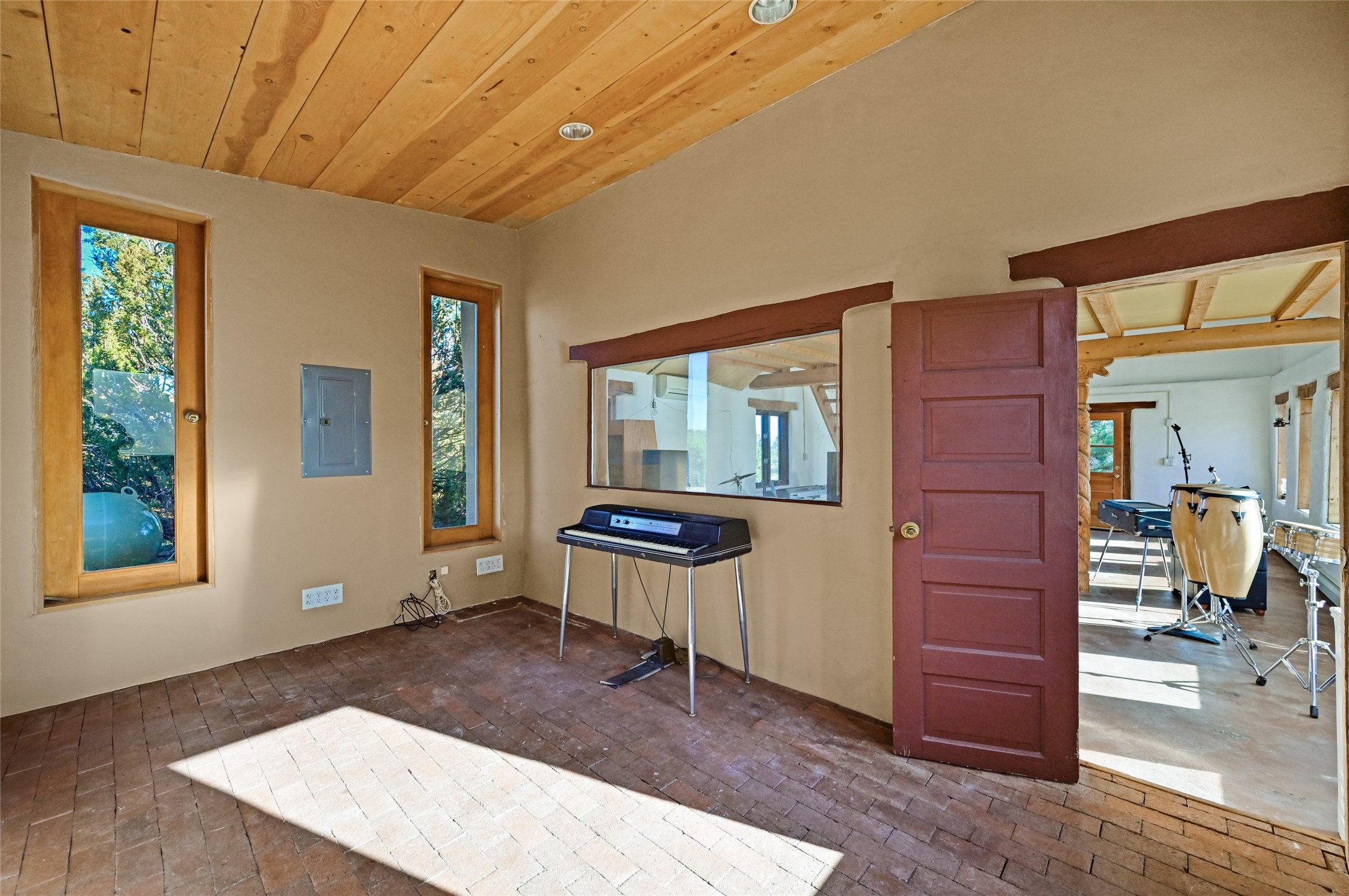 Welcome to this remarkable property that exudes the rustic charm of the old west and features the adobe walls that distinguishes true Santa Fe from the rest! Settled on just under a 10 acre naturally landscaped parcel of land with dreamy mountain views and populated with Pinon and Juniper Trees throughout, this property is the one you've been waiting for. The one bedroom one bath private main home boasts an open concept floor plan and 1,500+/- heated square feet. In addition to the main home there are three separate studios for your use and imagination! A 1,000 +/- sqft adobe with one bath would be great for your guests. The 985+/- sqft "music studio" with one bath attracts great natural light and contains a loft up above the main level. The cute 300 +/- detached studio is just off of the walled courtyard and next to the outdoor hot tub. Another great feature and added benefit to this property is the designated RV parking and hookup area! Come and own your own unique perspective of the gorgeous sunrise and sunset views that Santa Fe is known for from this one of a kind property. The property is fully-fenced and is about a 20 minute drive from the Santa Fe city limits.