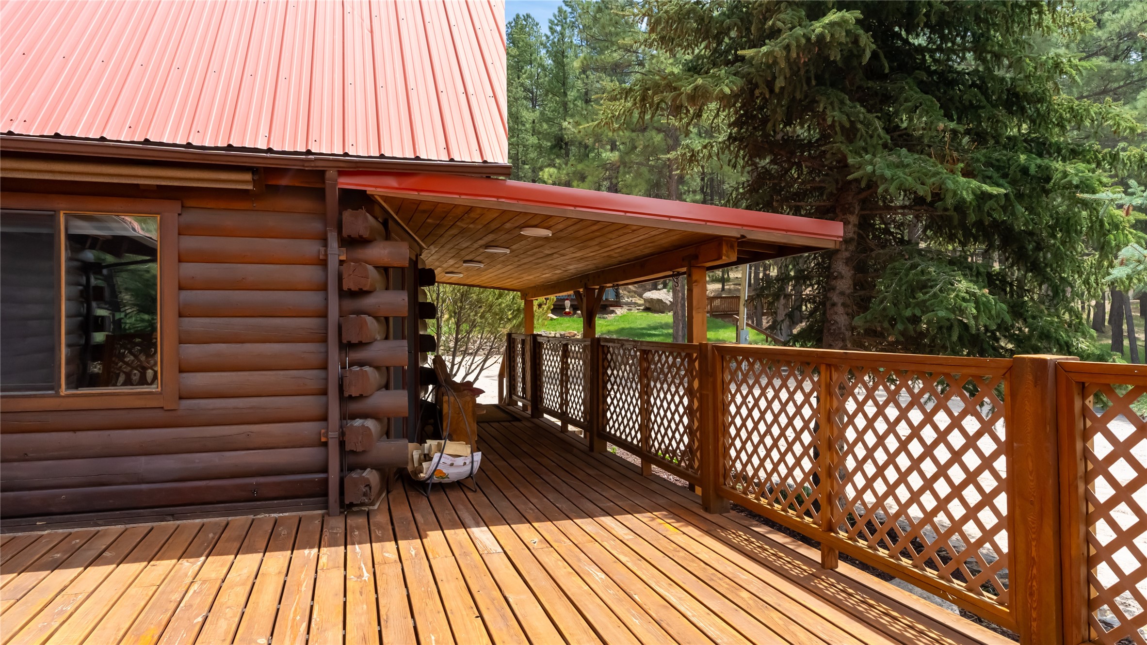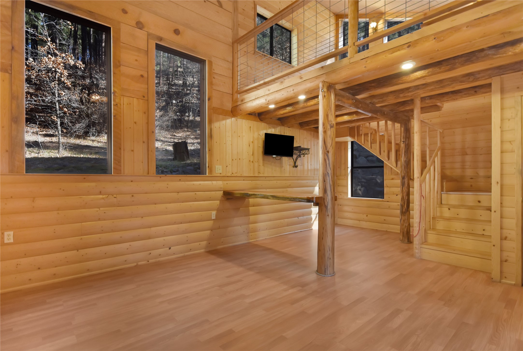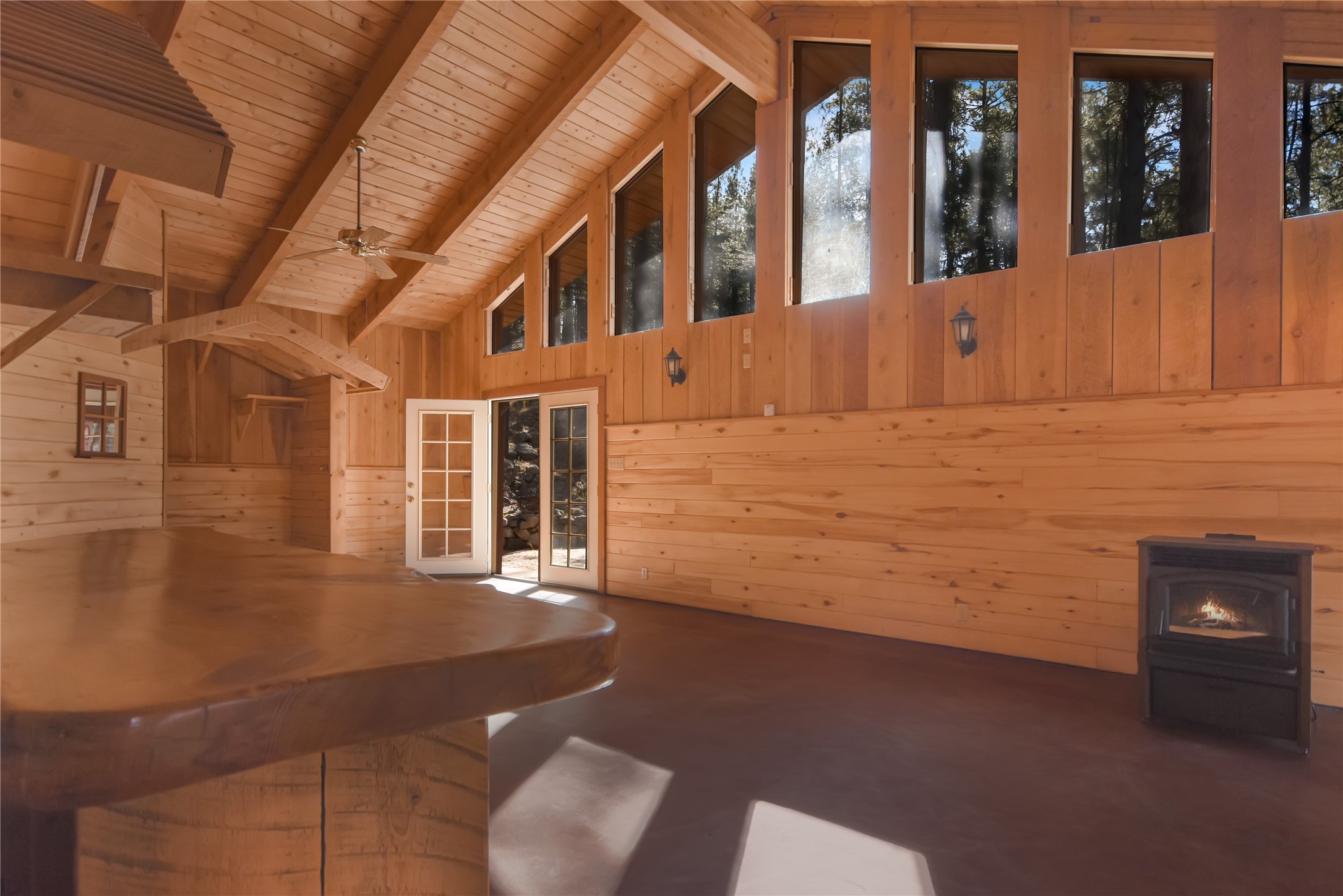 Situated on 3.08 acres encompassing two lots, this former Bed and Breakfast offers endless potential as a home or business venture. The main house has 1868 sq feet of lovely living space with an open-concept great room that showcases beautiful flagstone floors, natural log walls, knotty-pine ceilings and a wall of windows framing the breathtaking views of the Jemez Mountains. The two additional cabins provide potential business opportunities, studio workspaces or a family retreat. The 16X20 garage provides ample space for vehicles and storage. The property borders Santa Fe National Forest, where you can enjoy the Hot Springs, Valles Caldera, Bandelier, Hiking, Skiing and Mountain Biking. Only 45 minutes to Los Alamos, 1.5 hours to Albuquerque and 1.25 hours to Santa Fe.