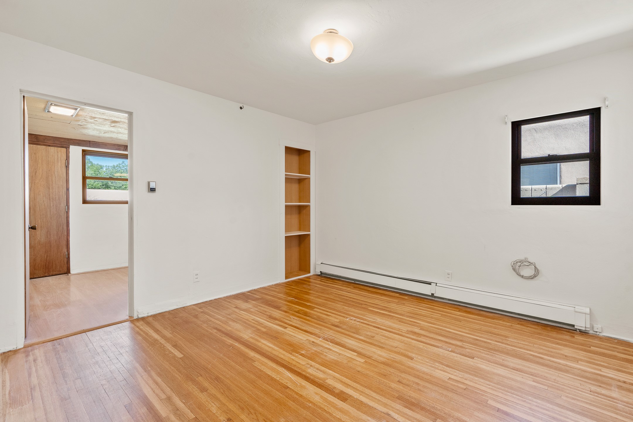Charming and versatile single-level home nestled in the highly sought-after Casa Alegre neighborhood. Back on the market with significantly improved price. This property stands out as a unique opportunity, featuring multiple living areas and exceptional flexibility for the modern homeowner. This generous residence offers three bedrooms and two bathrooms, complemented by a large heated and finish open area. The oversized bonus space features direct access, presenting enormous possibilities. It's perfectly suited for a private art studio, home occupancy business, large gym, or a dedicated multi-generational living suite. The interior includes dedicated family, living, and dining rooms, all boasting beautiful hardwood flooring throughout the main living areas. Santa Fe Lifestyle at Your Doorstep. Enjoy true convenience with easy access to local shopping and dining. Best of all, the home is ideally situated near the Santa Fe River Trail and the Acequia Trail, providing direct, car-free routes straight to the vibrant Railyard District and historic downtown. The property features a spacious, fenced backyard and a covered portal, creating an ideal setting for outdoor entertaining and relaxation. Enjoy year-round comfort with reliable hot water baseboard heating and evaporative cooling.This motivated seller opportunity won't last long--schedule your showing today!