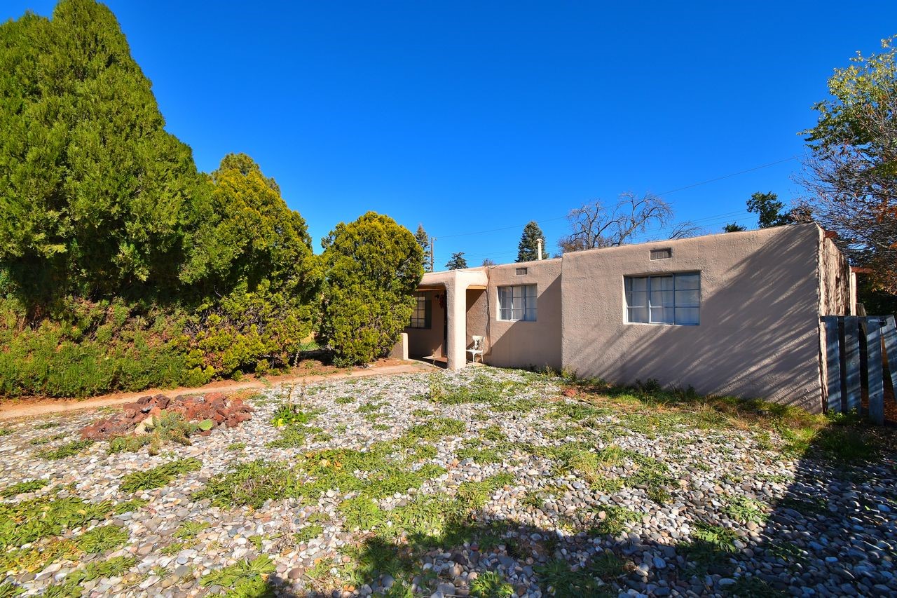 Charming Mid-Century home with attached studio in historic Casa Solana. Welcome to this classic 1952 Santa Fe gem, ideally located in the sought after Historic Casa Solana neighborhood in North Santa Fe. Offering 1208 square feet of inviting living space plus a 220 SF studio. This property blends timeless character with thoughtful updates. Built with solid block construction, the home retains many of its mid-century details -including warm work floors , cabinetry and classic Santa Fe style while offering modern improvements for today's lifestyle. The main home features a comfortable layout with light-filled living areas, efficient natural gas wall heaters, and authentic architectural touches that speak to its historic roots. The attached studio provides excellent versatility perfect for a guest suite, art studio, home office, or rental opportunity. Complete with 1/2 bath and private entry. Situated on a peaceful tree lines street. The easy proximity to downtown Santa Fe, the Railyard District, parks, shopping and beloved neighborhood amenities. Offering a rare opportunity to own a piece of Santa Fe history!