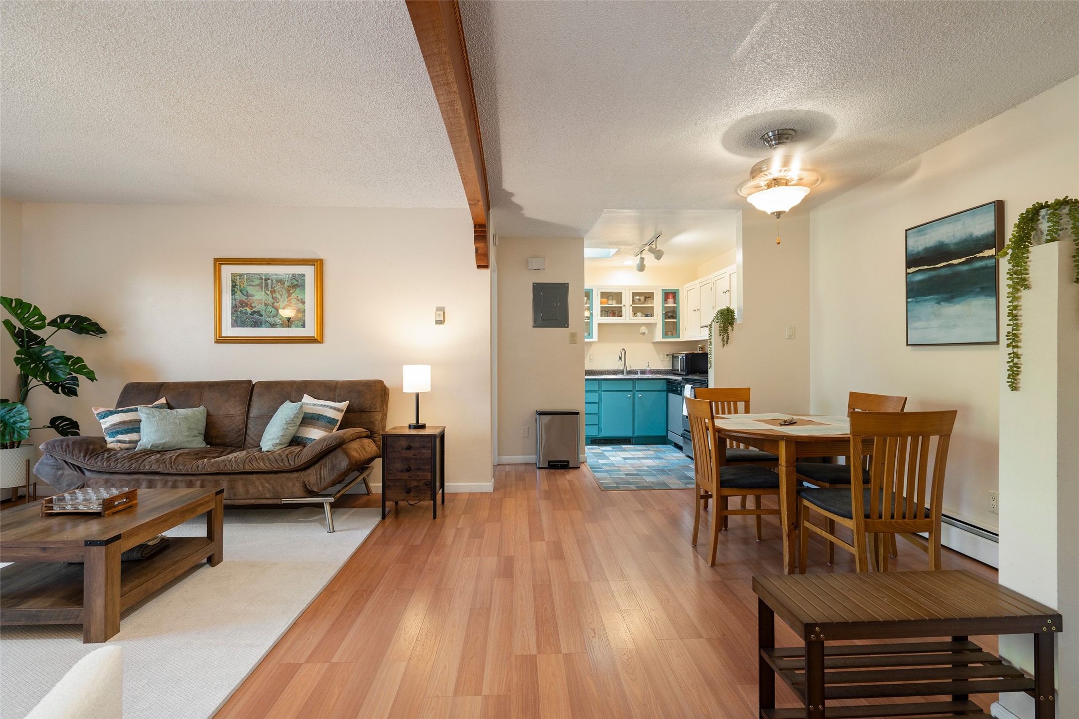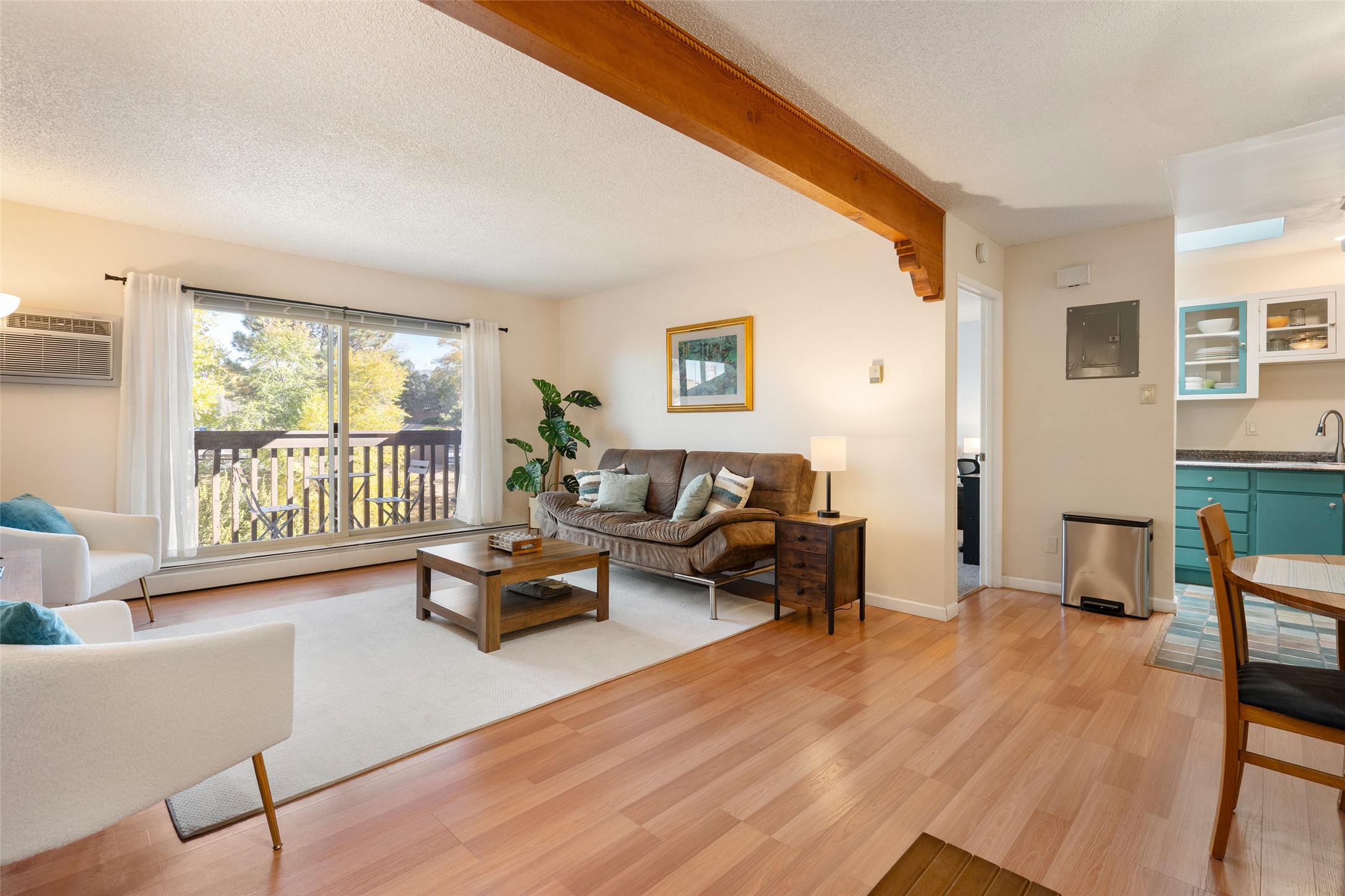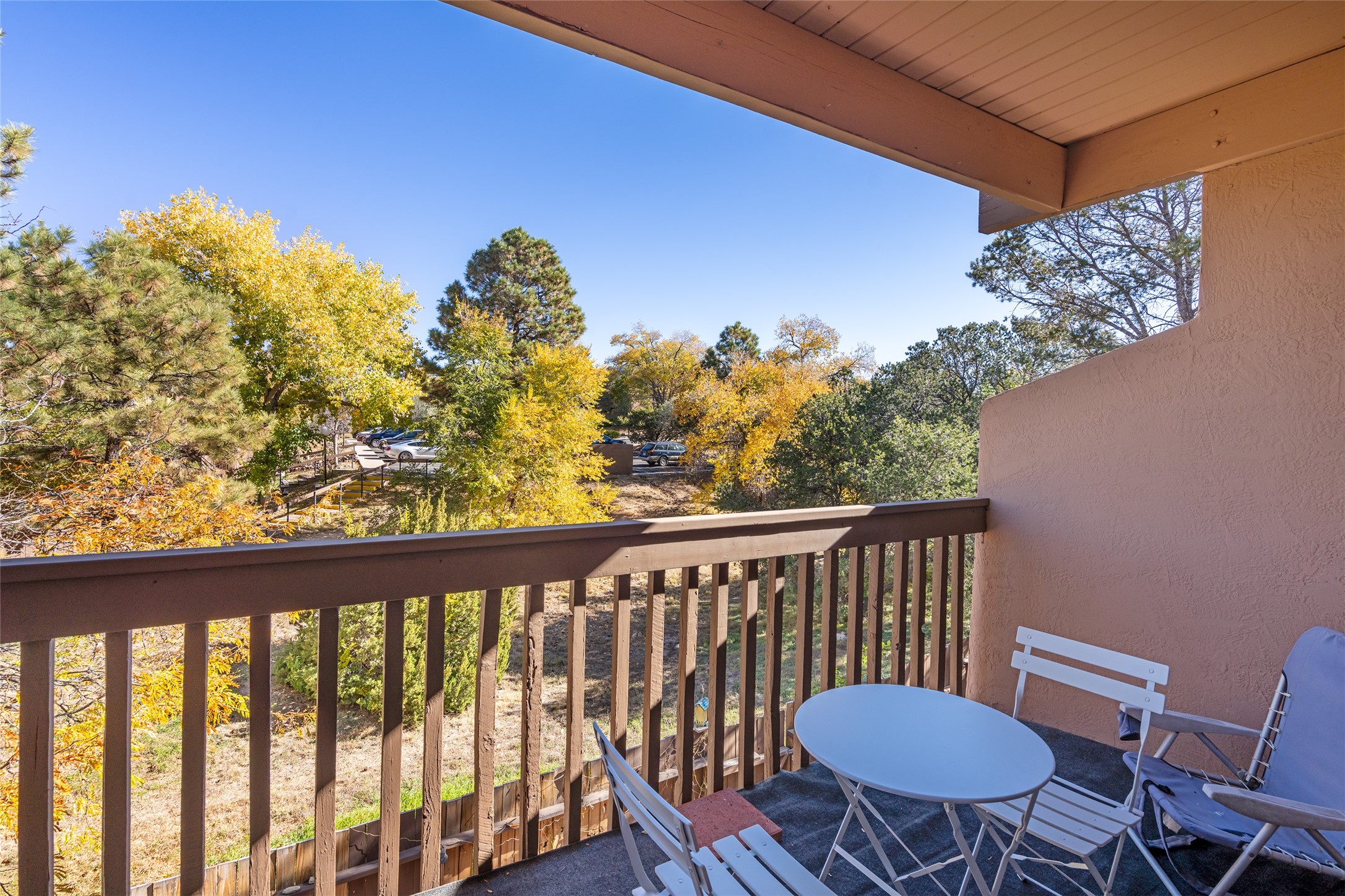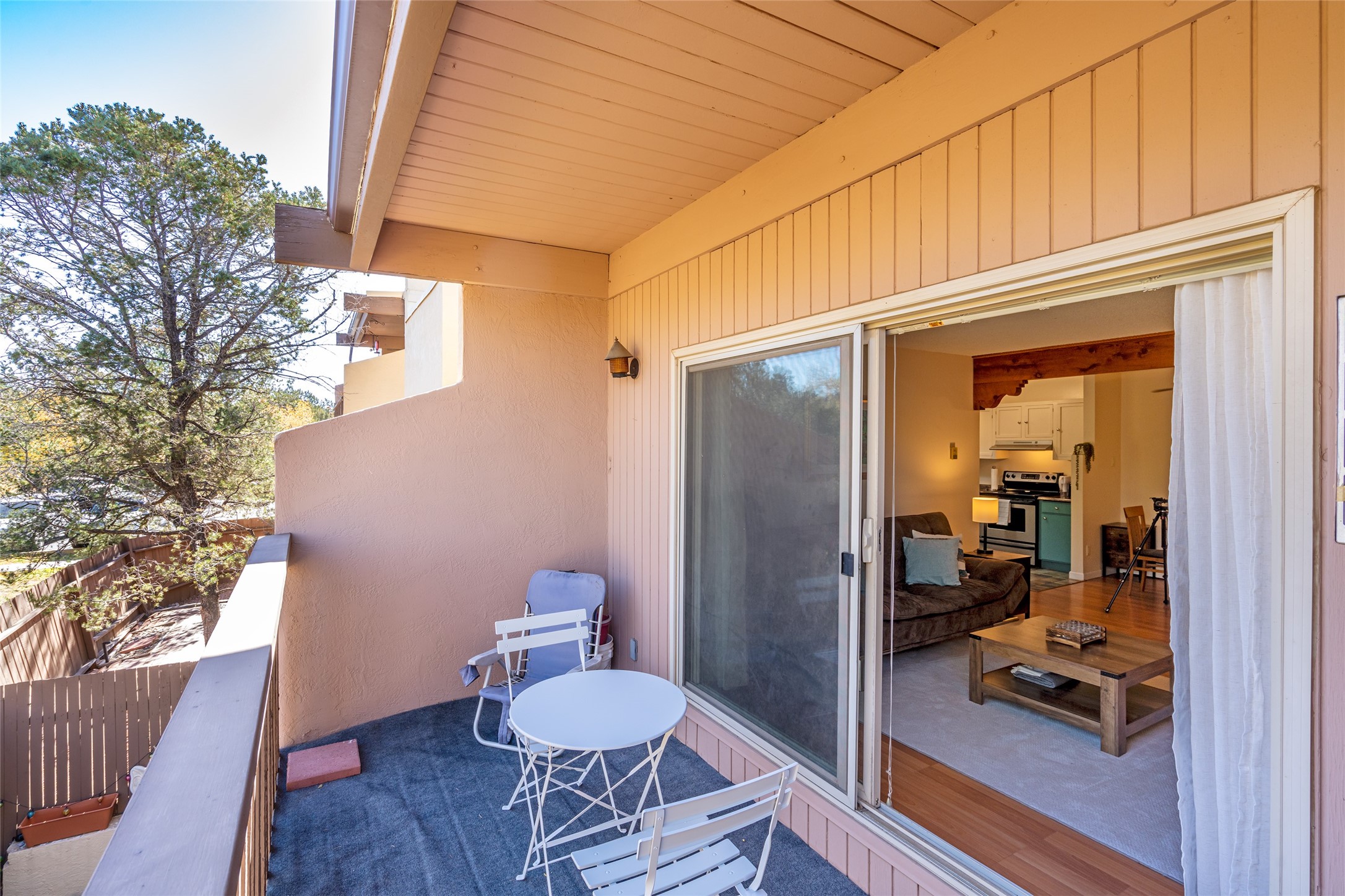 This spacious second-story condominium in the desirable Los Arroyos community offers comfort, convenience, and Santa Fe charm. Centrally located near the hospital and many of the city's premier amenities, this home is one of the larger units in the complex, featuring two bedrooms, one full bath, one bath, and a dedicated laundry room.The bright and open living and dining areas feature easy-care laminate flooring, while the kitchen and baths are finished with tile and the bedrooms offer cozy carpeting. A generous northeast-facing deck provides a lovely outdoor retreat with seasonal mountain views in winter-- perfect for relaxing or entertaining. Residents enjoy a wealth of community amenities, including a clubhouse, indoor swimming pool, sauna, and tennis courts, along with nearby walking trails. The home includes one assigned parking space plus additional guest parking. The association includes roof and exterior maintenance, heating, water, and common areas, ensuring low-maintenance living in one of Santa Fe's most convenient neighborhoods. Your Santa Fe comfort awaits!