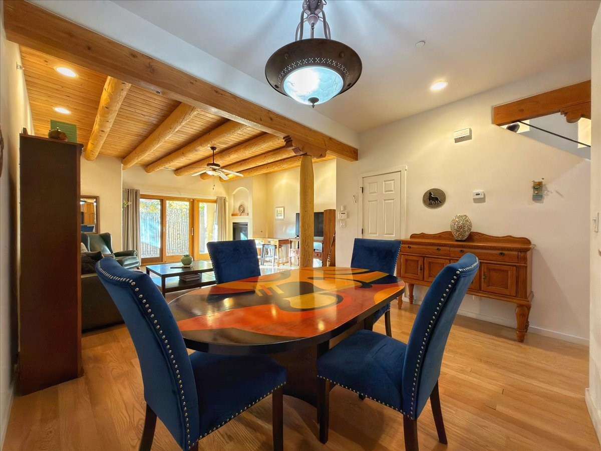 Tucked into one of the community's most desirable lanes, this rare and **oversized townhouse** delivers an effortless blend of style, comfort, and Santa Fe living. These are upgraded units from the standard sized Townhouse.Offering 2 bedrooms and 2 baths, the flexible floorplan is designed for easy everyday living with room to entertain.The main level features an open kitchen, dining, and oversized living space anchored by a welcoming gas fireplace. Glass doors lead to a private garden courtyard--your own outdoor retreat for quiet mornings, alfresco dinners, or relaxed evenings with friends.Upstairs, the primary suite includes an **oversized bedroom**, and **oversized walk-in closet**, full bath, and a balcony perfect for savoring the day's last light. The second bedroom offers its own ensuite bath and eastern views. High ceilings, vigas, Pella windows, and stainless steel appliances bring classic Santa Fe character to the modern layout.The community rounds out the experience with thoughtful amenities: a clubhouse, fitness center, and seasonal pool surrounded by beautifully maintained grounds, lush landscaping, and open green space.Step outside and you're moments from neighborhood favorites--Iconik Coffee, Backroads Pizza, Midtown Bistro, Chocolate Maven, Anytime Fitness, and more. Prefer the outdoors? The Santa Fe Rail Trail sits just half a mile away, ideal for biking, running, or a leisurely stroll.Practical perks include strong cell service, optional carport rentals, and a lock-and-leave lifestyle that suits first-time buyers, downsizers, or anyone seeking a comfortable Santa Fe home base.This isn't just a townhouse--it's a vibrant, convenient, easygoing way of life.