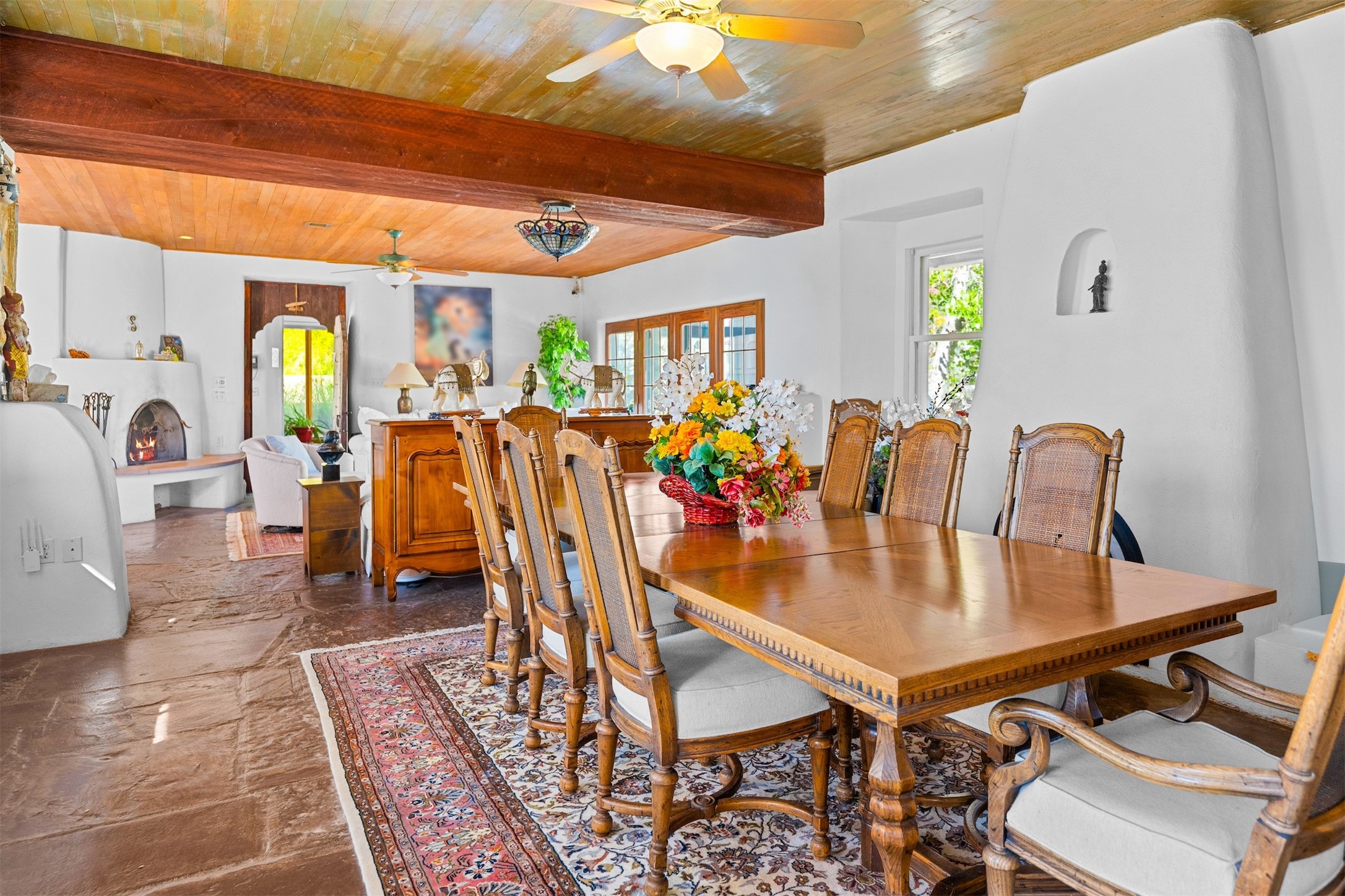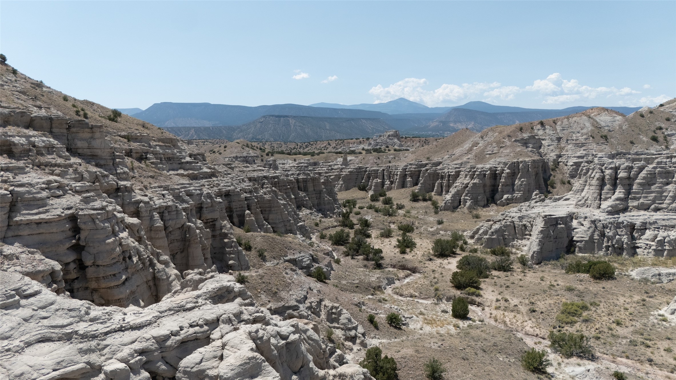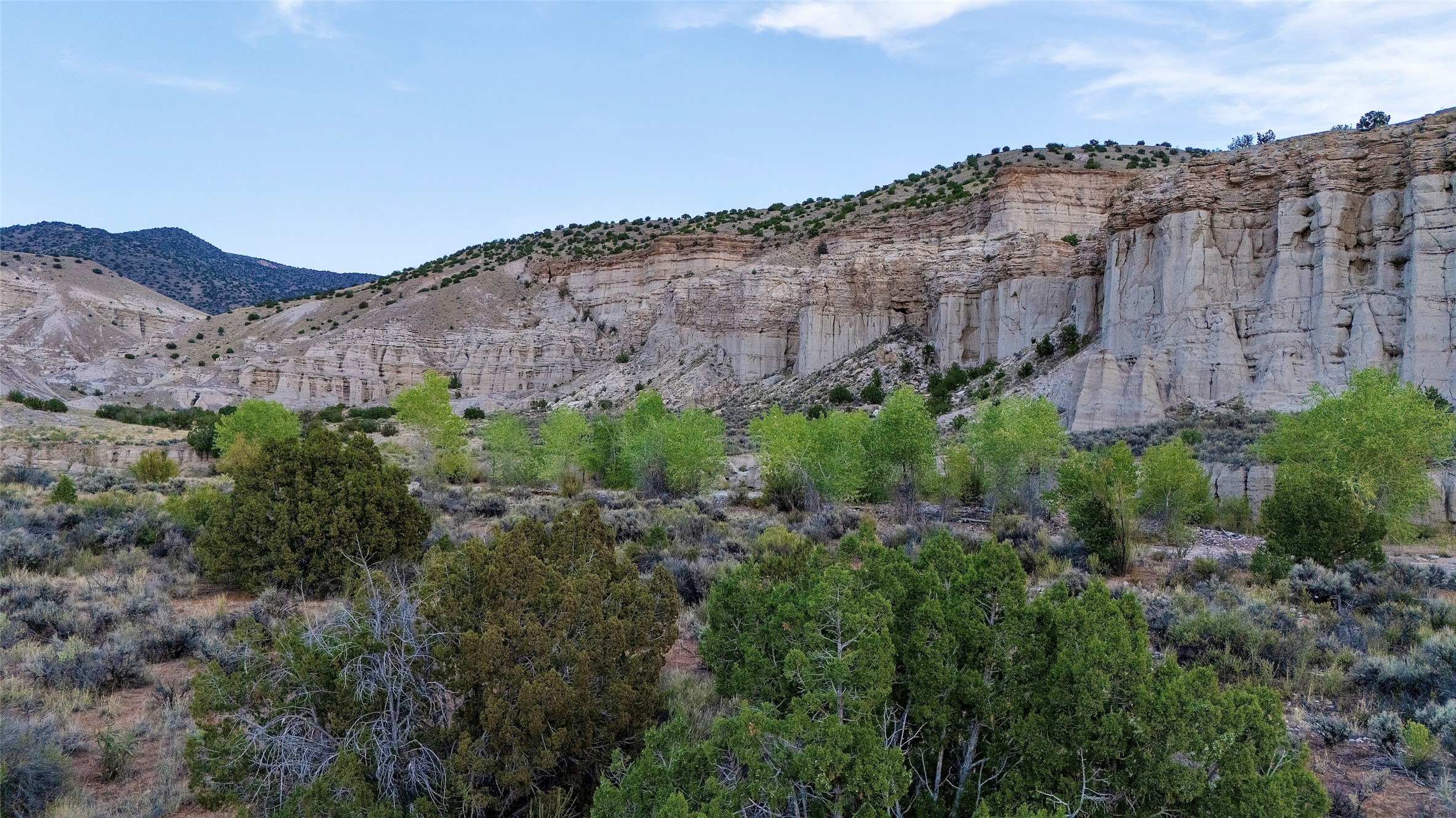 Shirley MacLaine's Plaza Blanca Ranch, set in the stunning landscapes of Abiqui, New Mexico, is where the beauty of the natural world and spiritual peace converge. The ranch, spanning 7,451 acres, is tucked into the dramatic, otherworldly scenery of northern New Mexico's high desert, and it is surrounded by the kind of striking geological features that have inspired artists, photographers, and writers for generations.Plaza Blanca is perhaps best known for its unique white sandstone formations at the ranch's entrance, which rise sharply from the earth to evoke both the surreal and the sublime. These striking "white place" cliffs were immortalized by the painter Georgia O'Keeffe, who was deeply inspired by the area. This legendary ranch also has thousands of acres of piion/juniper forest interspersed with native grasses. The ranch offers sweeping views of the surrounding Chama River Valley, with its red rock mesas, distant mountains, and vivid sunsets that fill the sky with a spectrum of colors.The large 9,000+ square foot hacienda-style home, originally completely off-grid, now features grid-tied solar and wind power, a courtyard, and water supplied from an artesian water well. A caretaker's home, barn, and workshop are all conveniently situated near the hacienda.The expansive ranch shares a 7 mile border with the Carson National Forest, and the terrain features a variety of geologically significant features, with elk, mule deer, and other wildlife cruising the property. The ranch offers the chance to explore thousands of acres for geological anomalies and Native American petroglyphs, several of which have been discovered on the property. Plaza Blanca Ranch has been owned by Ms. MacLaine since 1990, making this a rare opportunity to acquire an iconic property.
