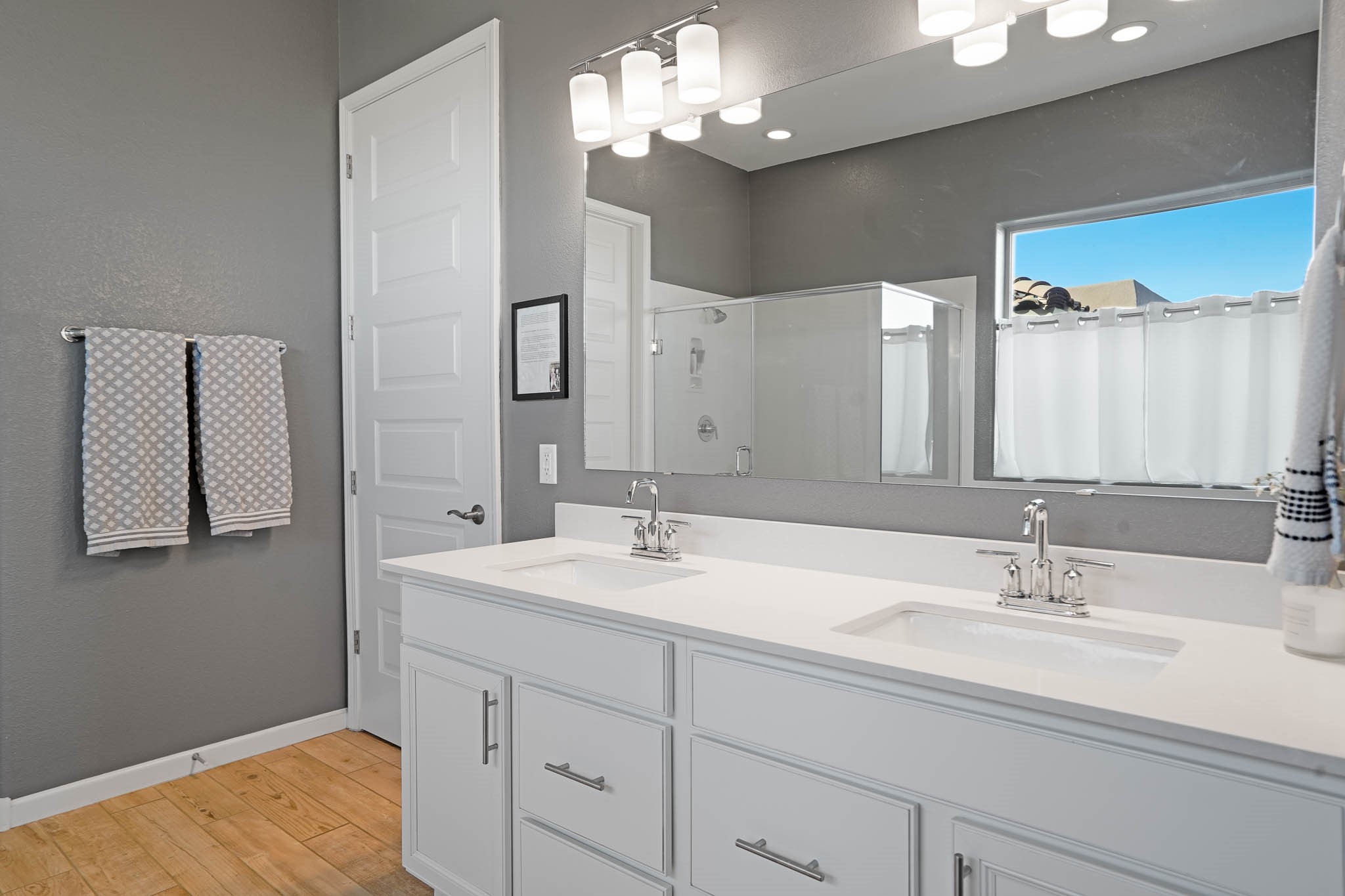 Move-In Ready & Priced to Sell! Don't miss this 5-year-young gem designed for comfort and easy living. This home offers wood look tile flooring throughout the main living areas with carpet in just two bedrooms for a cozy touch. Owned solar panels make electric bills manageable. Added features include: Deep bathtub for soaking, California Closet designed owner's closet, French Doors for bonus office/studio & more. The open layout is perfect for entertaining, & the easy-care yard means more time to relax & enjoy your private hot tub! This home has been lovingly maintained & is priced to sell quickly! Schedule your showing today before it's gone!