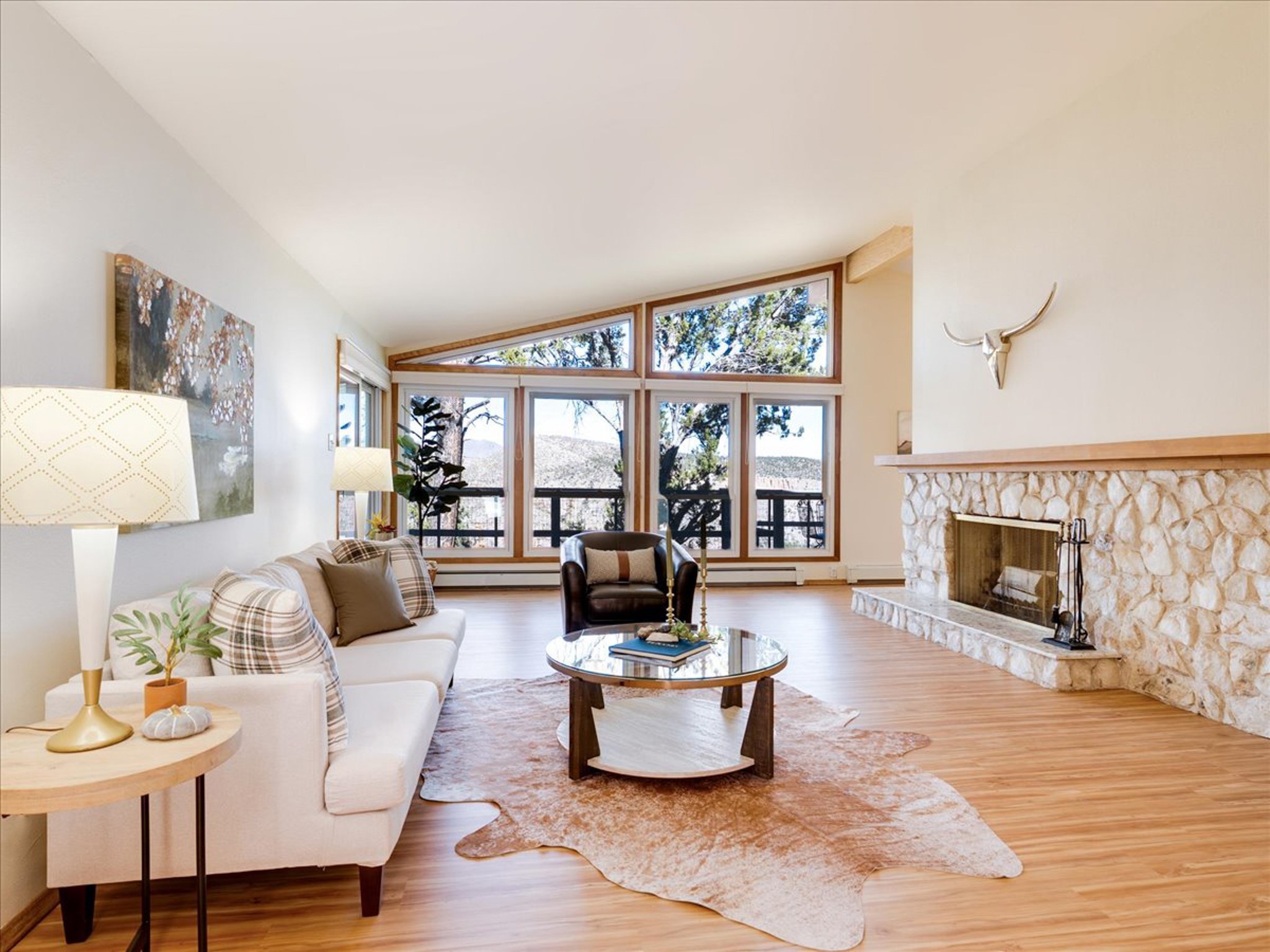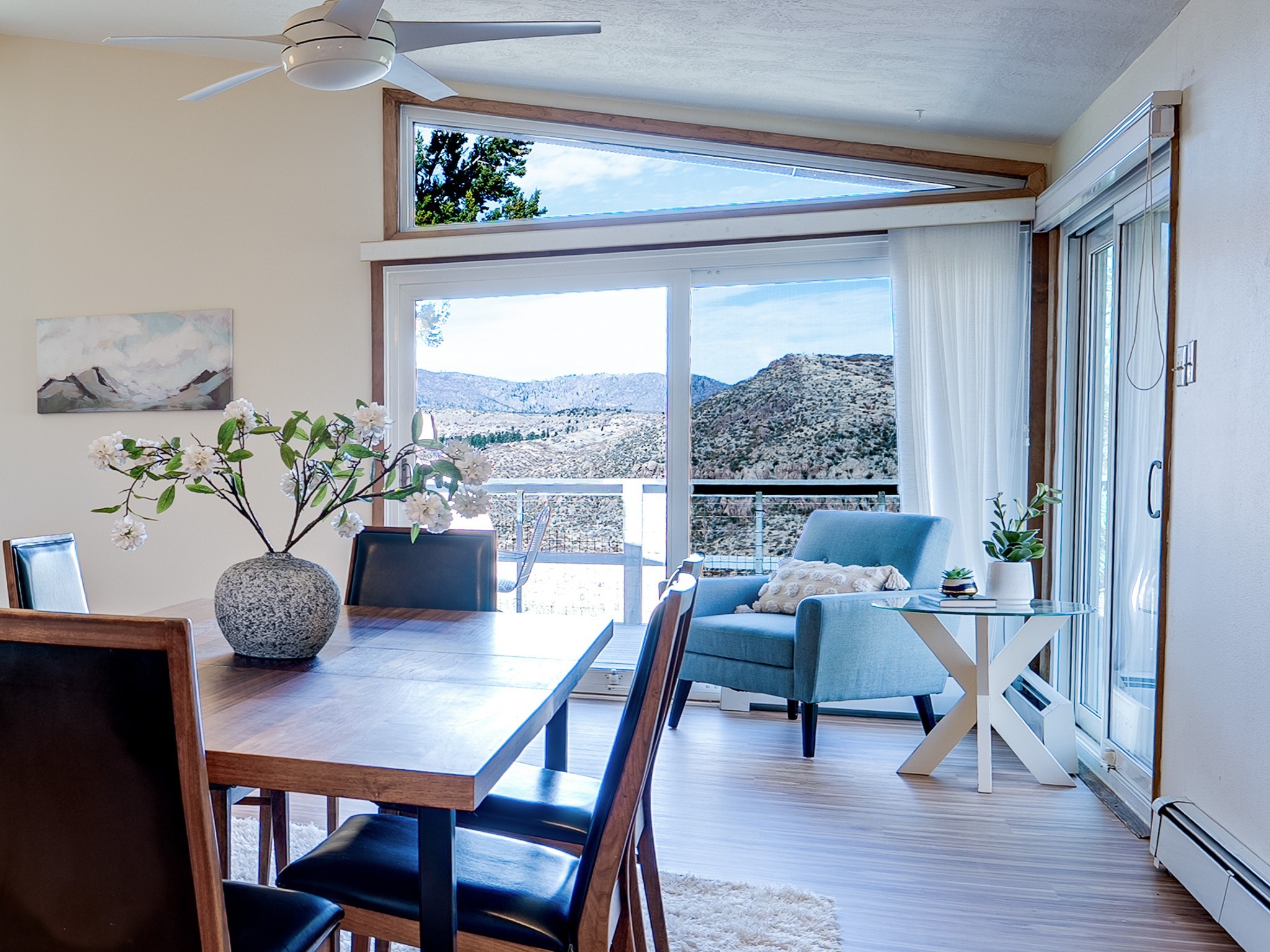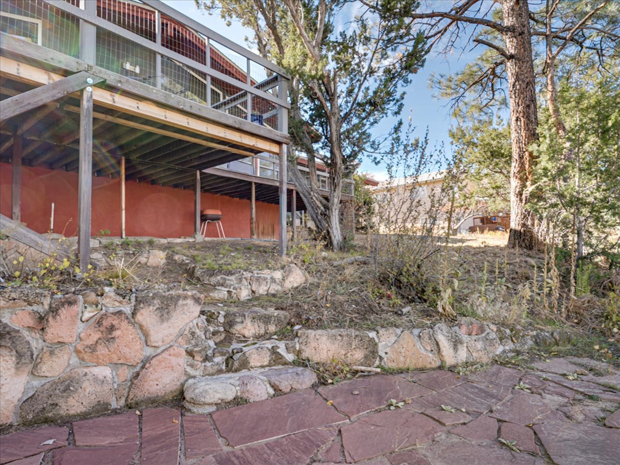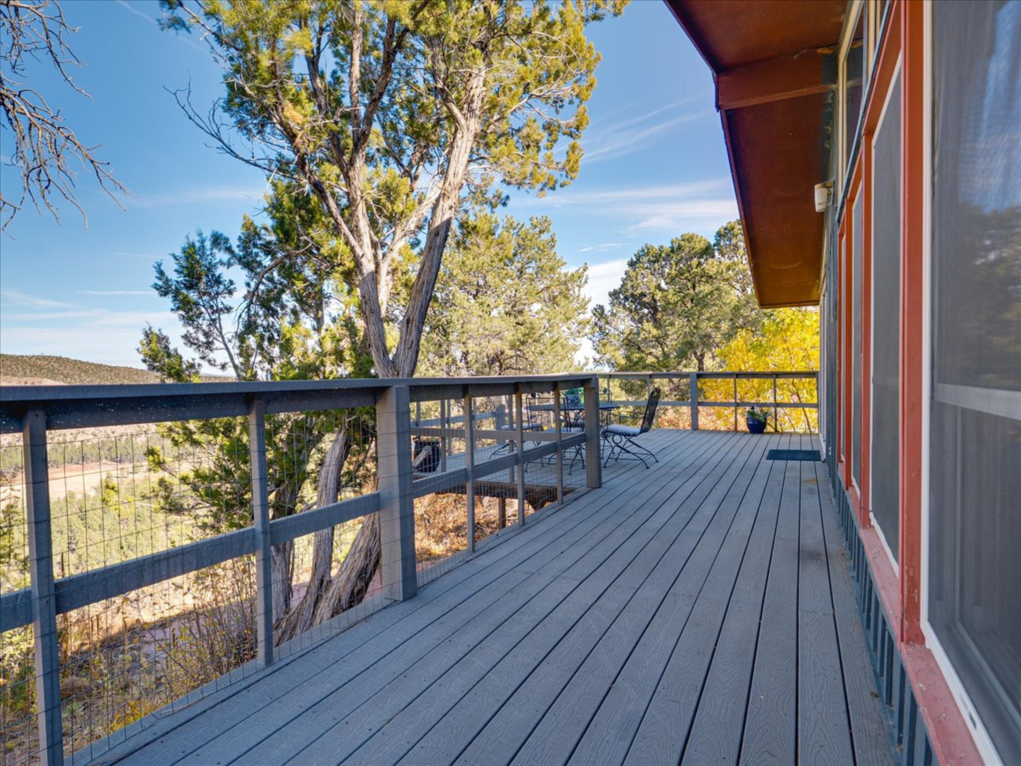 Stunning Barranca Mesa home overlooking Rendija Canyon. Perched on a generous 0.335-acre canyon lot, this property offers the best of both worlds - expansive outdoor space paired with sweeping canyon views. Mature pine trees provide natural beauty, shade, and privacy. Inside, a spacious living room features floor-to-ceiling picture windows and a striking raw-edge quartz fireplace with a wraparound mantle that flows into the dining room, which is large enough to serve as a second living area. The bright white kitchen offers ample room for an eat-in nook, pantry, and the adjacent laundry room provides direct garage access, functioning perfectly as a mudroom or drop zone. The primary suite includes a built-in vanity, a walk-in closet, and large windows facing the canyon. Three additional bedrooms and a guest bath complete the floor plan. From the dining room, step out onto a lovely balcony overlooking the canyon, ideal for morning coffee or evening sunsets. You'll also find a fenced dog run with low-maintenance artificial turf, perfect for pets. Recent updates include a new roof (2024), a new heating system (2025), new flooring (2025), a refrigerator (2025), interior paint (2025), new blinds in the living room, family room, kitchen, and a bedroom (2025), and newer double-pane windows (2005). This is a rare opportunity to own a beautiful home with unmatched canyon views on Barranca Mesa. This one is not to be missed! Schedule a private showing today. Disclosure: Owner Broker