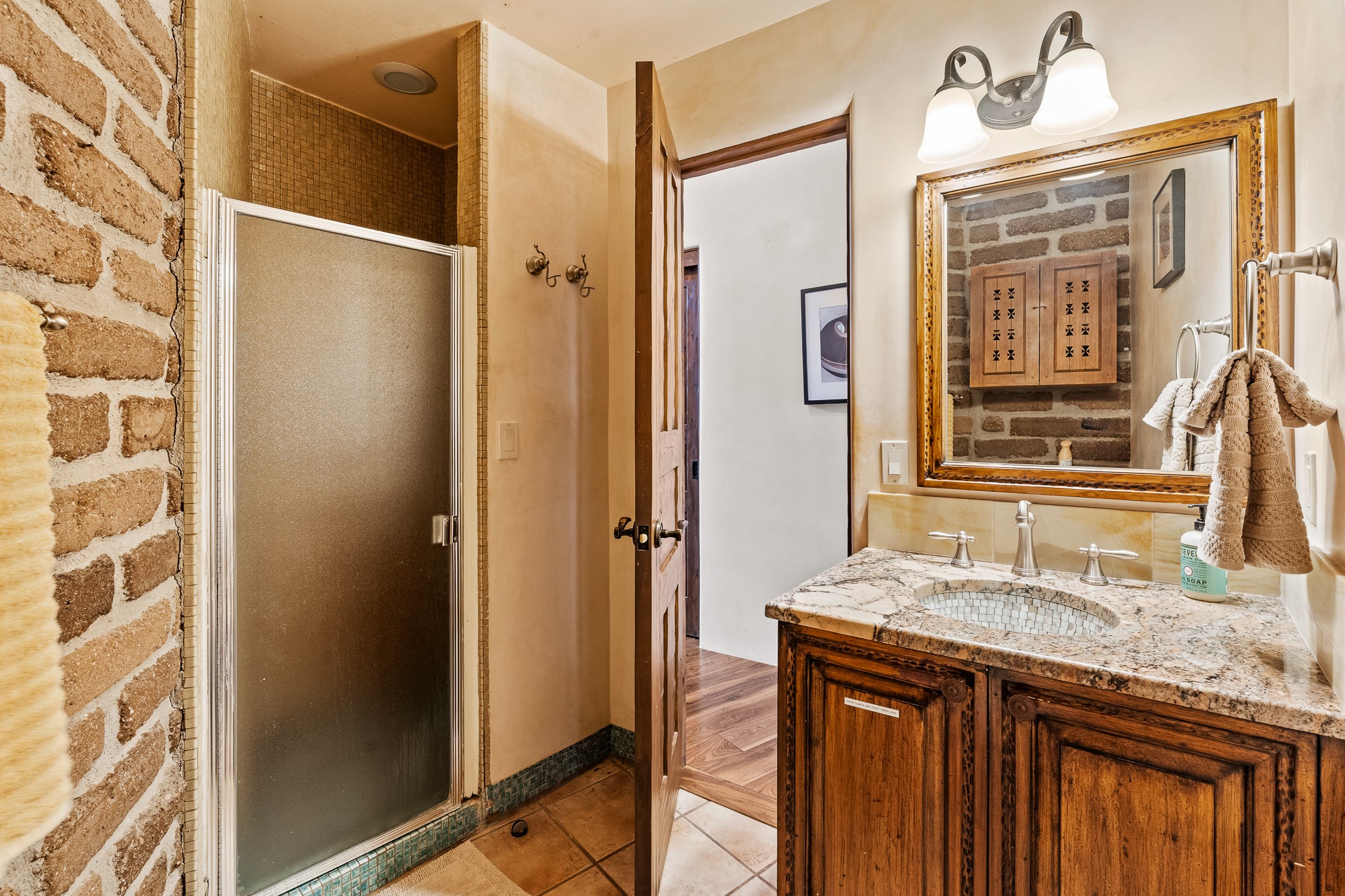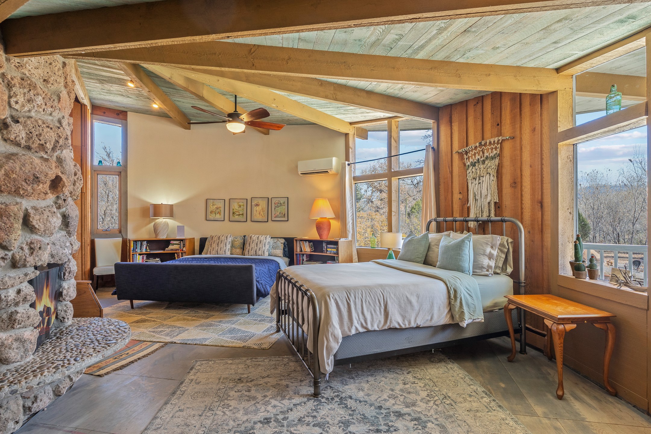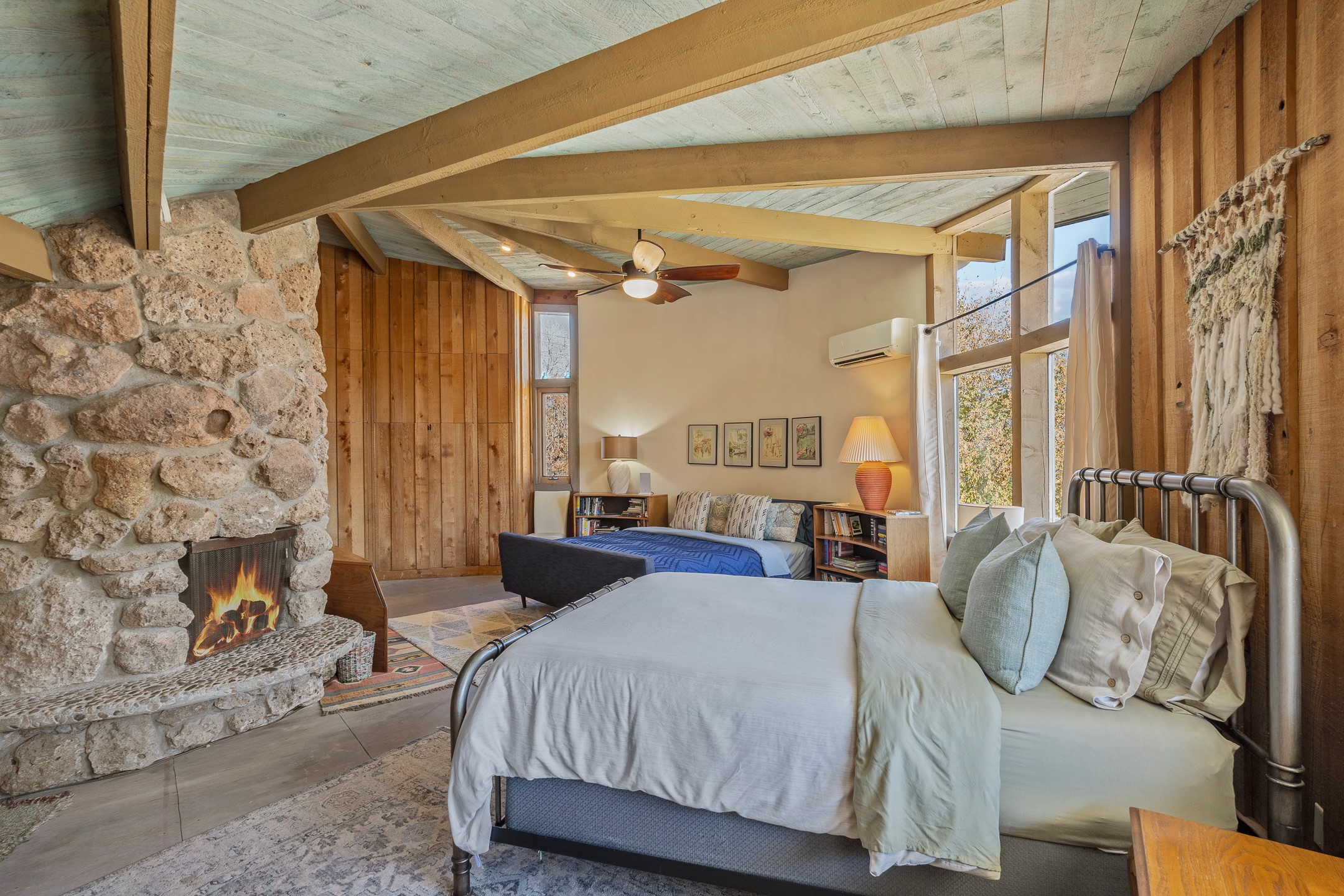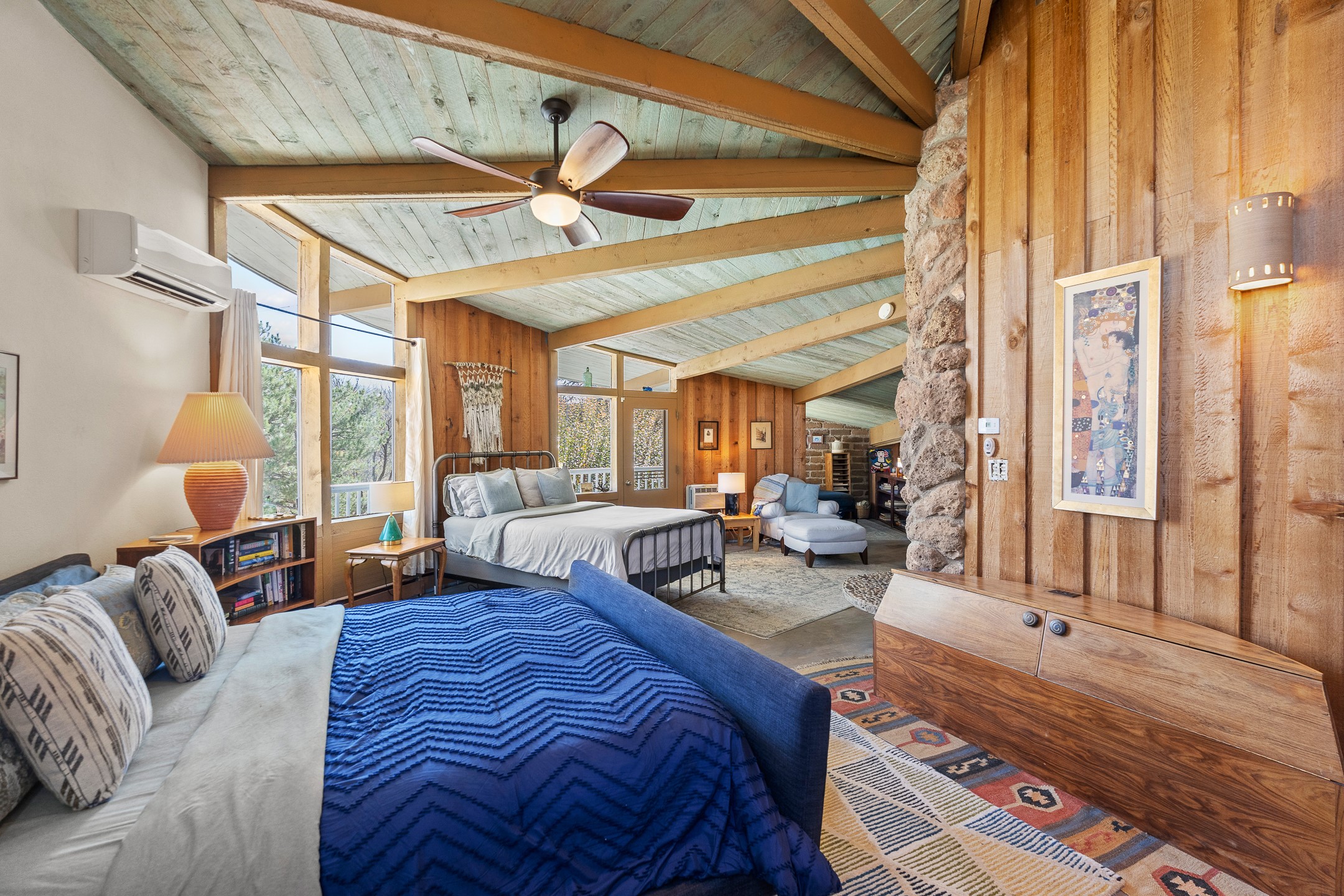 El Caracol Court | 34 State Road 503 is a truly distinctive riverfront property located along the Rio Nambe in the lush Nambe Valley. Designed by renowned local architect Allen L. McNown, a University of Oregon trained architect who settled in Pojoaque in the 1950s and became known for his contemporary adobe work with undulating forms and tinted-light interiors, including the modern church at Namb Pueblo. The home combines artistic design, functionality, and nature in an extraordinary way. Its form is inspired by the spiral geometry of a nautilus shell, a motif McNown used in other celebrated "snail" houses in the valley, and this architectural concept defines a flowing interior that celebrates light, water, and organic space. Set on approximately 2.10 acres, the property is fully fenced and offers both privacy and usability. It benefits from surface water rights off the Rio Nambe as well as a shared well, providing flexibility for landscaping and irrigation. The grounds include mature trees, gardens, a swimming pool, storage shed, and a separate workshop--a combination rarely found in this corridor.The residence itself measures roughly 4,000 square feet with three bedrooms and three bathrooms. Key design features include adobe and frame construction, dramatic curving walls, exposed wood beams, a lava-rock fireplace, and a sweeping staircase that centers the home's open plan. Additional amenities include: 40' Private swimming pool with adjacent lounge area, covered portal, sunroom with glass enclosure, solar improvements, mechanical system updates, maintained roof and gutters, radon mitigation system, updated appliances, and enhanced irrigation infrastructure. Exceptional maintenance and stewardship, upgrades over recent years that have modernized systems while preserving the artistic integrity of the home. The property has also been operated as a short-term rental, generating consistent income and showing strong demand as a retreat or vacation destination.